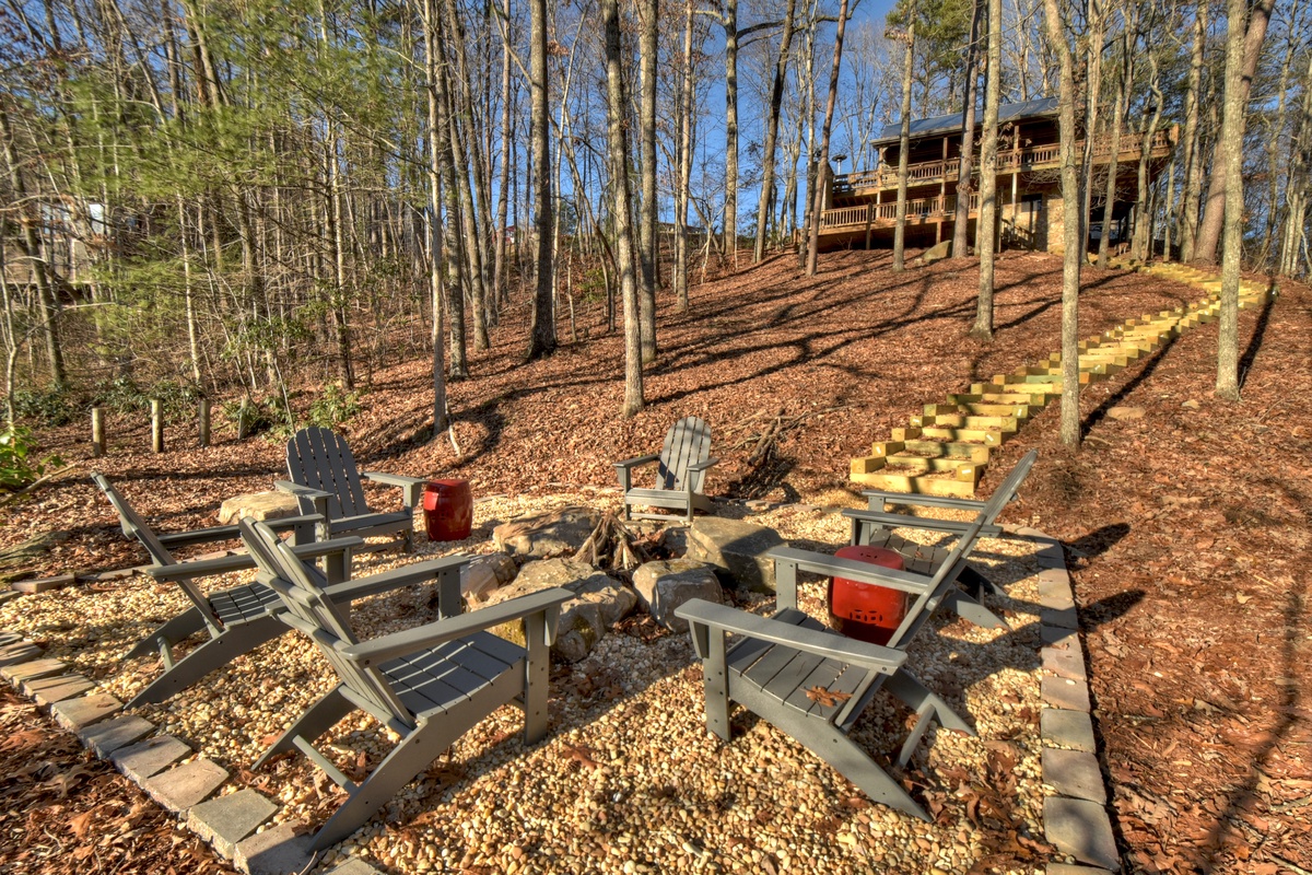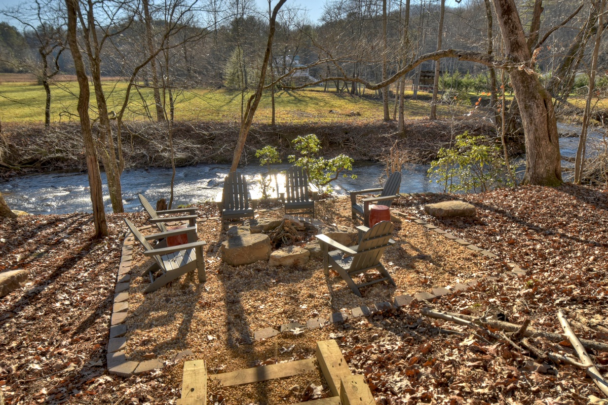 - Creekside firepit with 6 Adirondack chairs