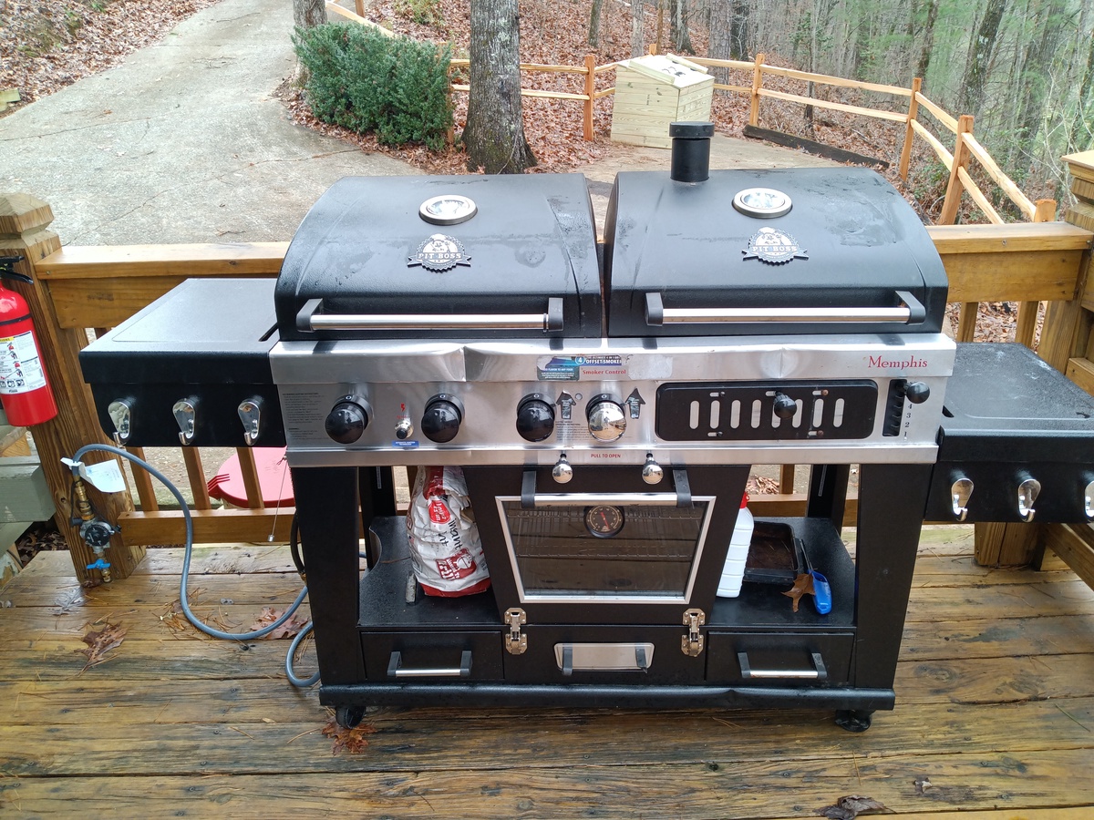 - Memphis Pit Boss multi-functional gas grill with smoker and char-broil capabilities. Traditional gas grill.
