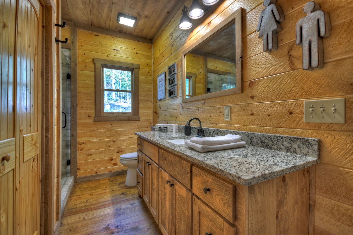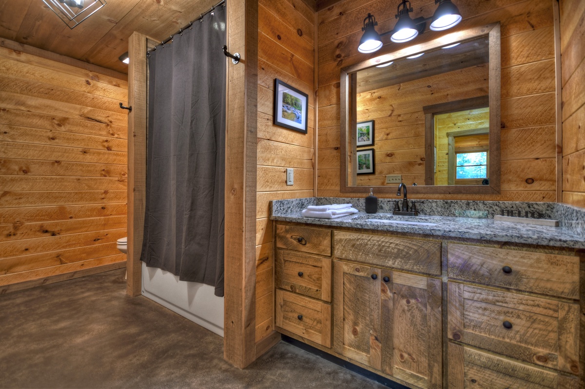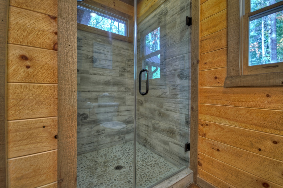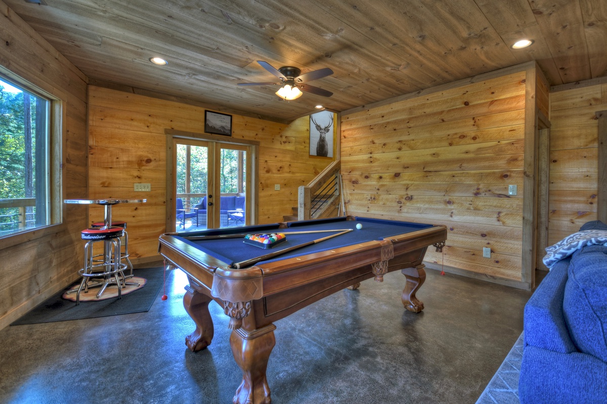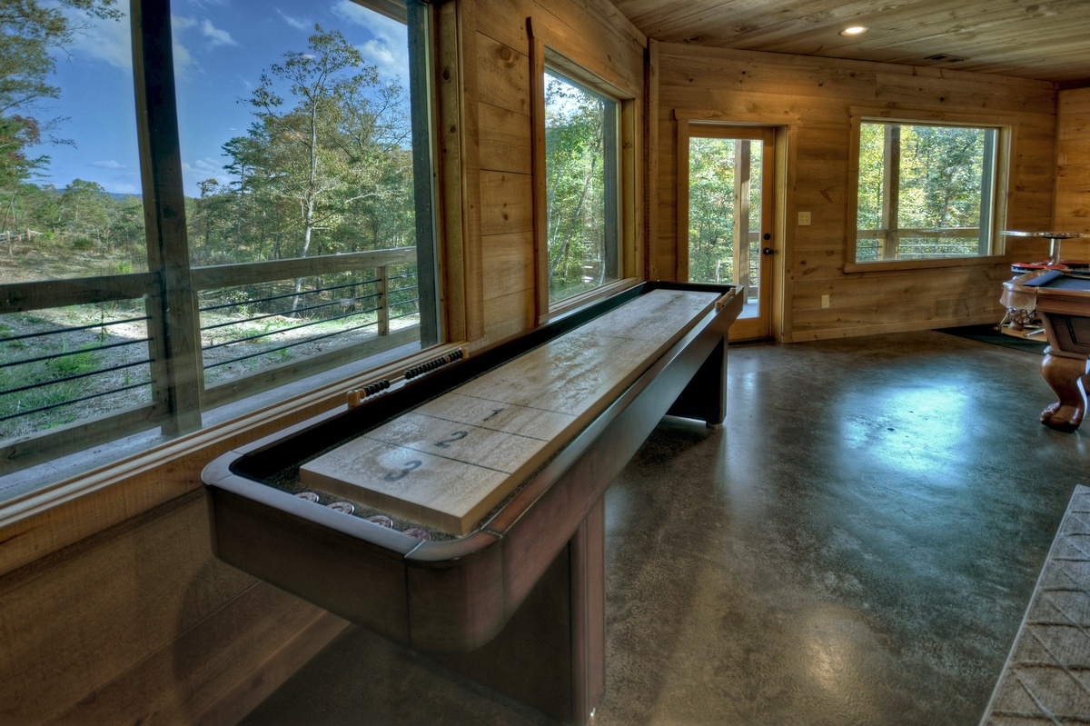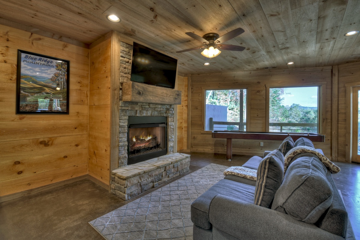 As you walk into this cabin, you will be greeted by soaring vaulted ceilings and windows for days! Take it all in and kick your shoes off on the attached outdoor patio with TV and fireplace. Familiarize yourself with the fully equipped kitchen and impress your friends and family with your family recipes! You will find a master suite on the upper level, king bedroom on the entry level, and a king bedroom in the lower level. The lower level den area has a pool table, shuffleboard table, gas log fireplace, and a wet bar for your entertainment. No expense was sparred in ensuring your stay is nothing short of wonderful!