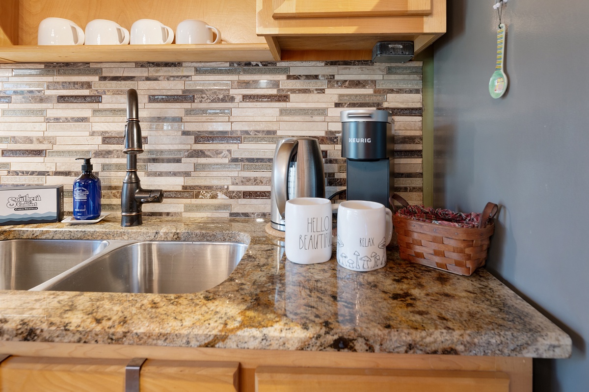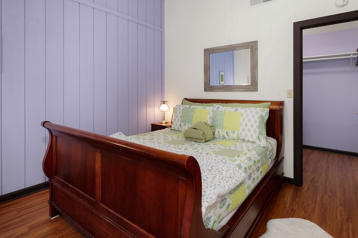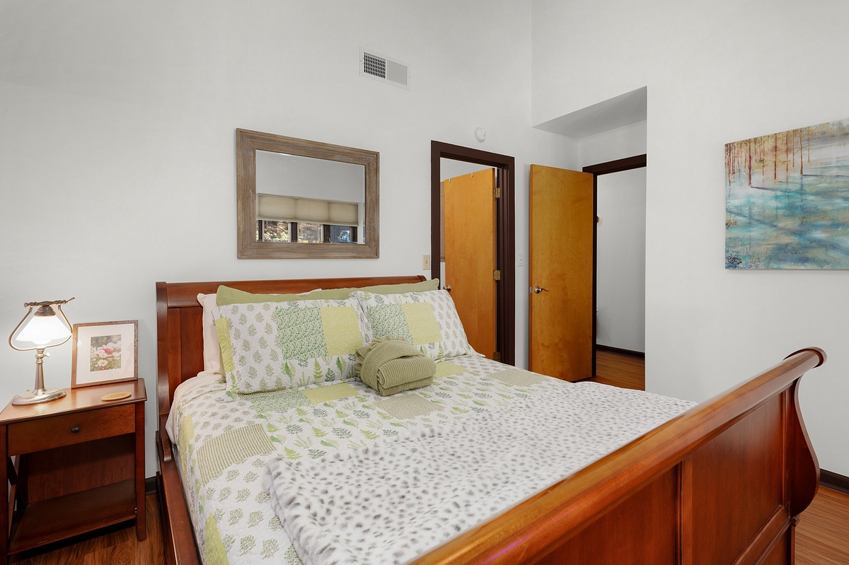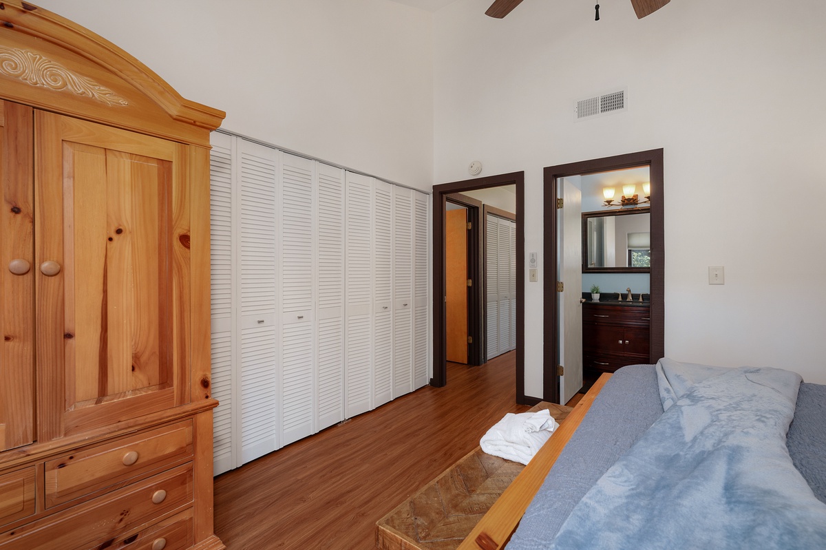 The primary king bedroom offers a peaceful escape with ample storage and a private en-suite bathroom, while the queen bedroom includes a walk-in closet, desk, and charming décor for a tranquil stay. With an additional shared full bathroom and convenient laundry room, this condo ensures comfort and ease for your getaway.