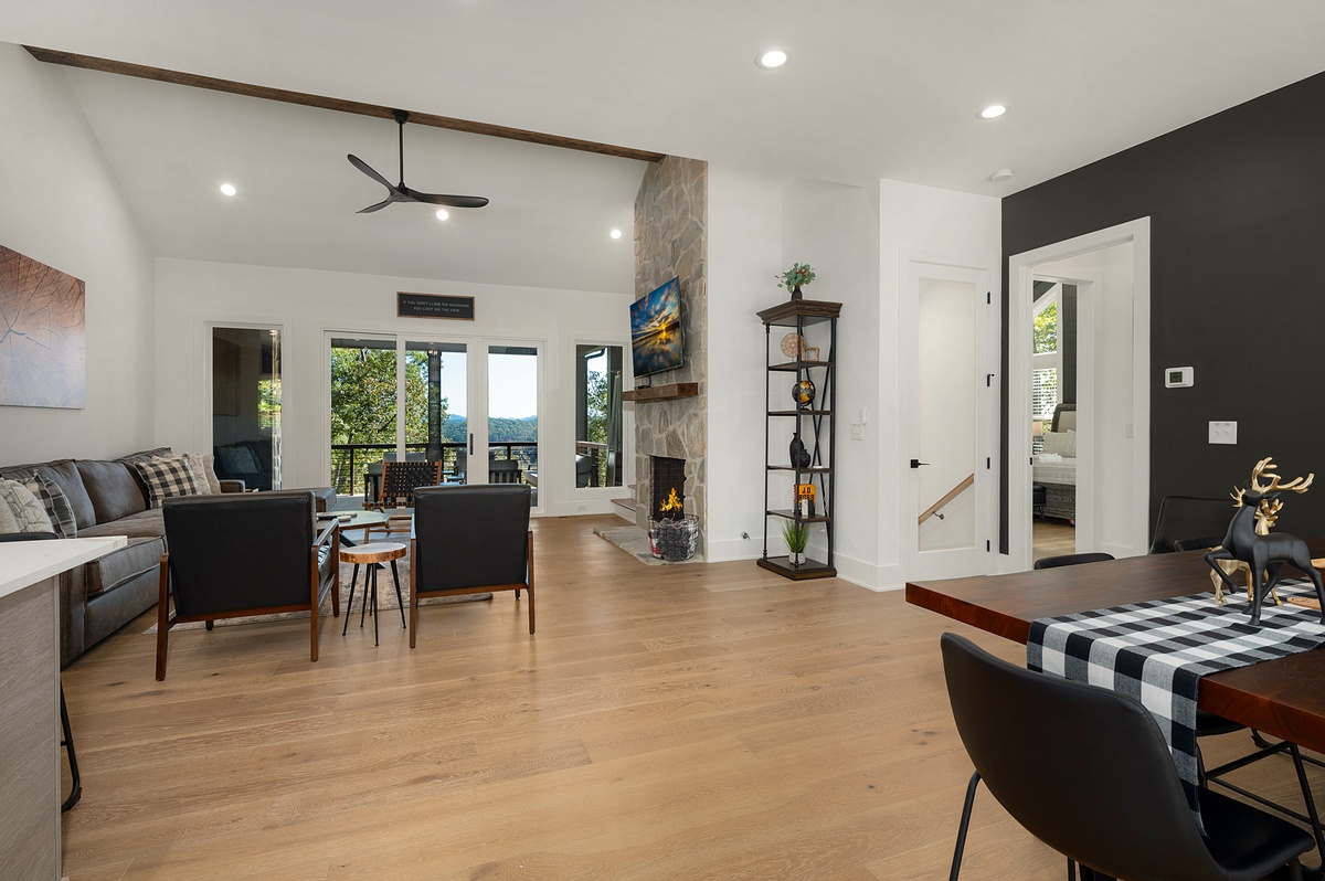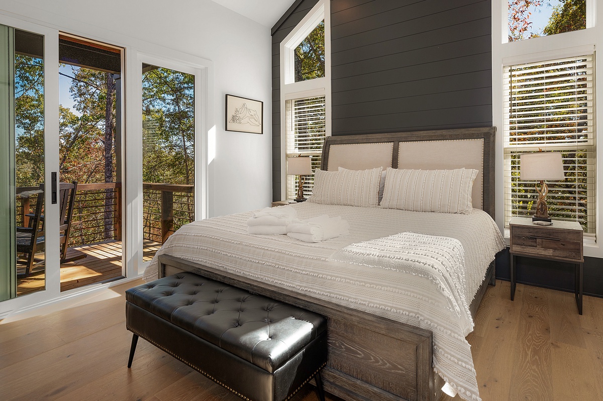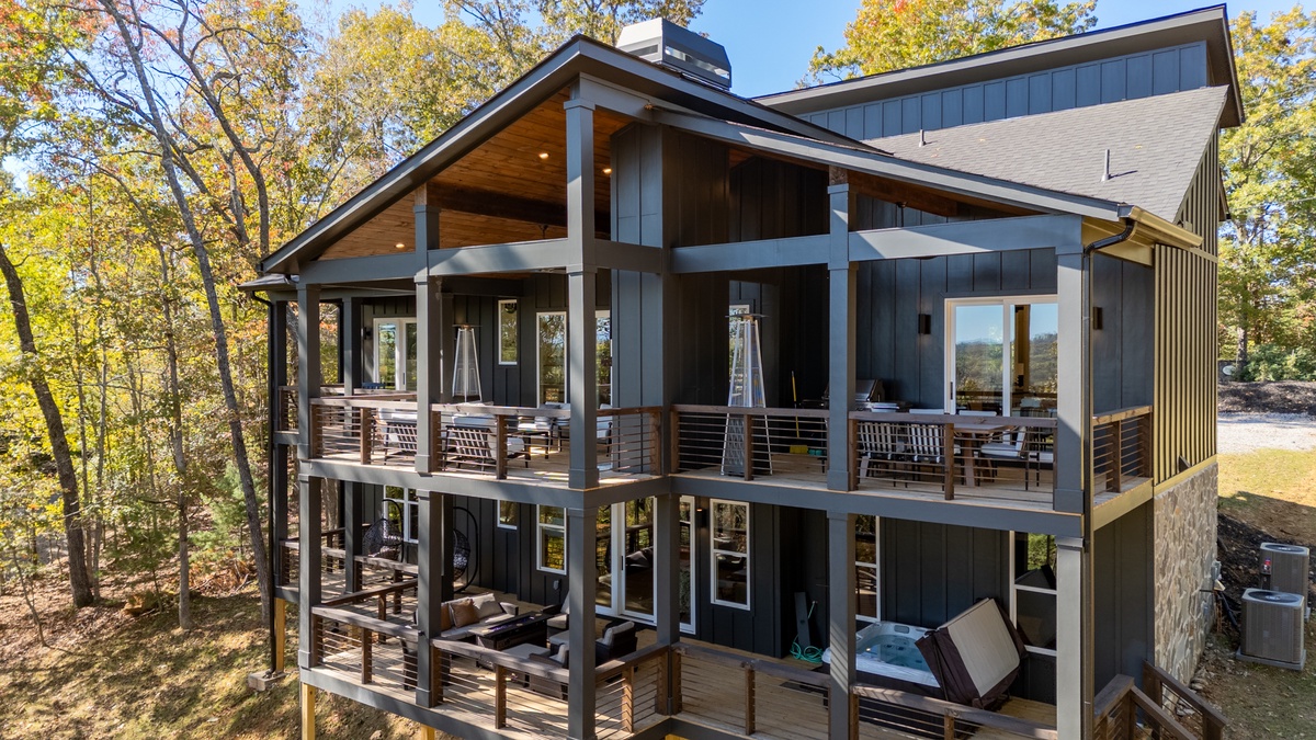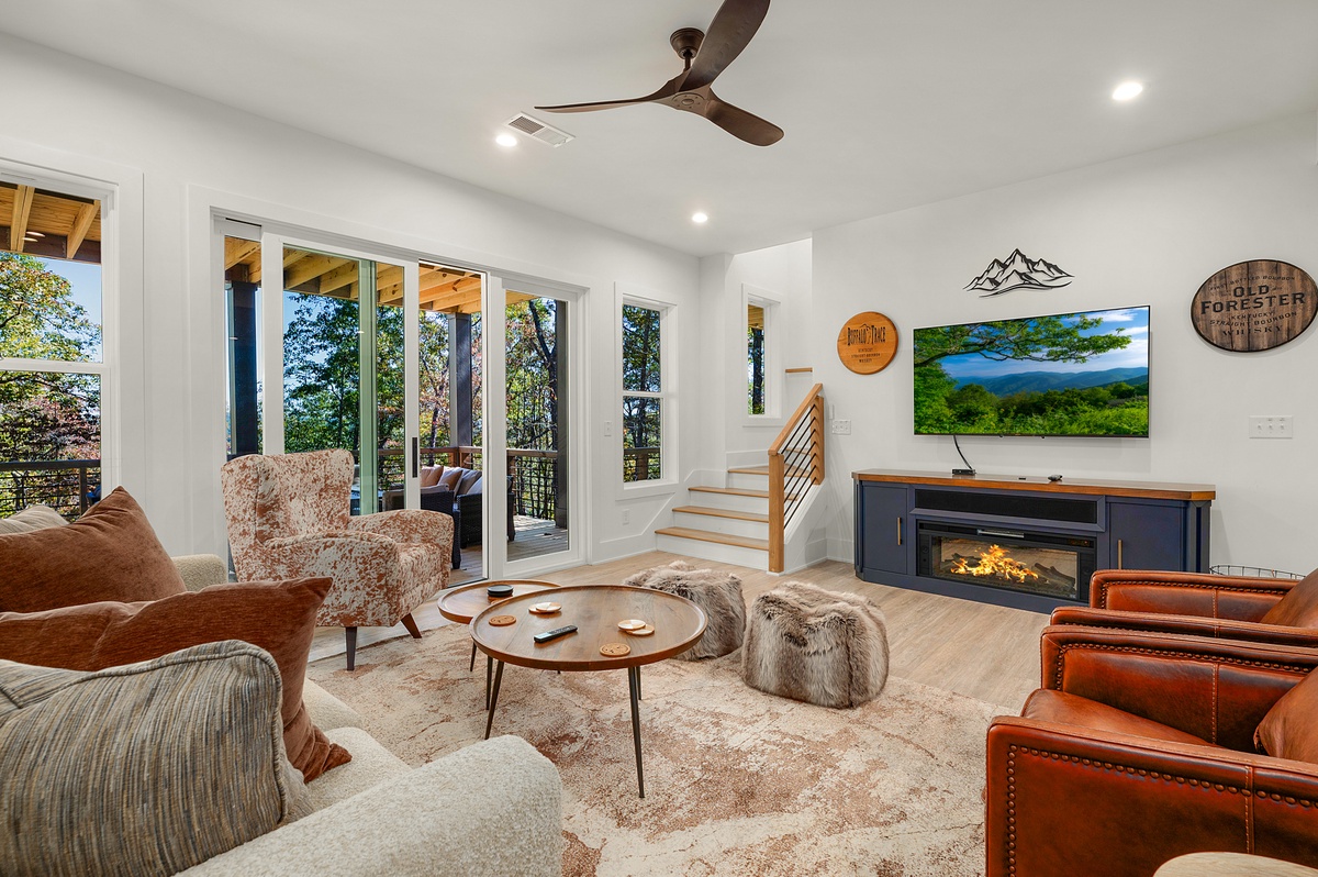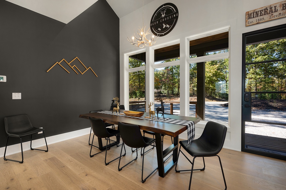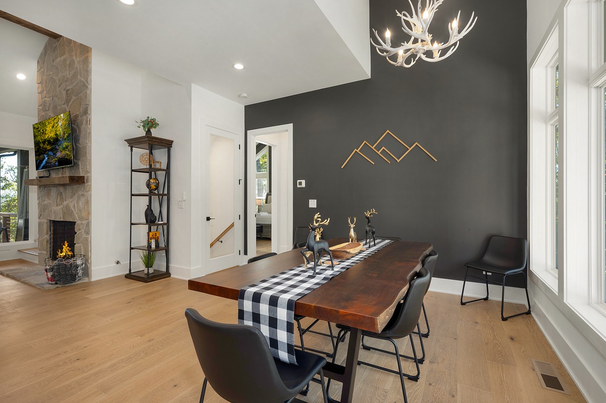 Escape to this luxurious 4-bedroom, 4-bathroom mountain retreat,called Deer Crossing. Just 7 minutes from downtown, where modern amenities meet rustic charm. Spanning three levels, this spacious cabin comfortably sleeps 10 guests, making it the perfect getaway for families or groups of friends. As you arrive, you'll appreciate the convenience of the paved road leading to the gravel driveway, ensuring easy access to the home.
