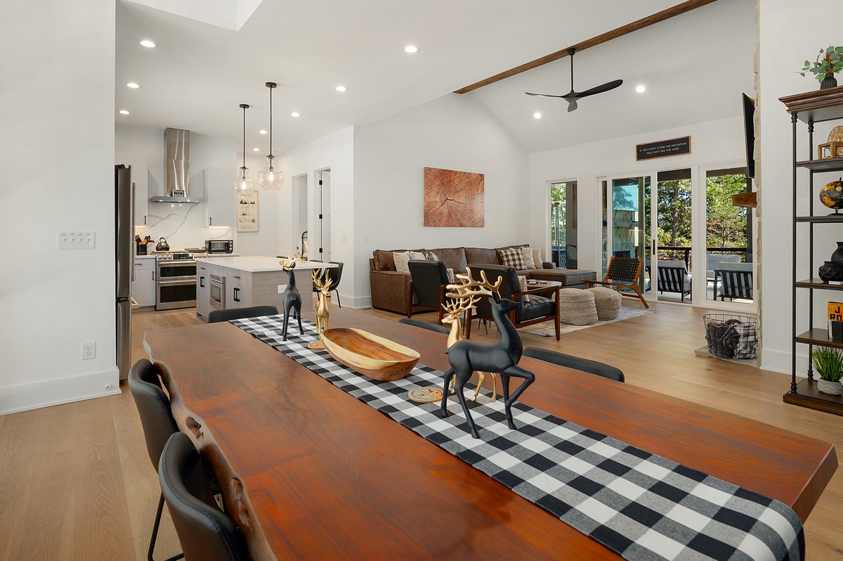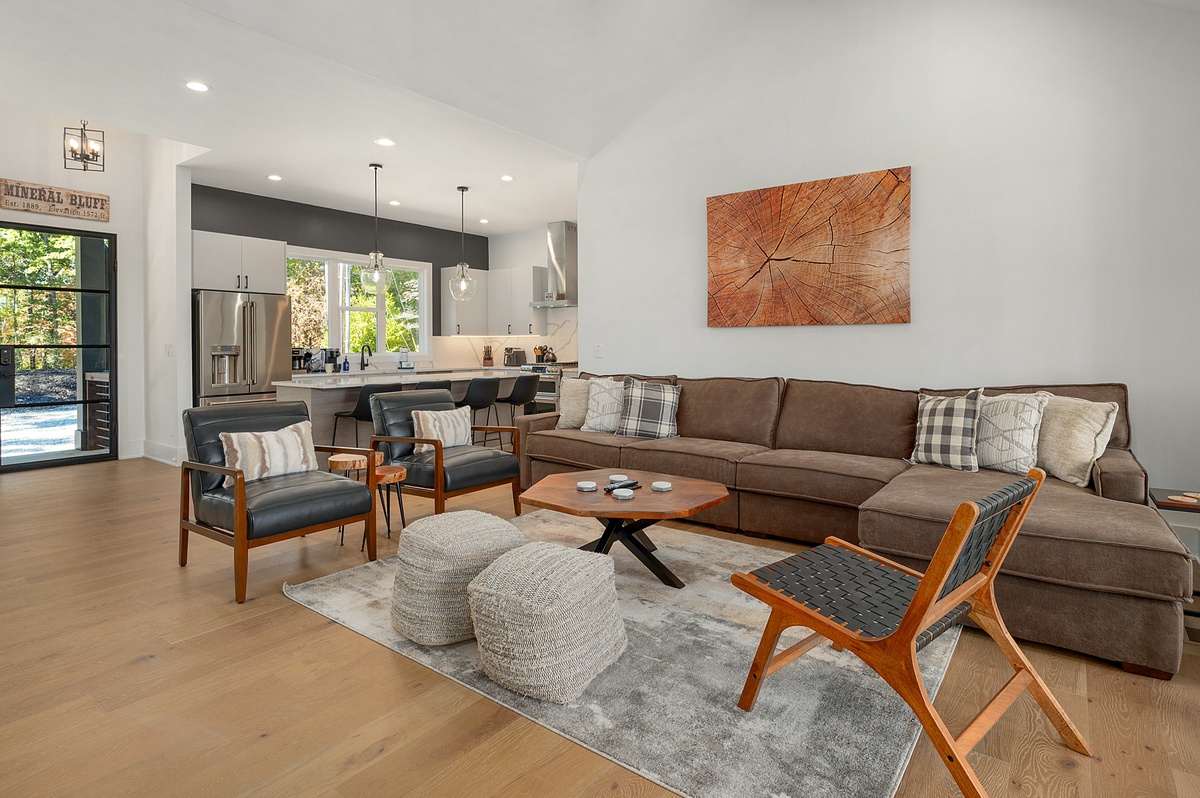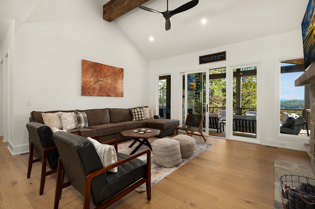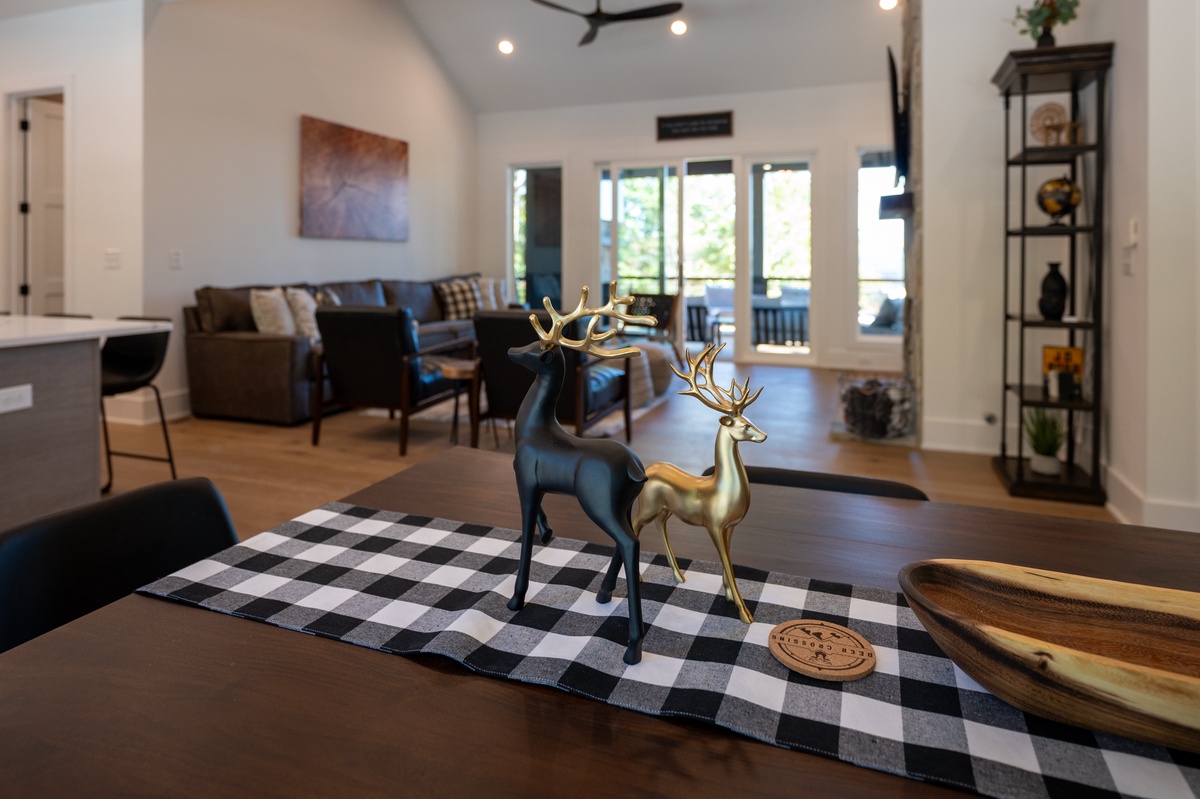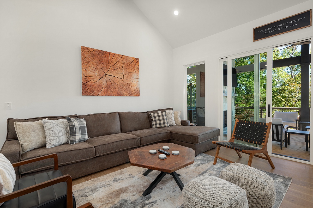 Escape to this luxurious 4-bedroom, 4-bathroom mountain retreat,called Deer Crossing. Just 7 minutes from downtown, where modern amenities meet rustic charm. Spanning three levels, this spacious cabin comfortably sleeps 10 guests, making it the perfect getaway for families or groups of friends. As you arrive, you'll appreciate the convenience of the paved road leading to the gravel driveway, ensuring easy access to the home.
