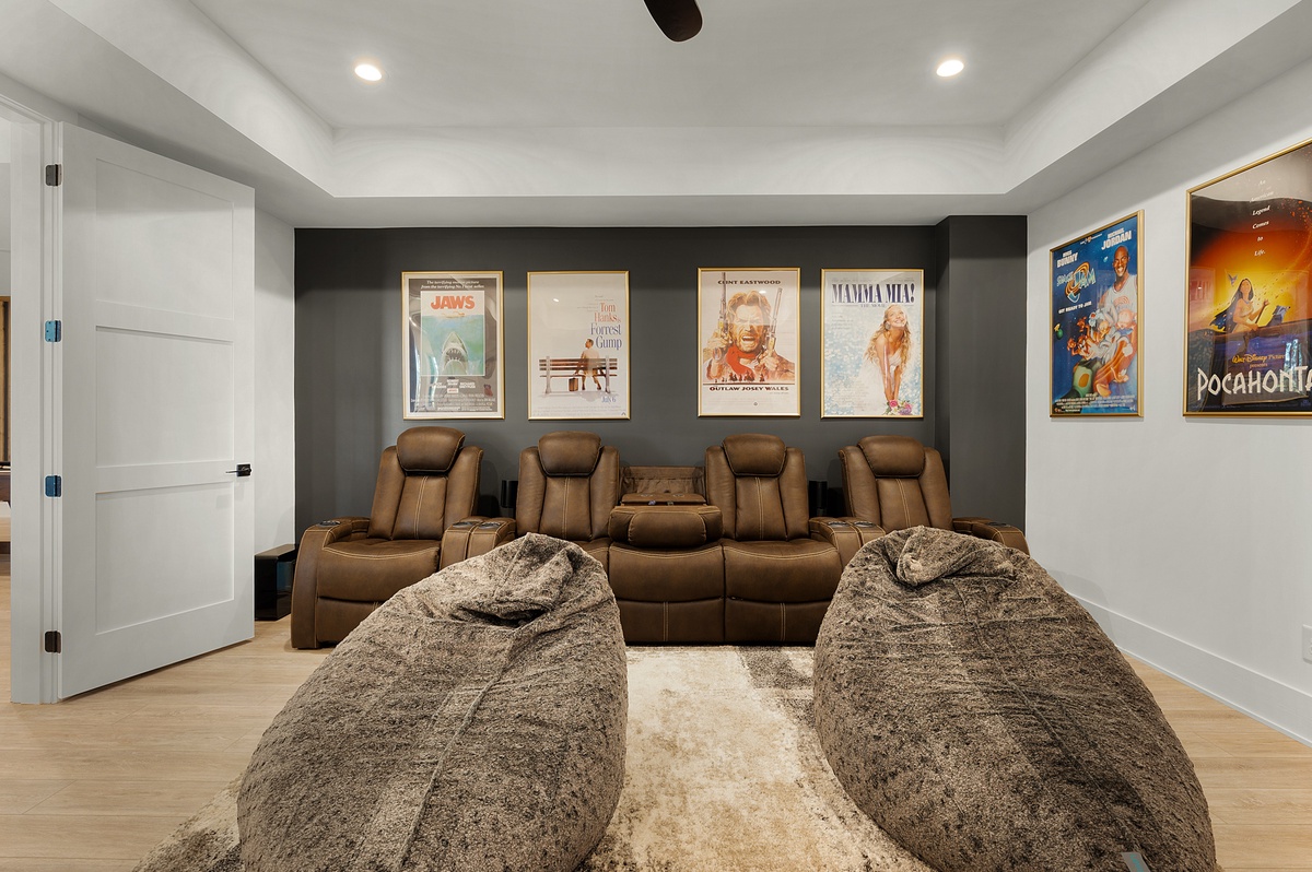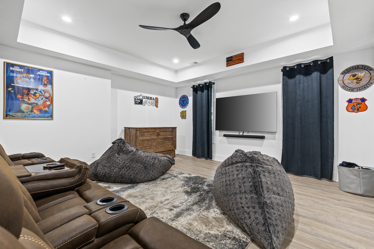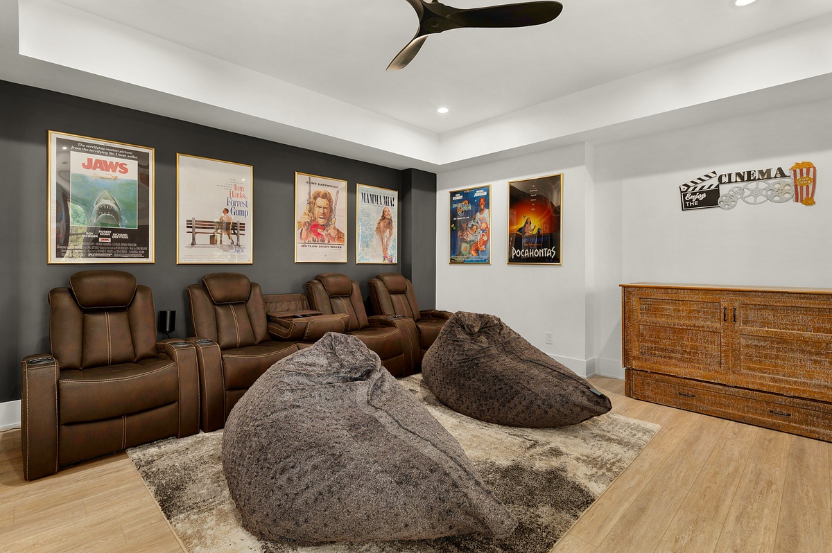 - Movie Room with Reclining Leather Seating & 2 Big Bean Bag Chairs