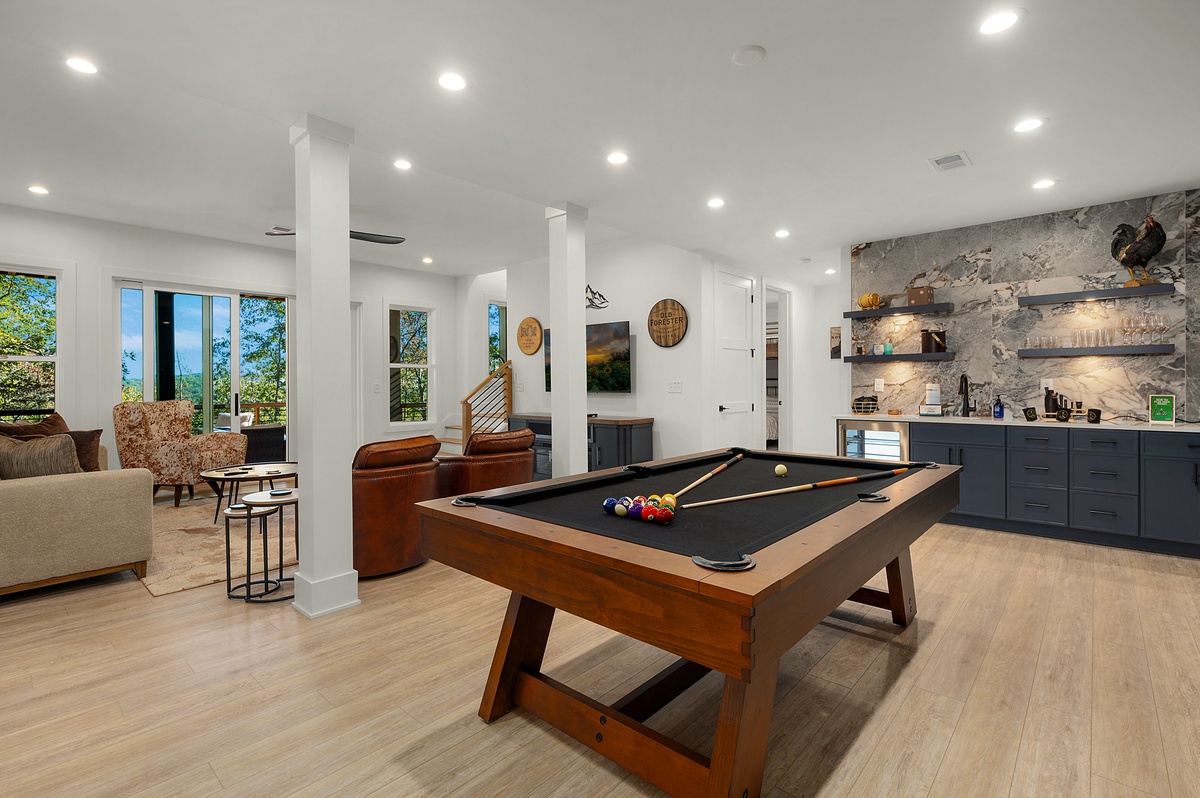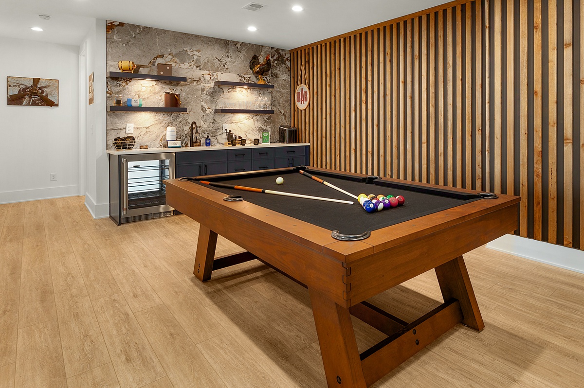- Game Room with Pool Table, Wet Bar & Wine Cooler