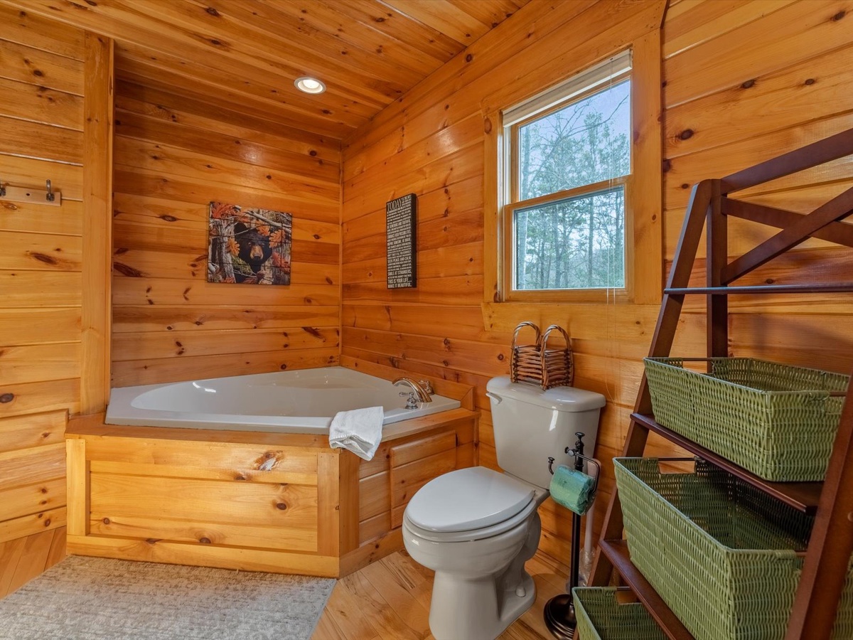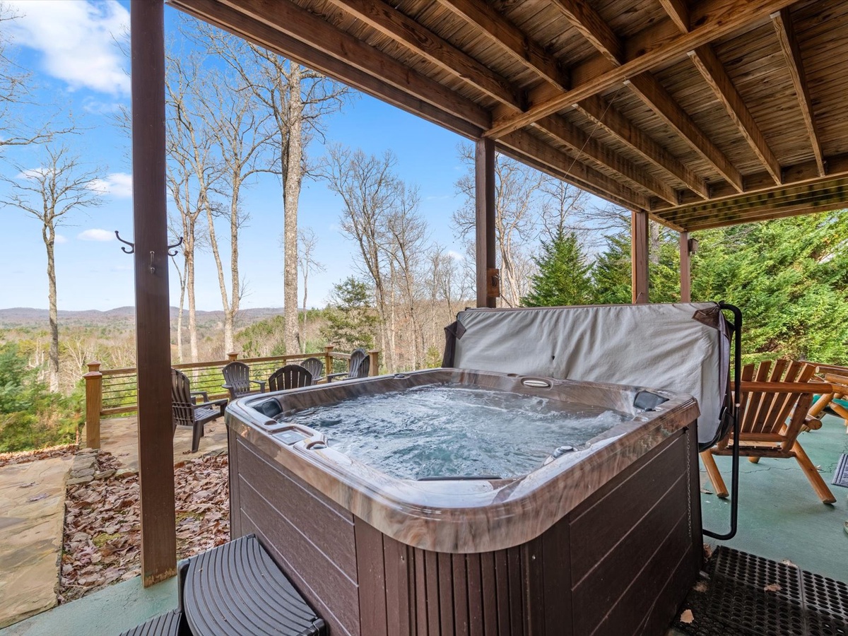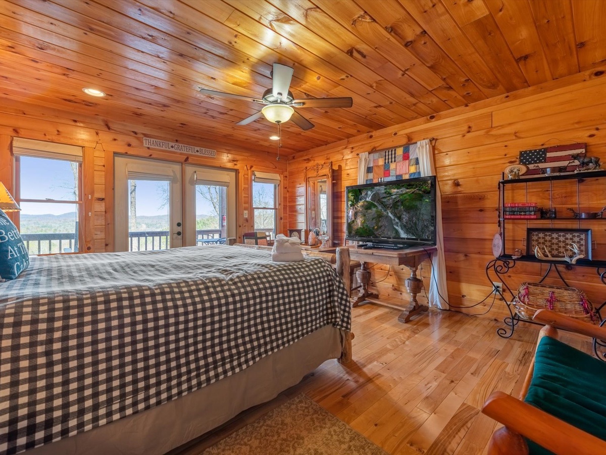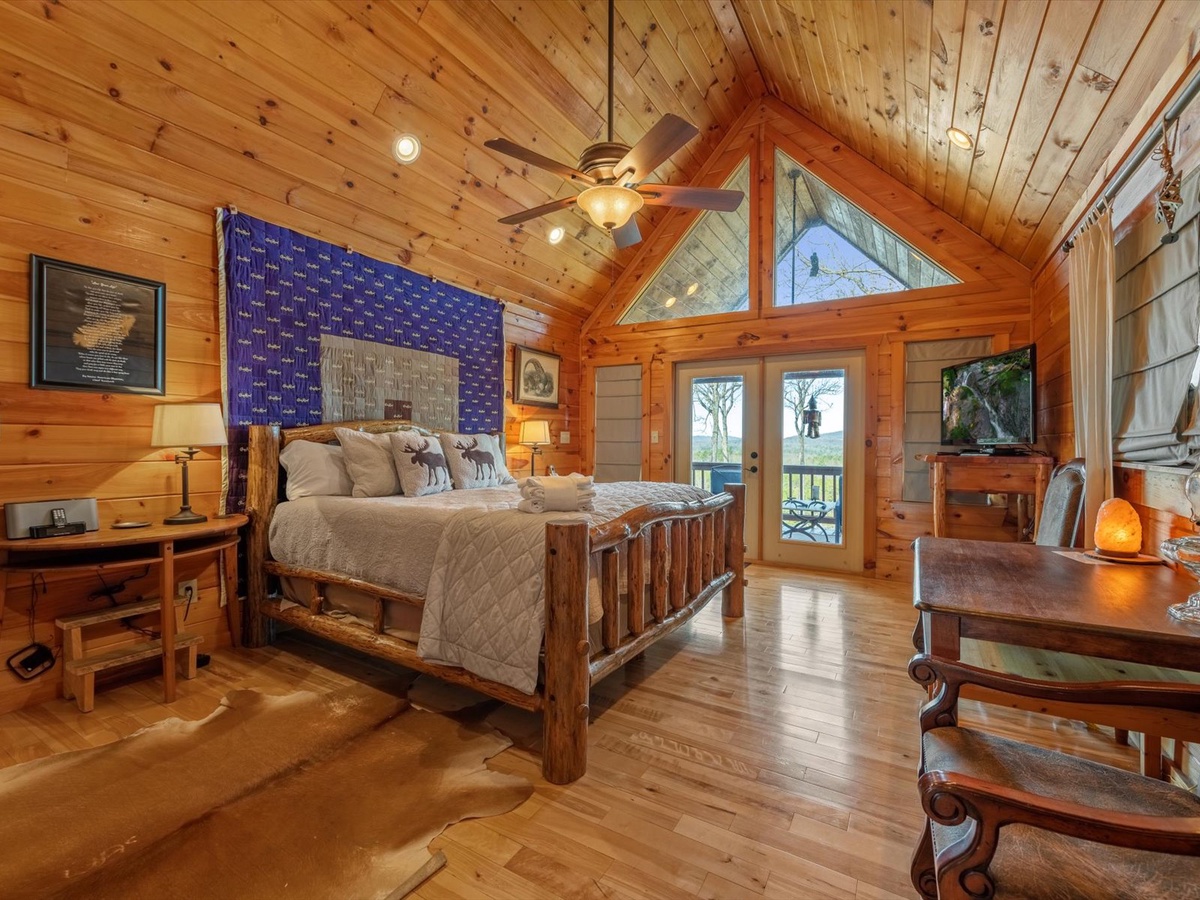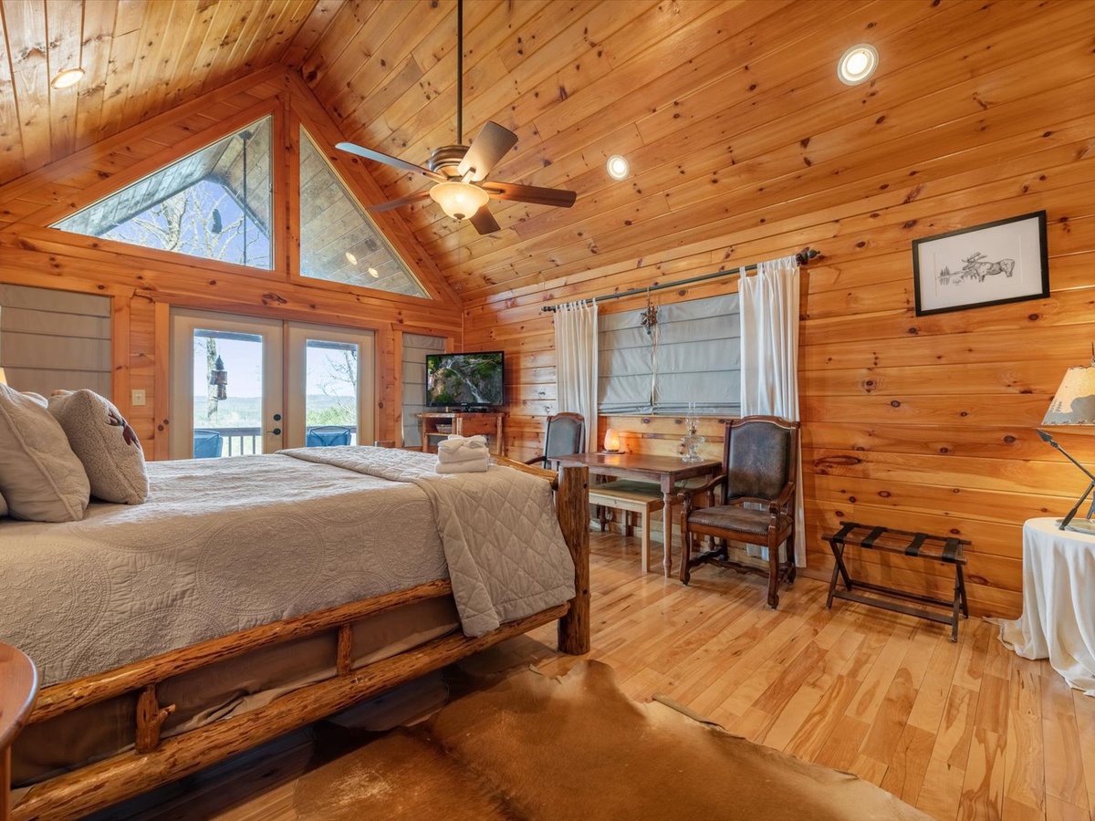 Head upstairs to the king master suite with an attached bathroom boasting a large jetted tub and a stand-up tile shower. This wonderfully appointed king suite also has its very own private balcony/deck along with rocking chairs. Wind down before bed watching your favorite shows on the 42" TV while laying down on the comfy king size mattress soaking in the views from your room. There is also a queen bed in the open loft area for even more sleep accommodations.
