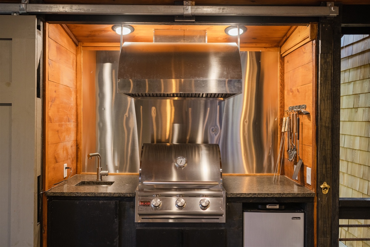 - Large gas grill with sink, mini-refrigerator/freezer