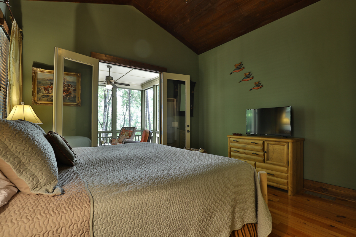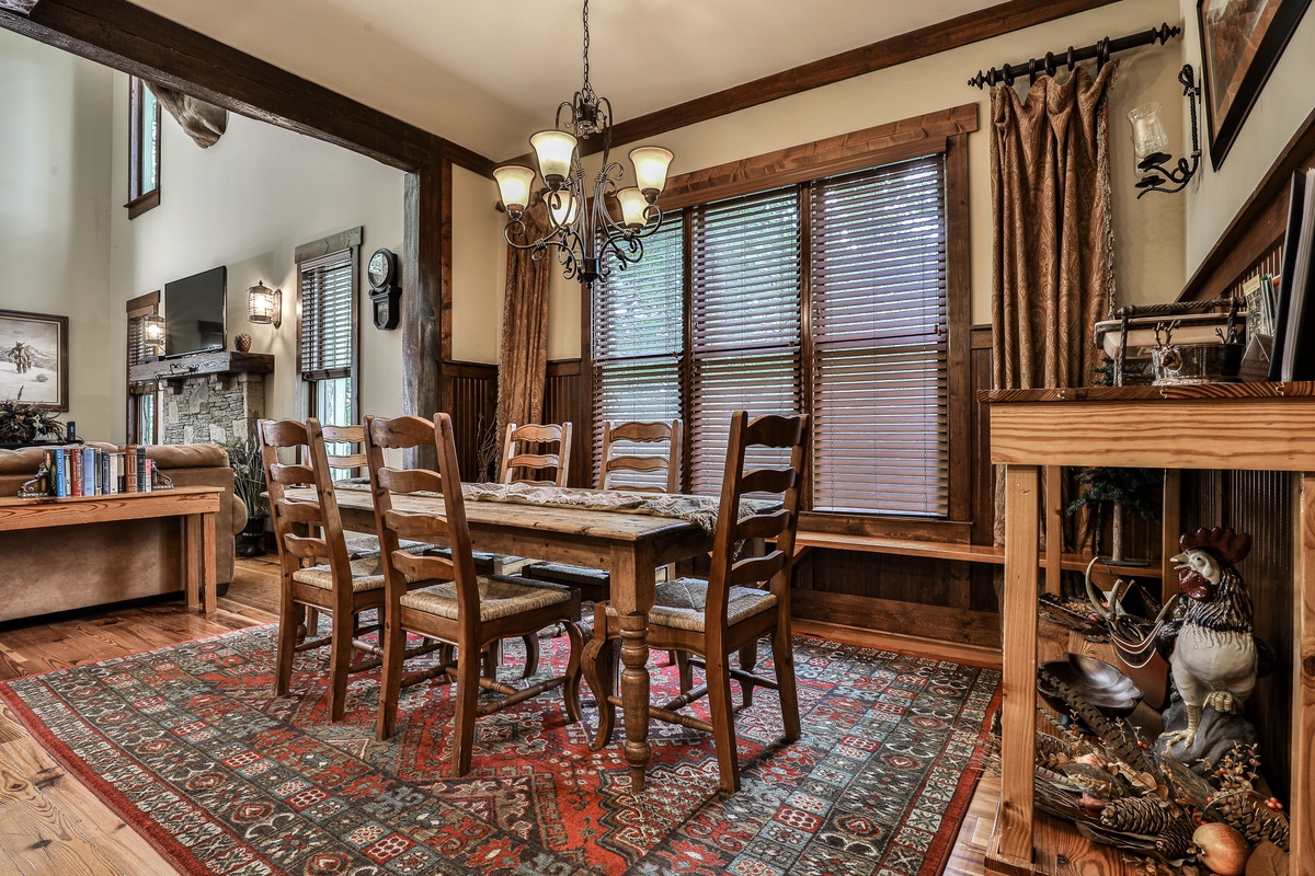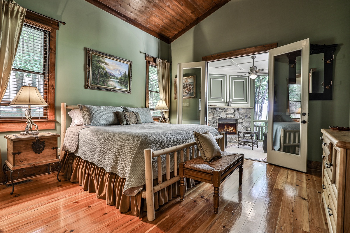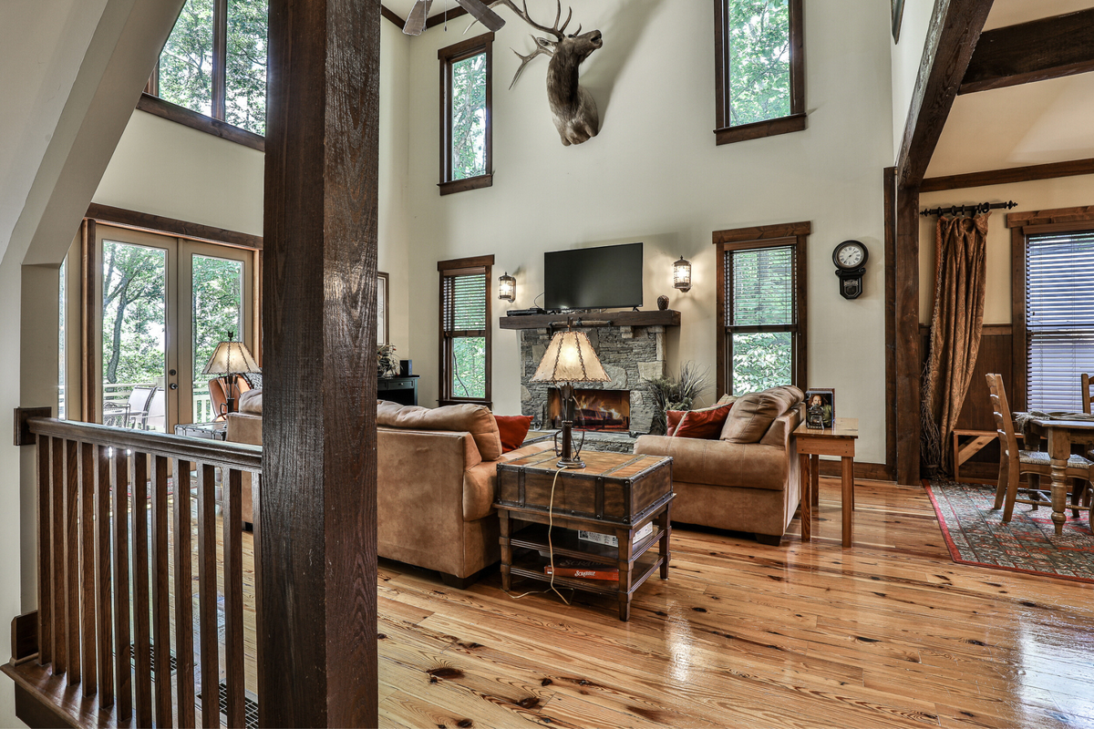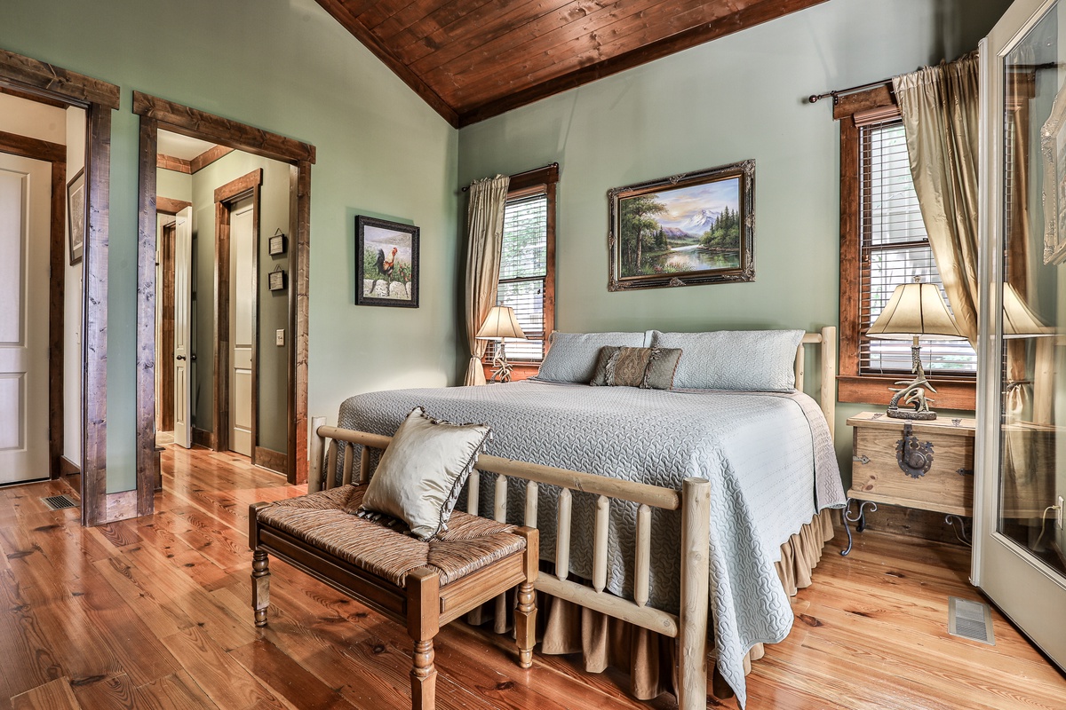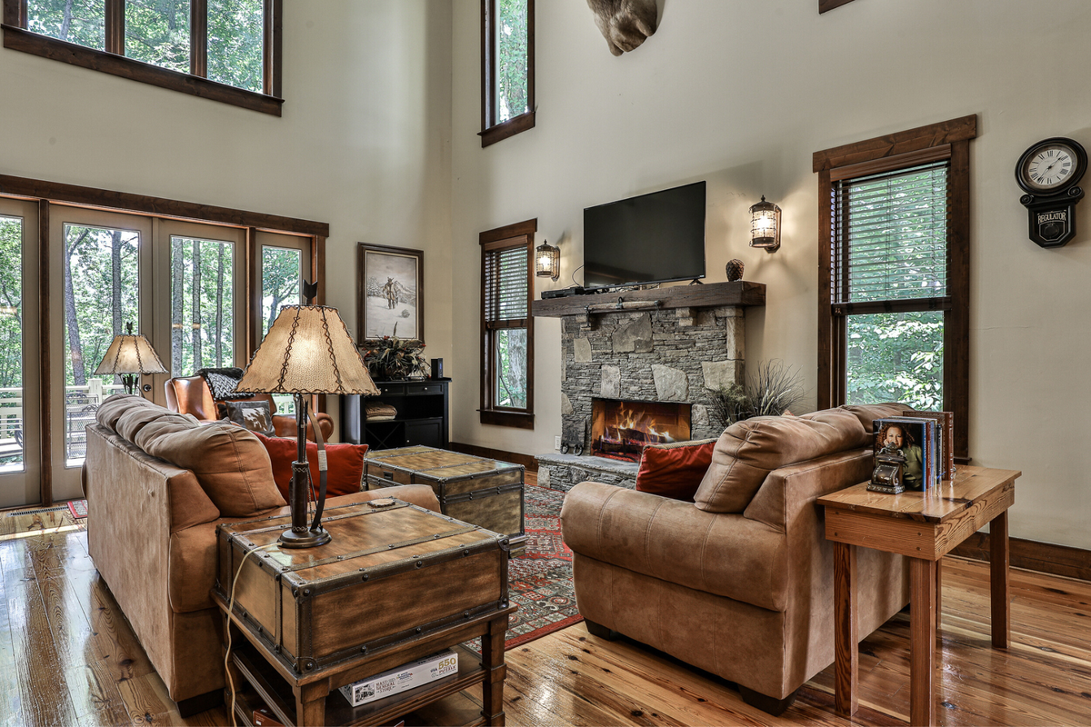 Elk Horn is a rustic and cozy four-bedroom cottage located in the new Choctaw Village area near the Club House, with accessible walking trails managed by Mountain Home Rentals of Georgia. Every detail has been meticulously crafted, from the 200-year-old heart of pine floors to quality furnishings.