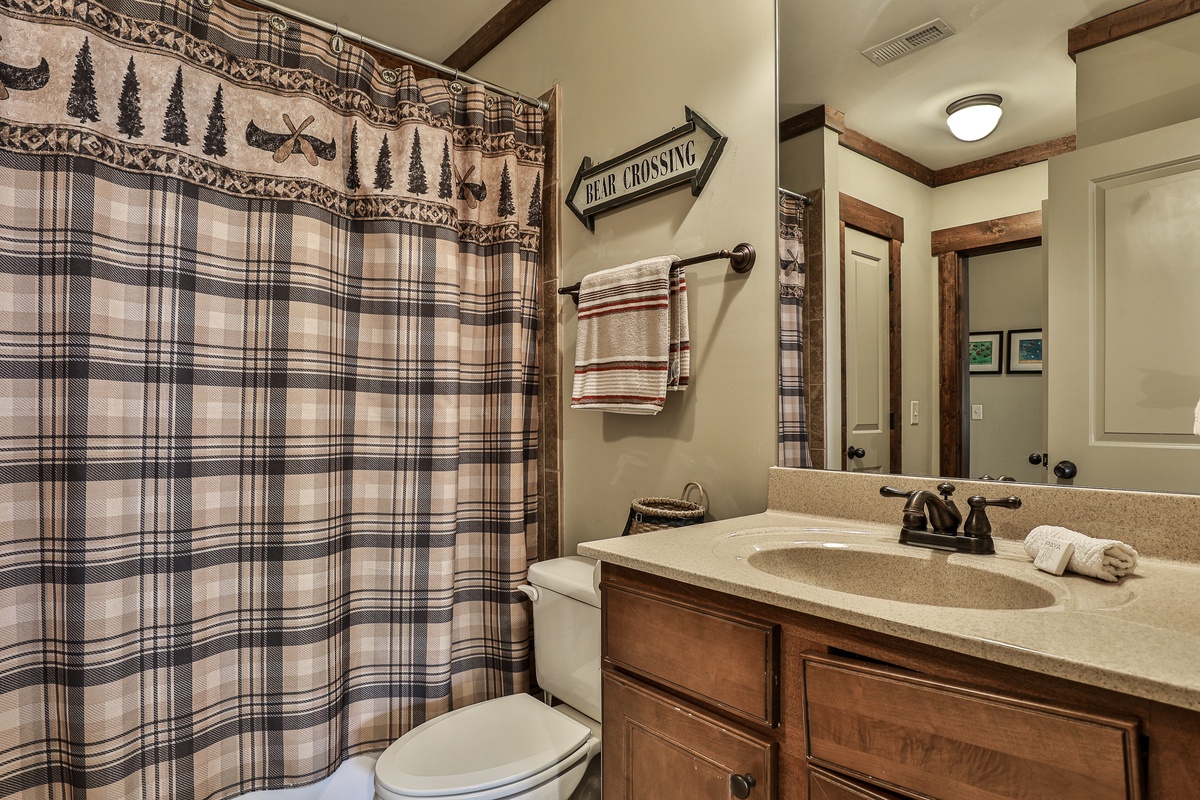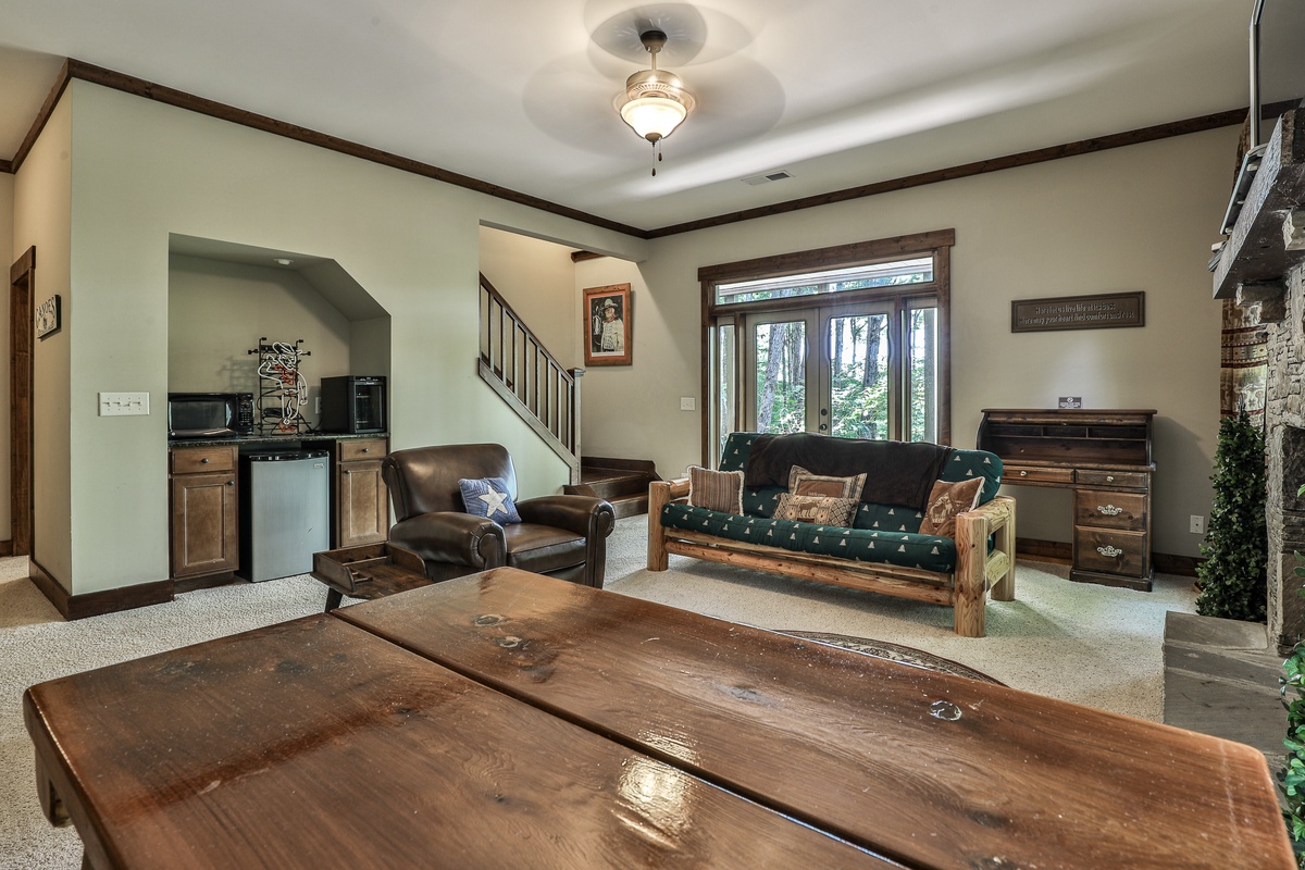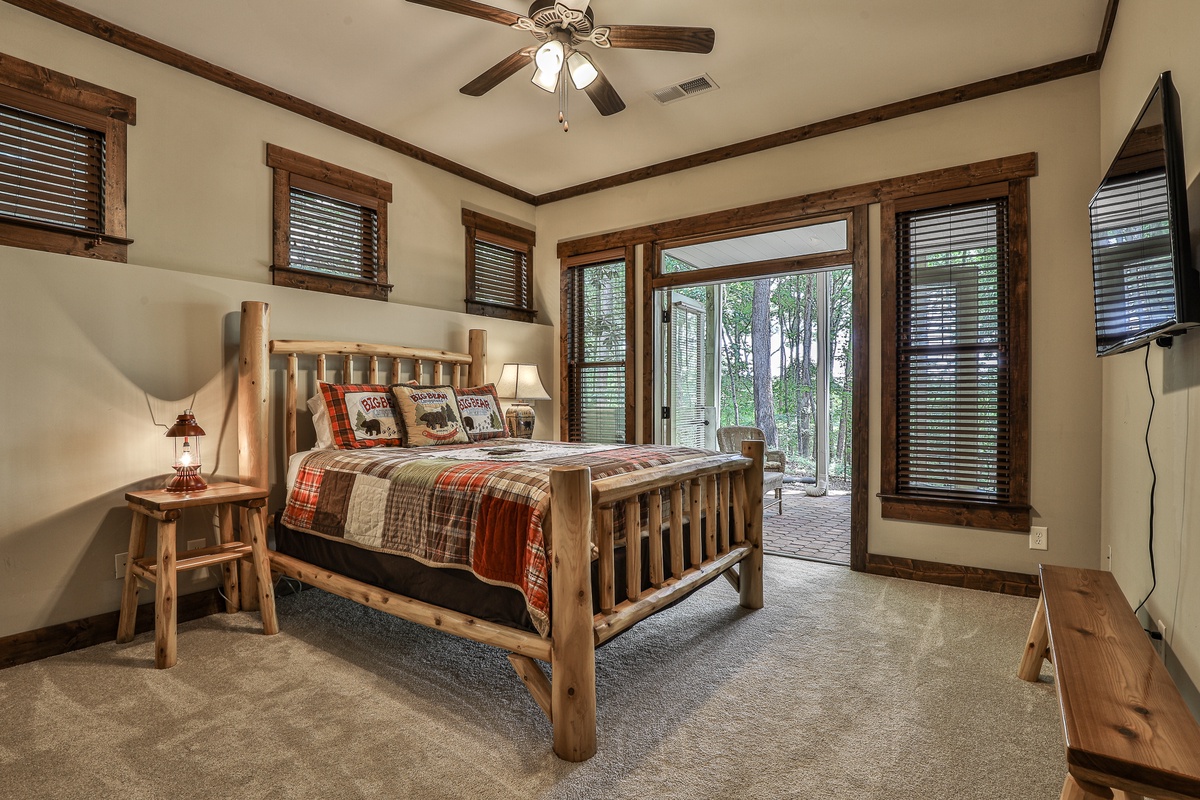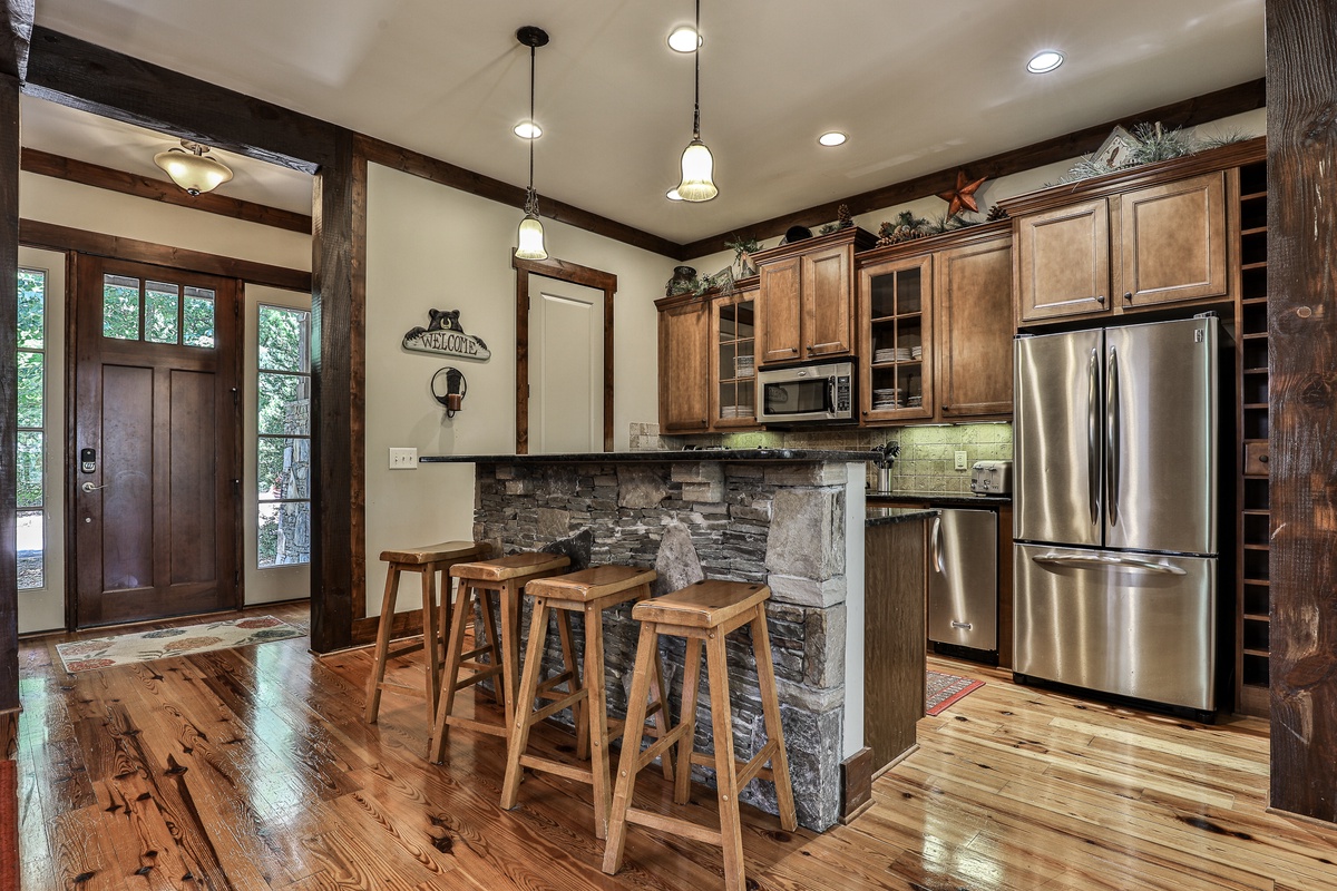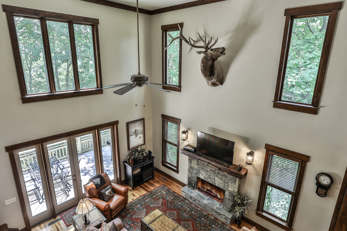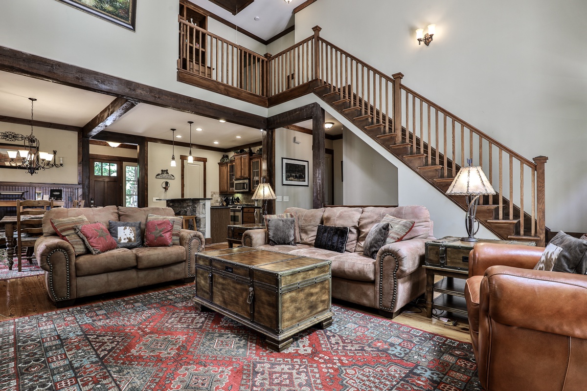 Elk Horn is a rustic and cozy four-bedroom cottage located in the new Choctaw Village area near the Club House, with accessible walking trails managed by Mountain Home Rentals of Georgia. Every detail has been meticulously crafted, from the 200-year-old heart of pine floors to quality furnishings.