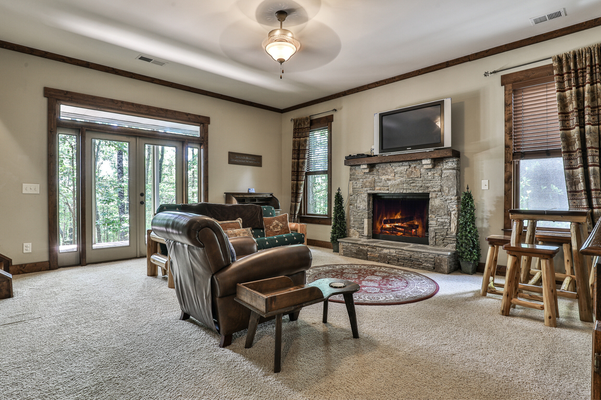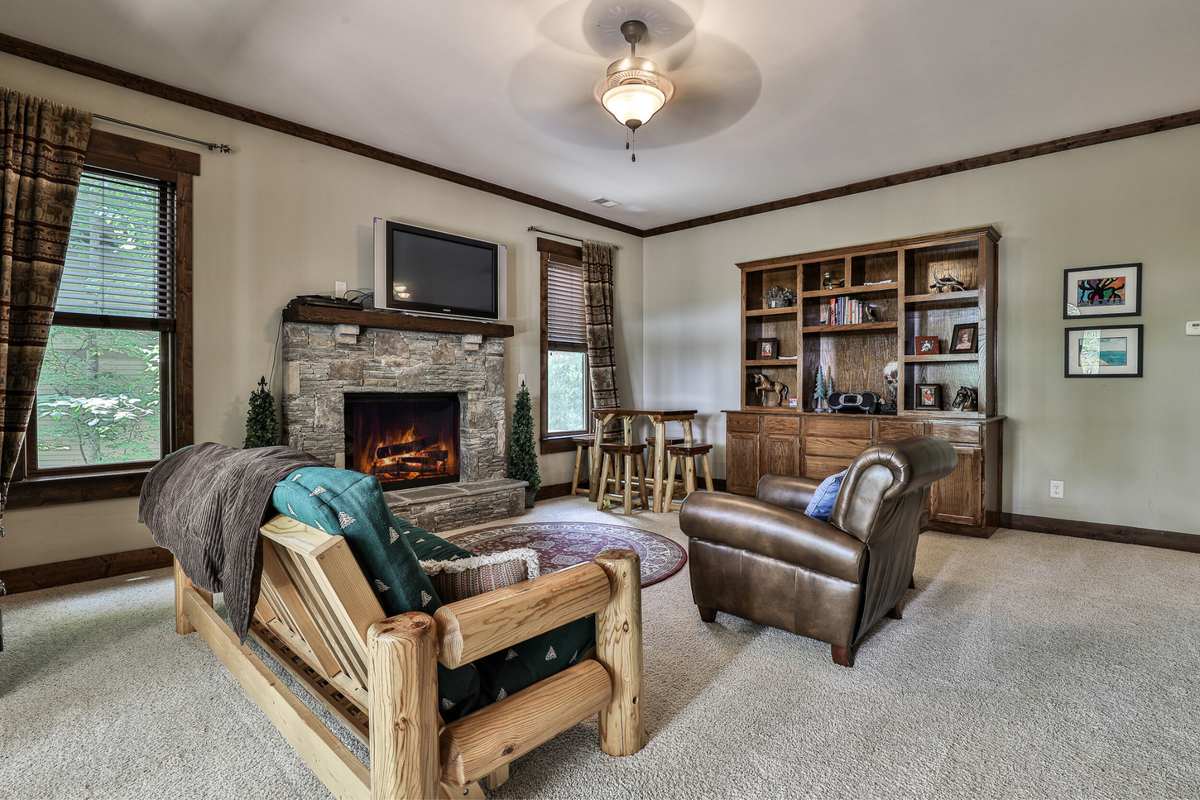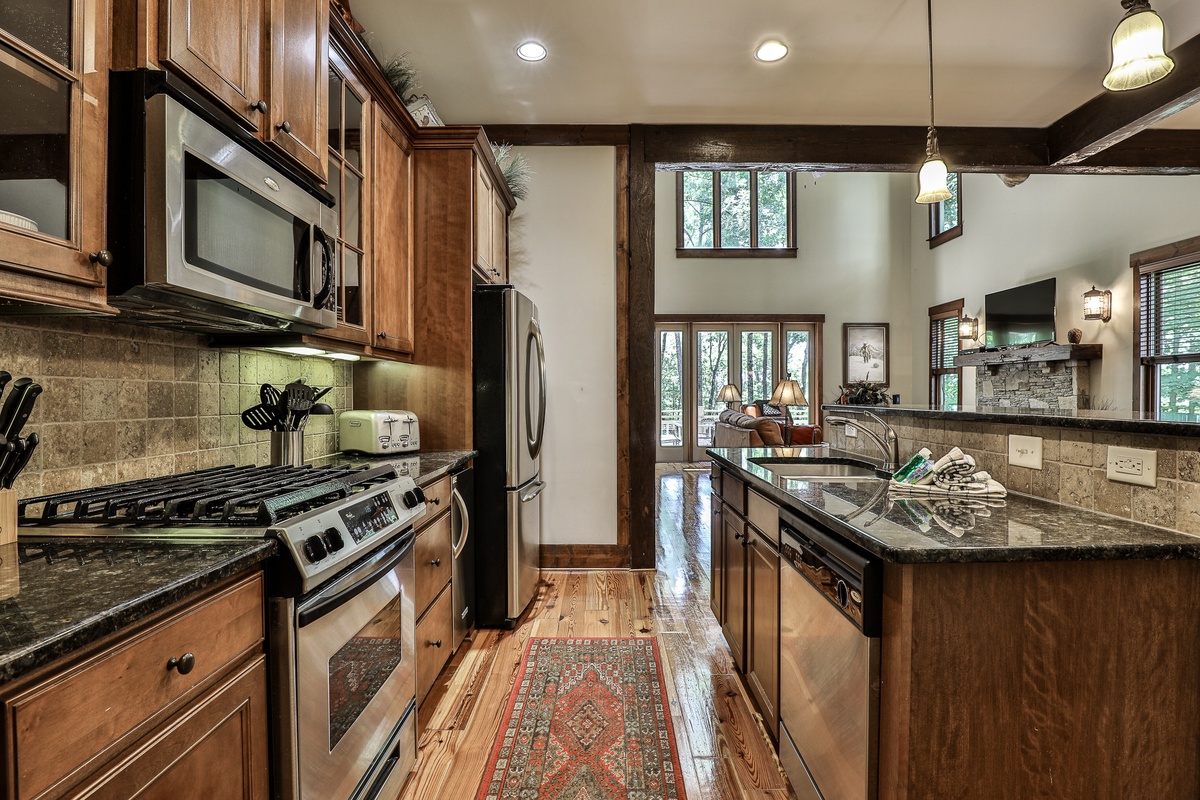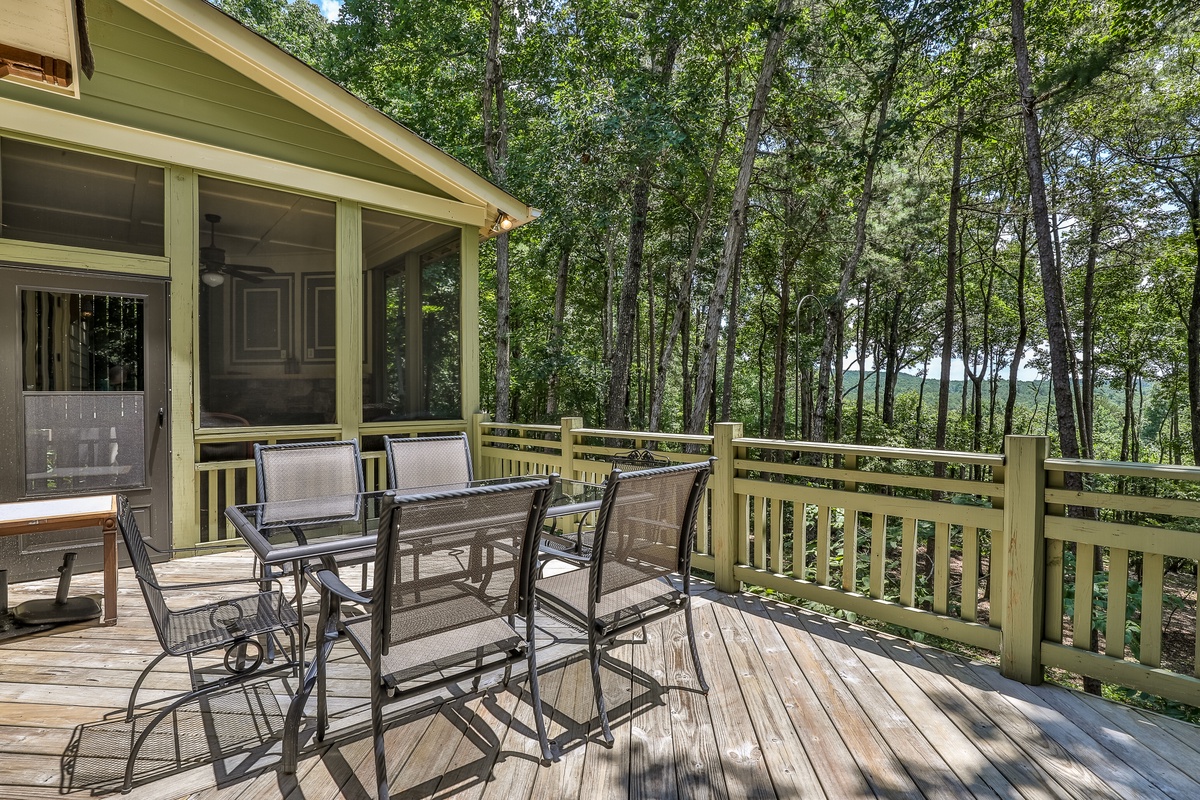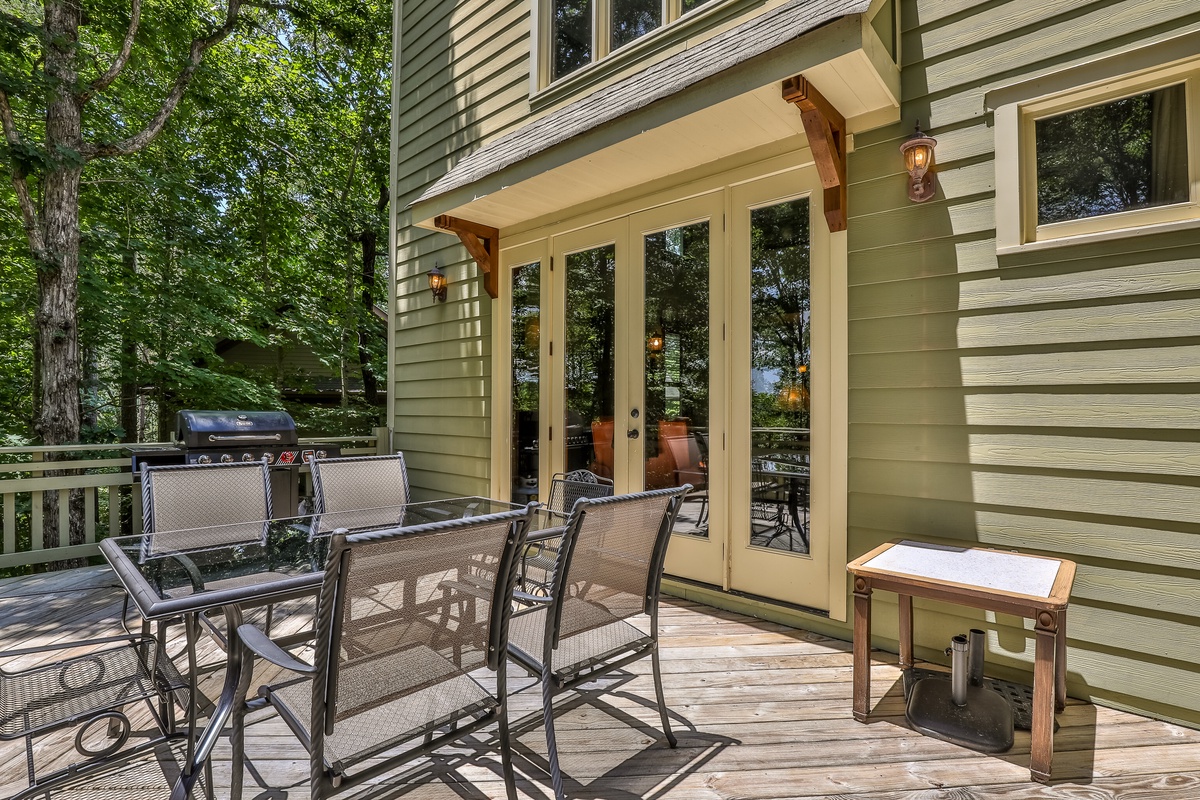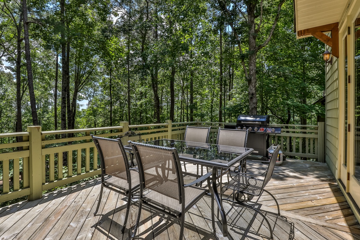 The main floor features an open kitchen, a large dining room and a gas fireplace in the living room. This space also offers an HD flat-screen TV. Relax in the master bedroom with a king bed, an HD flat-screen TV, and a large master bath with a walk-in shower and separate tub. The entry level bedroom has exterior doors leading to the screened in fireplace deck space. A deck off the main floor includes a propane gas fireplace for your enjoyment.Â
