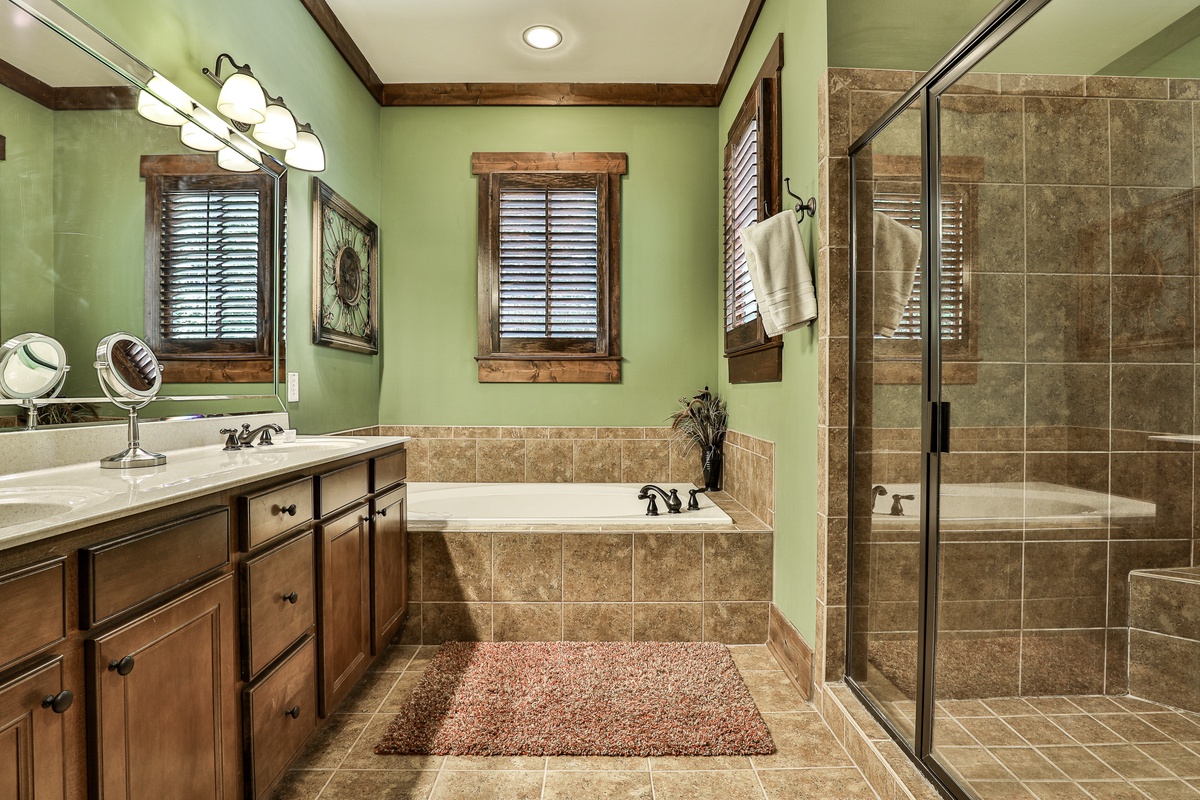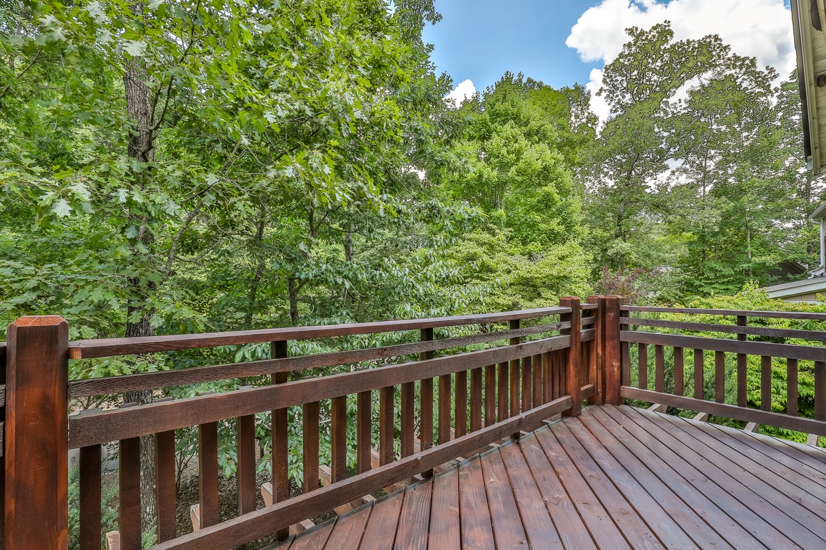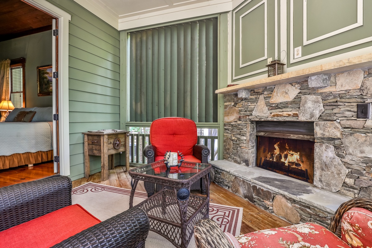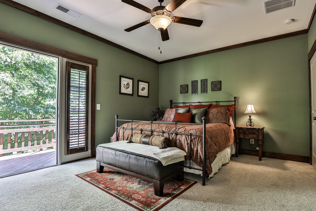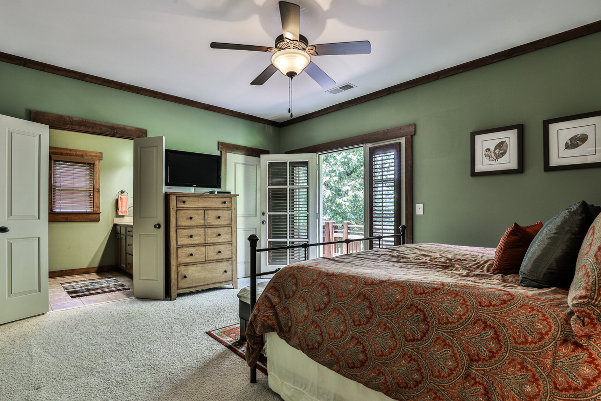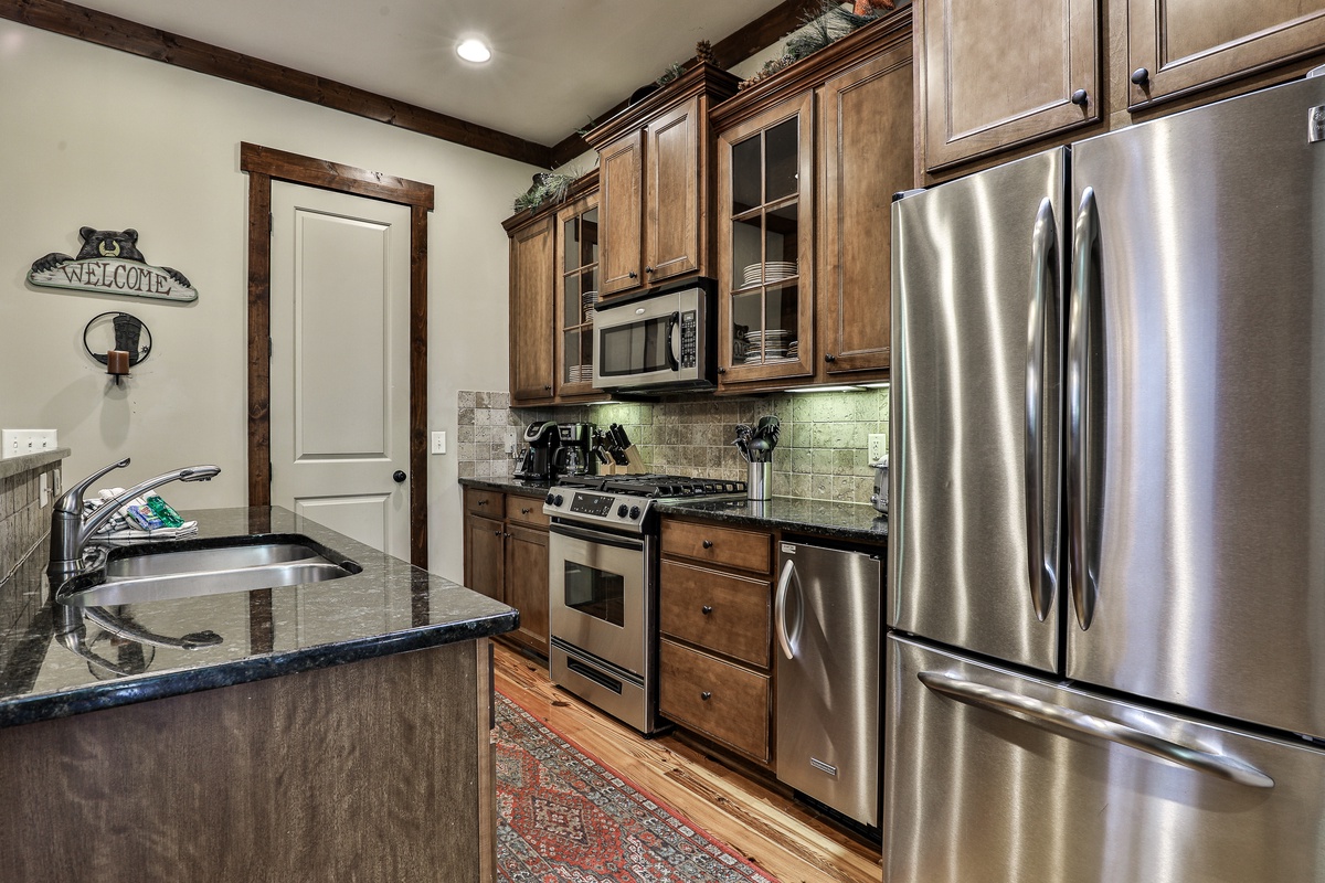 The main floor features an open kitchen, a large dining room and a gas fireplace in the living room. This space also offers an HD flat-screen TV. Relax in the master bedroom with a king bed, an HD flat-screen TV, and a large master bath with a walk-in shower and separate tub. The entry level bedroom has exterior doors leading to the screened in fireplace deck space. A deck off the main floor includes a propane gas fireplace for your enjoyment.Â