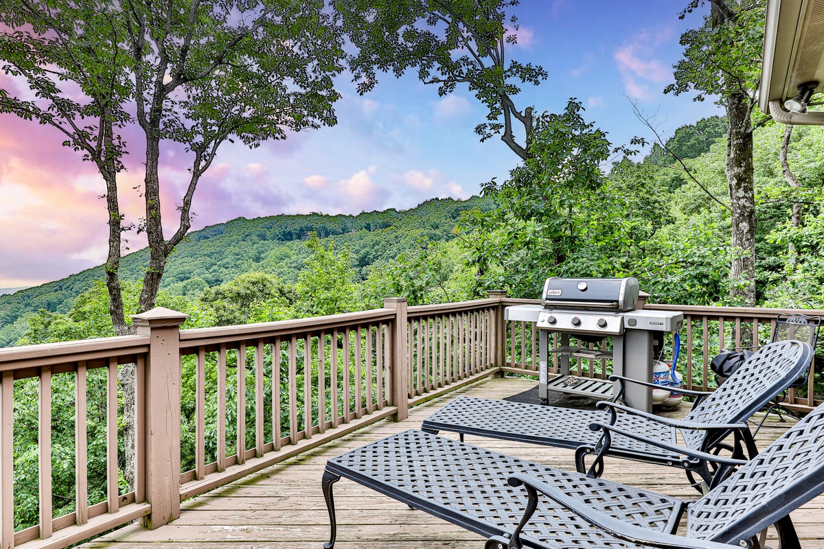 The lodge boasts a large game room in a converted garage, a billiards area with a kitchenette, a flat-screen TV, and cozy seating. Endless Sky Lodge features an outdoor hot tub and sauna with stunning wooded and mountain vistas, and a BBQ grill with breathtaking long-range views the grill master will remember all year long.