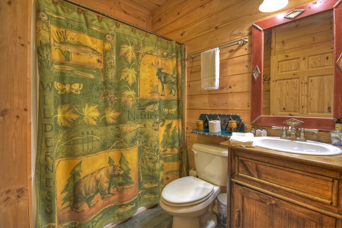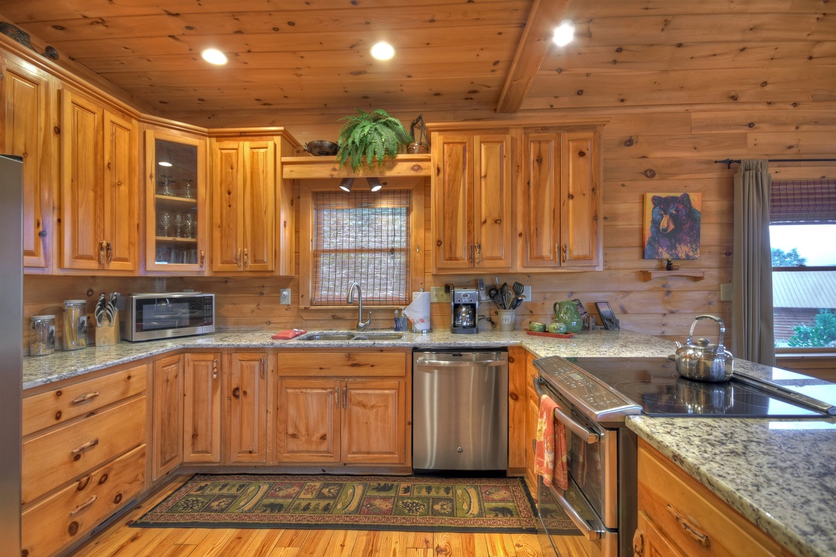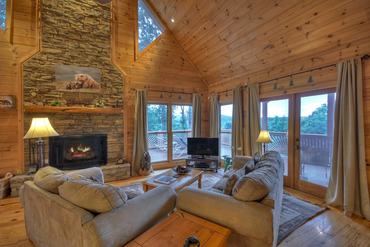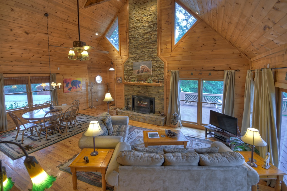 Put your bags down and give yourself a moment to take in the beauty and warmth that this cabin presents you with. On the entry level, you will find a living area with flat panel TV and stacked stone wood-burning fireplace, a dining area and an open kitchen that is fully equipped and perfect for cooking a hearty meal for your guests. Rest up for an adventurous day out in North Georgia in one of the three king size beds found on each level of this Blue Ridge vacation home, or enjoy a fun-filled evening in the recreation room, where you can play a game of pool or entertain yourself for hours in front of the arcade console.