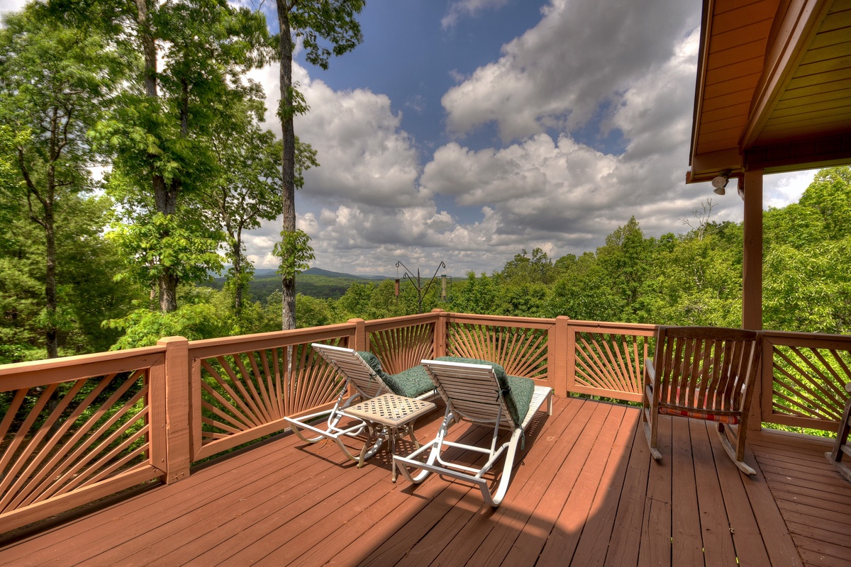 Don’t forget to spend some time outside during your Blue Ridge vacation – with two full decks and one private deck off the master bedroom on the upper level, you have plenty of space to take in the incredible sunsets at this North Georgia cabin rental, which faces southwest. There is also a hot tub on the lower level deck, which is great for soaking any sore bones you may have after hiking one of the many trails in town.
