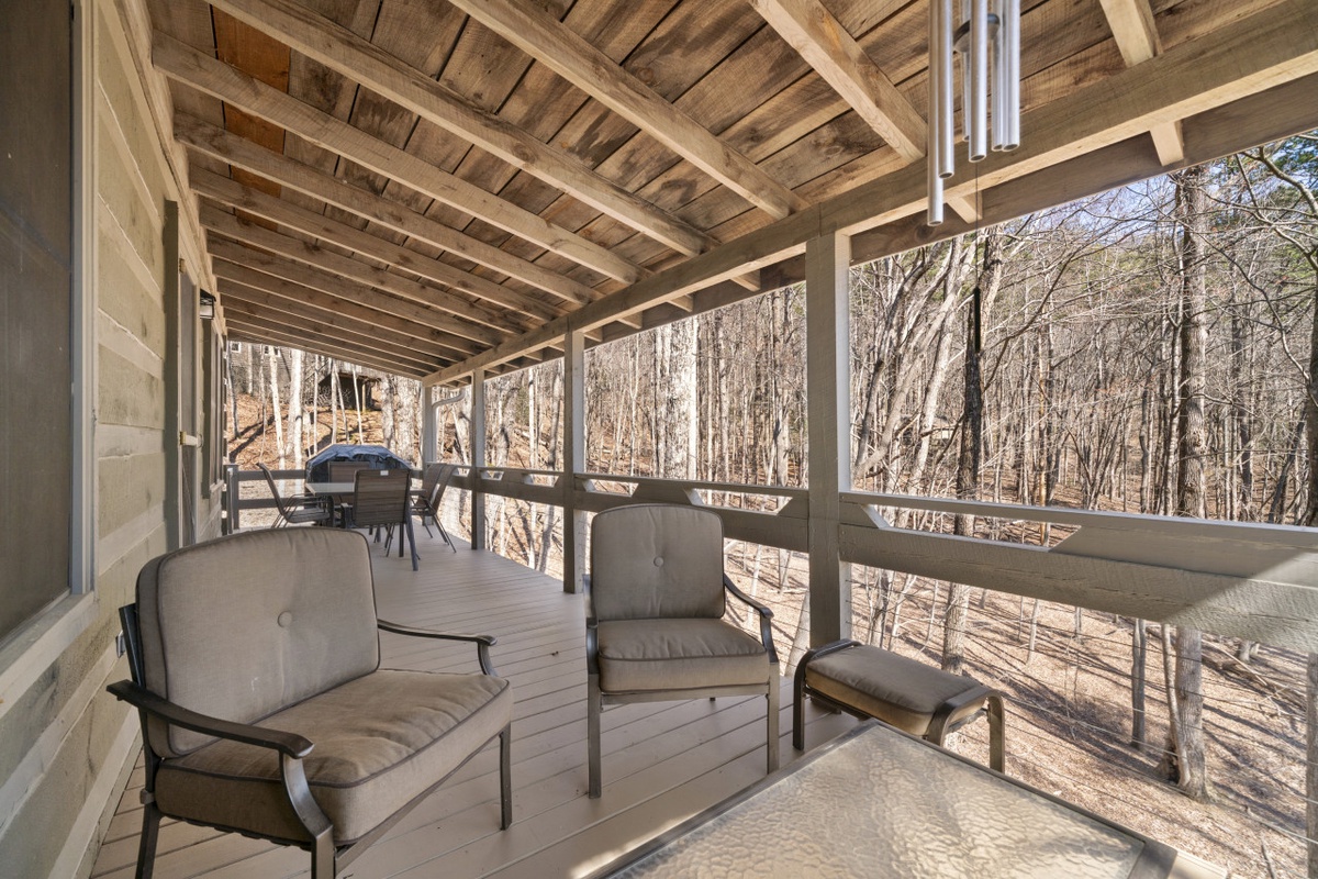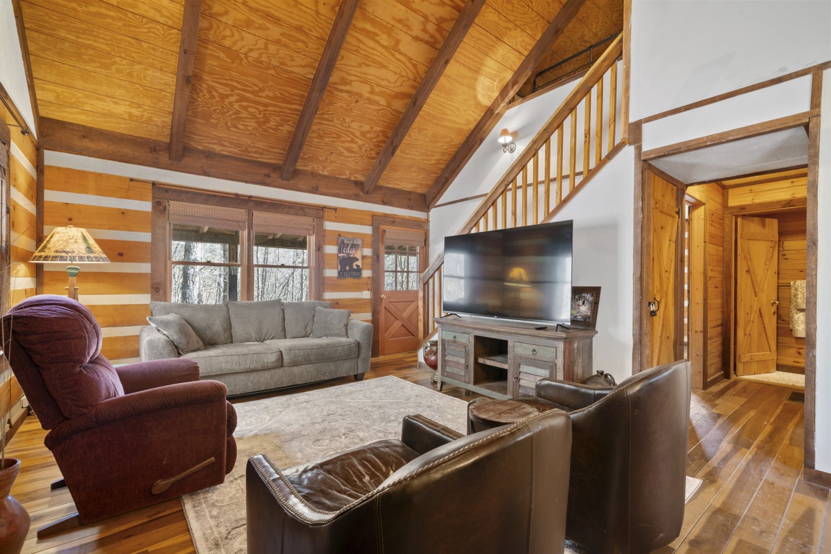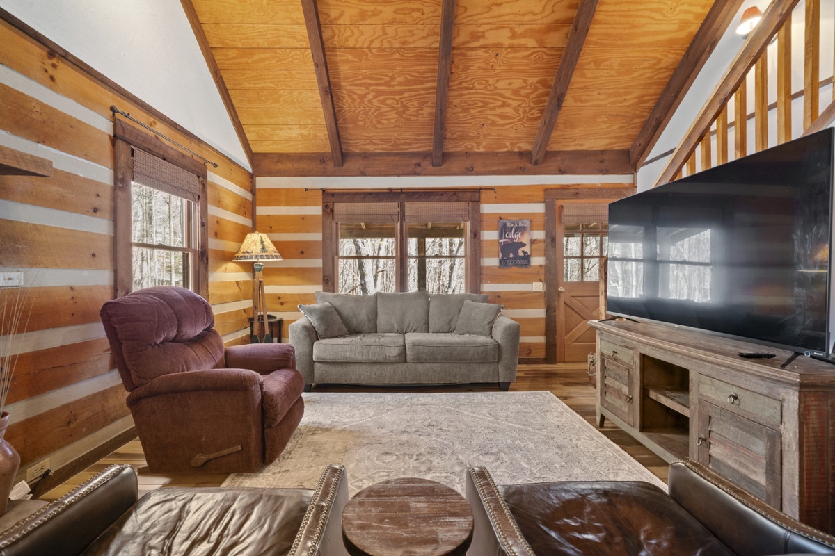 Step outside onto the covered porch and deck to sip morning coffee, fire up the brand-new gas grill, or enjoy dinner surrounded by mountain air and woodland views. Whether you’re sharing stories, stargazing, or simply listening to nature’s quiet rhythm, this space encourages you to slow down and savor the moment.Â