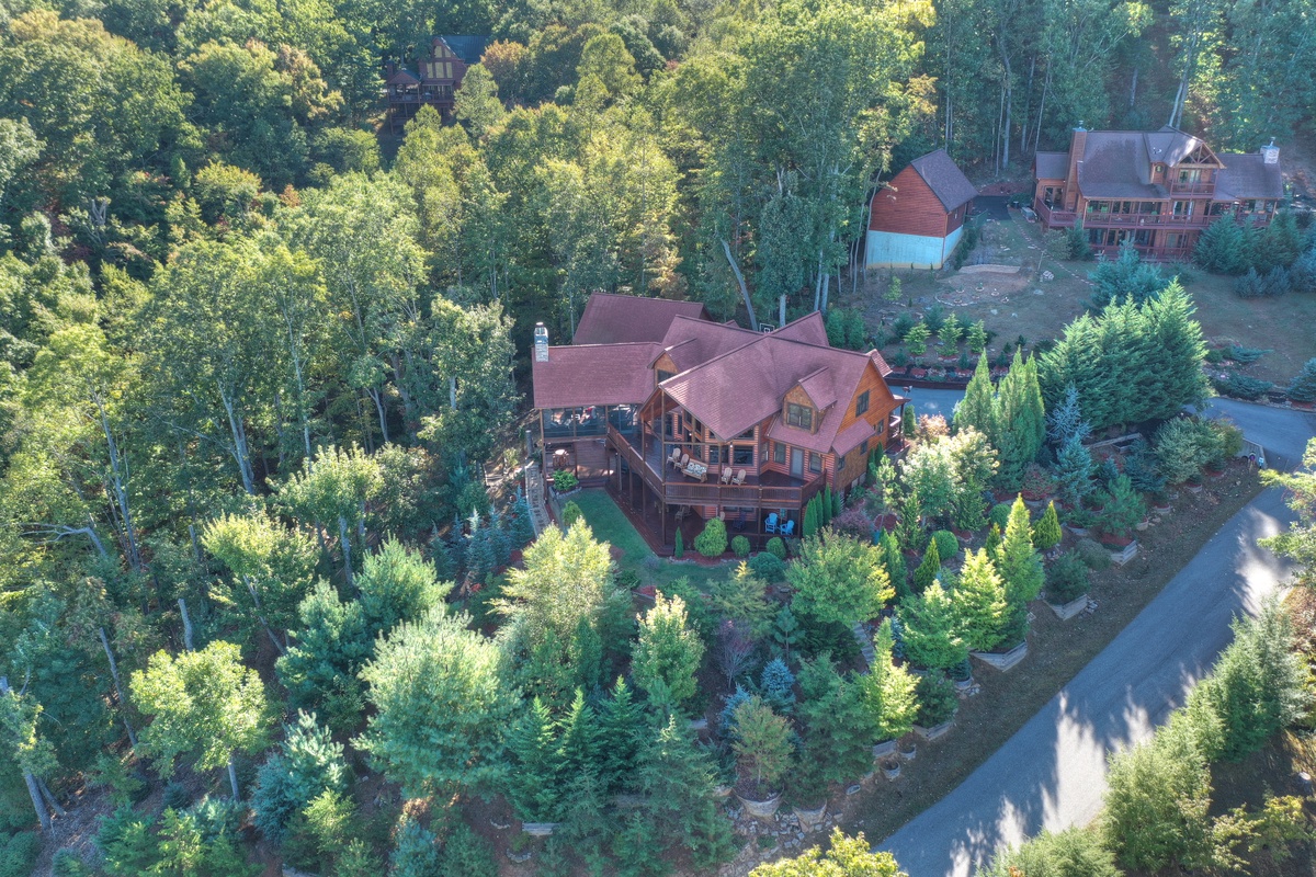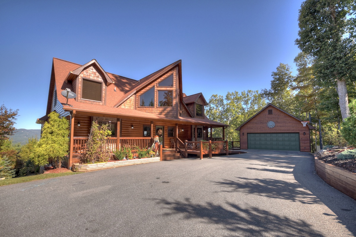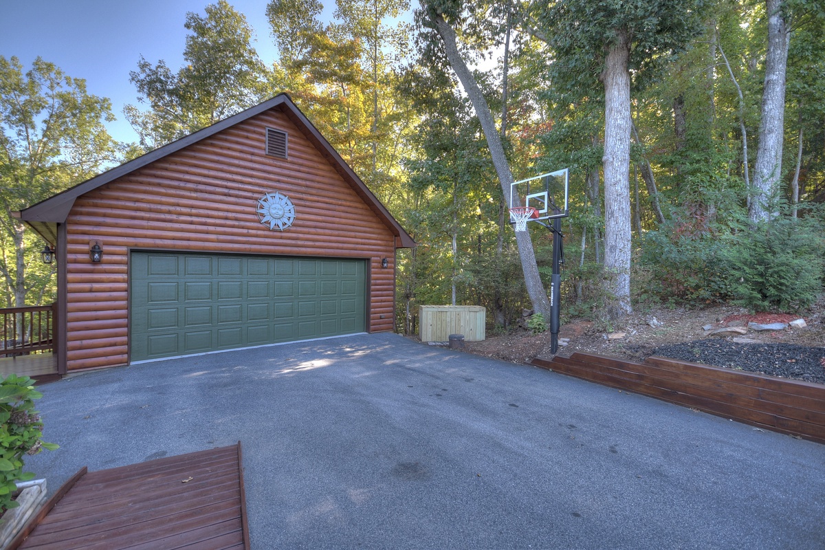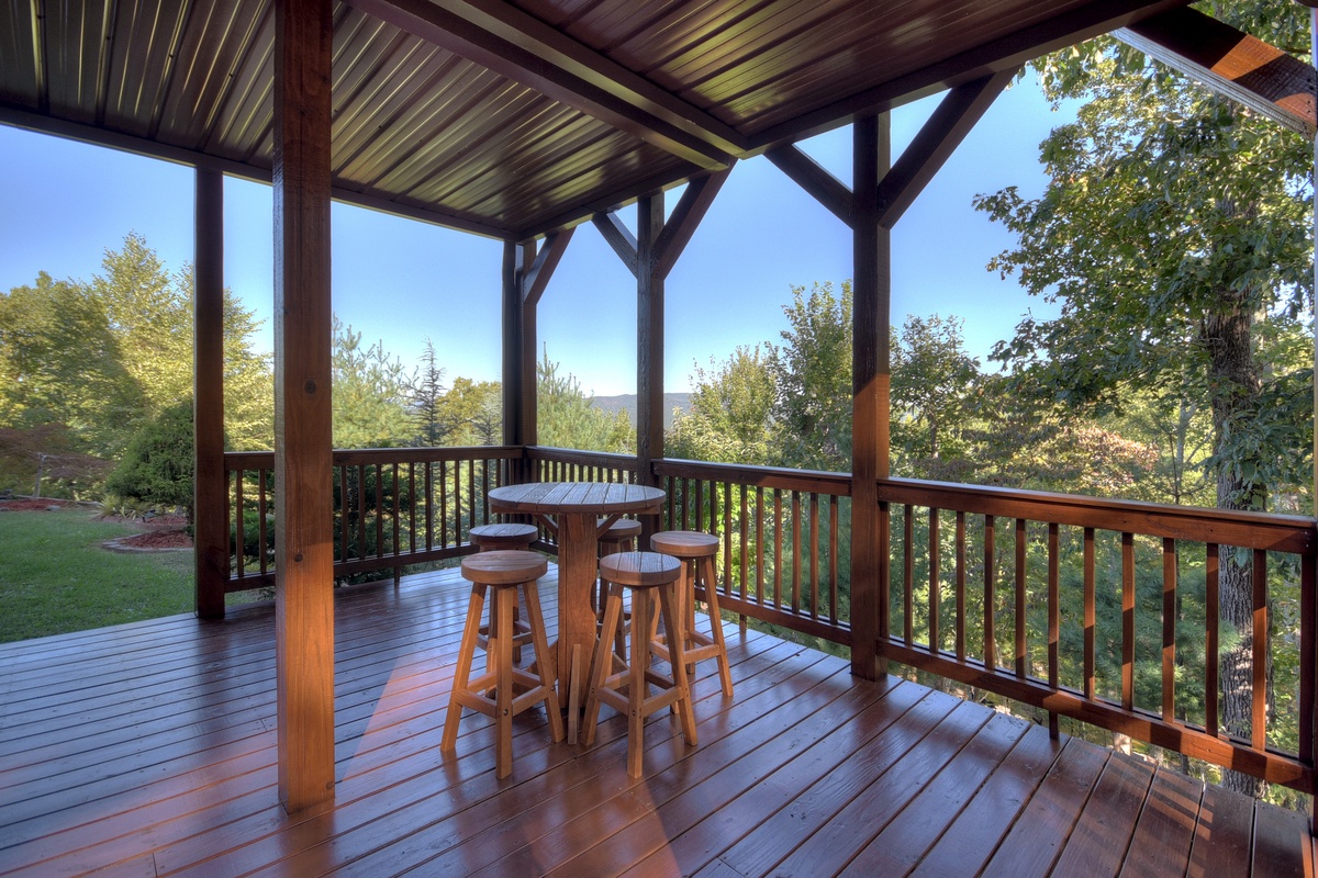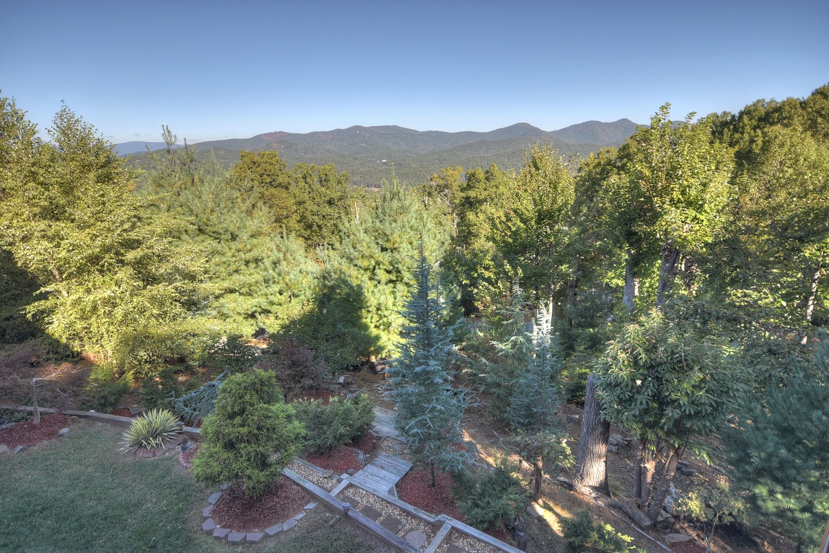 Take the door through the entertainment room to the patio and the 6 person hot tub is located here with nearby rocking chairs and other seating arrangements to behold mother natures beauty. One of the most unique features of this property is the flat, grass, yard like area you don't normally find on top of a mountain! The perfect place to play a game of corn hole or just to feel the grass between your toes. On top of that, take advantage of your very own, private nature trail leading down to the pond with coy fish waiting for their daily treat.