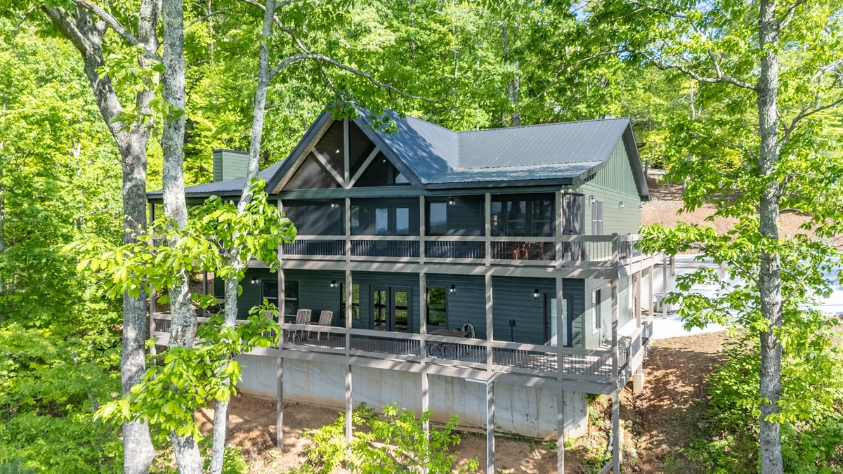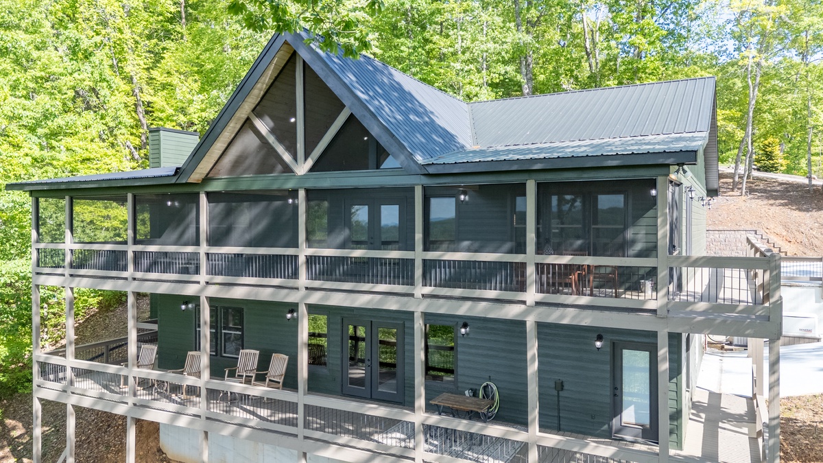 Team building weekend. We planned to do hiking and visit a brewery, but with all the storms, we stayed in, had amazing dinners, played games that we brought, enjoyed the hot tub and outdoor fireplace. Máster on the main bathroom was amazing, kitchen was spacious and beautiful. Decks screened in, hot tub and fireplace. I had so many. The only downside was the arcade games didn’t work. Spacious decks with a hot tub, plenty of outdoor seating on multiple decks as well as the nice touch of having outdoor fire place, plenty of seating and decks were screened in. The home was spectacular 10/10 had an amazing weekend team building with my Dispatchers.