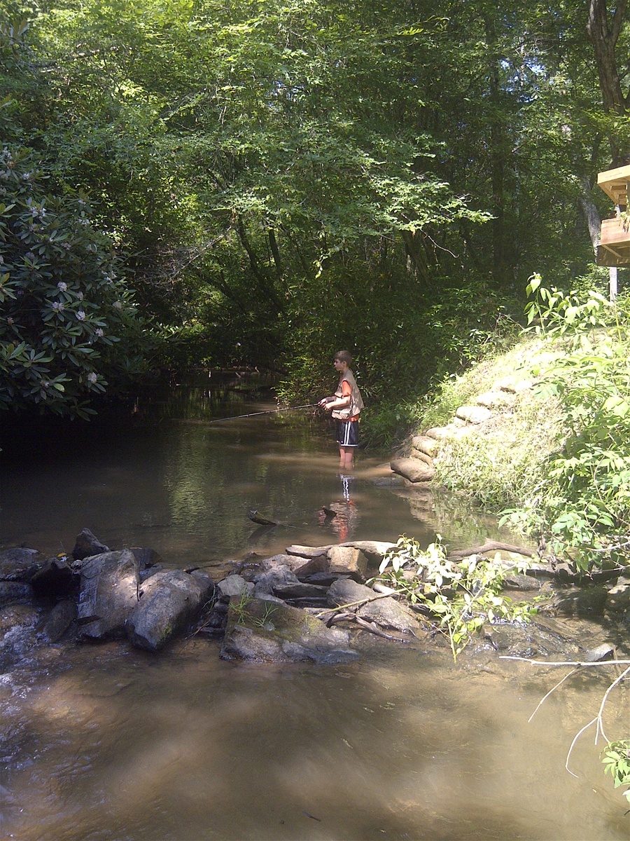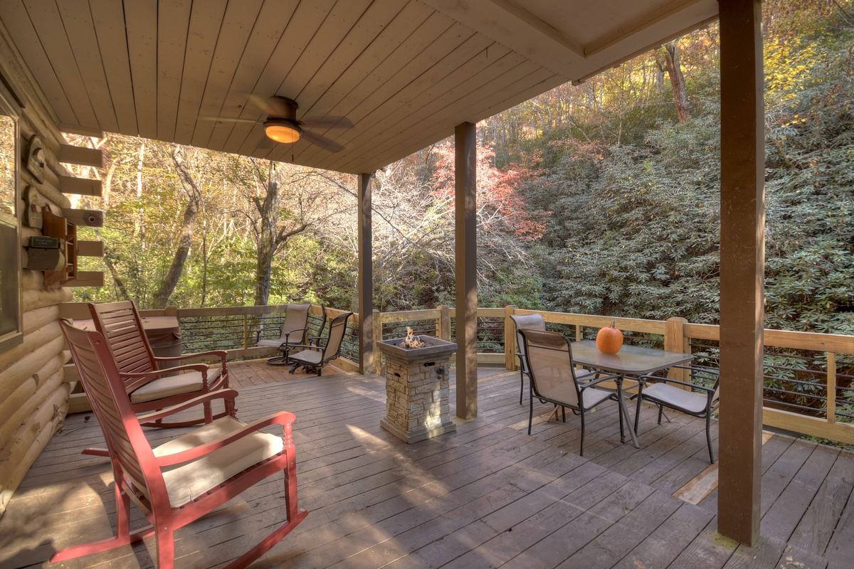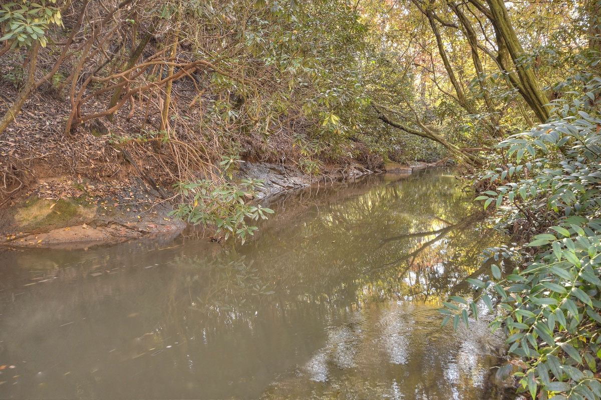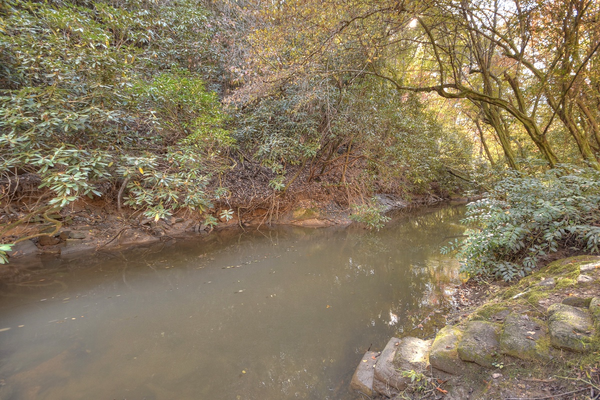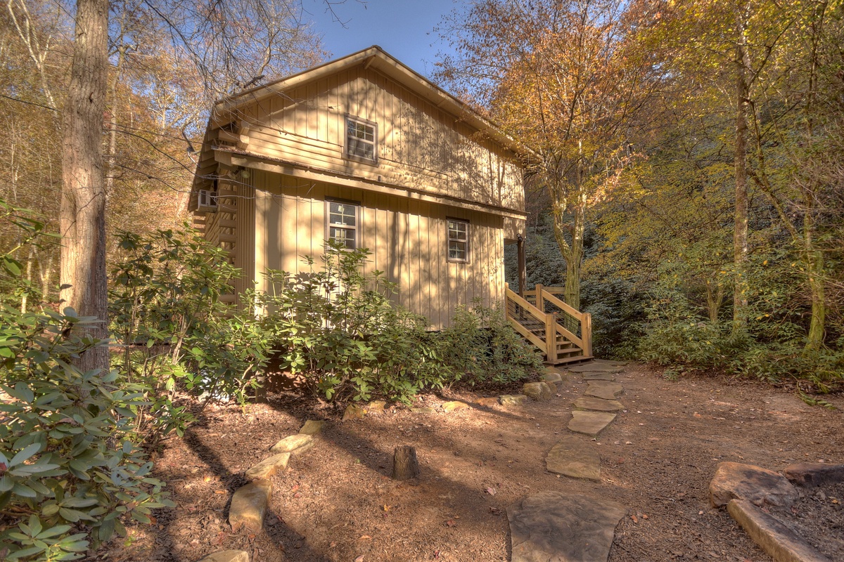 Located in Mineral Bluff and about 15 minutes from downtown Blue Ridge, this authentic cabin sits on the creekbank of Hothouse Creek, one of the many notorious trout streams in North Georgia. With a convenient dam break in the stream just out from the outdoor deck, the rustling water ambiance will sweep your worries away. The front porch/deck is newly updated and offers plenty of space to toss a line in the stream, or just to enjoy mother nature at her finest. Imagine sitting on the deck and listening to the sounds of the creek within view. Once you walk in the door, you will immediately be submersed into the North Georgia Mountains way of livin'. With an open entry-level, you will enjoy the company of those with you while cooking in the fully equipped kitchen or relaxing in the living room watching TV by the gas log fireplace. There is a bathroom with a walk-in shower on the entry-level. This is also where you will find the convenience of the washer and dryer tucked neatly into a closet in the bathroom.