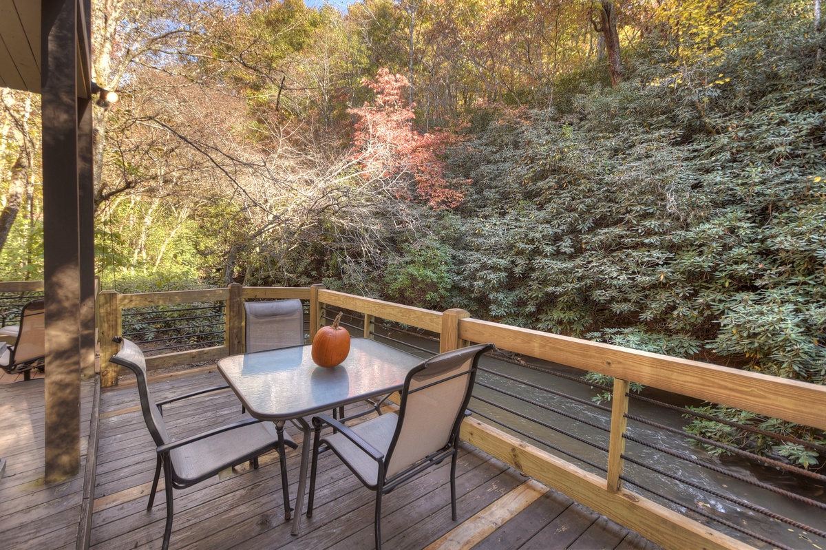 - Balcony with table and 2 chairs overlooking Hothouse Creek