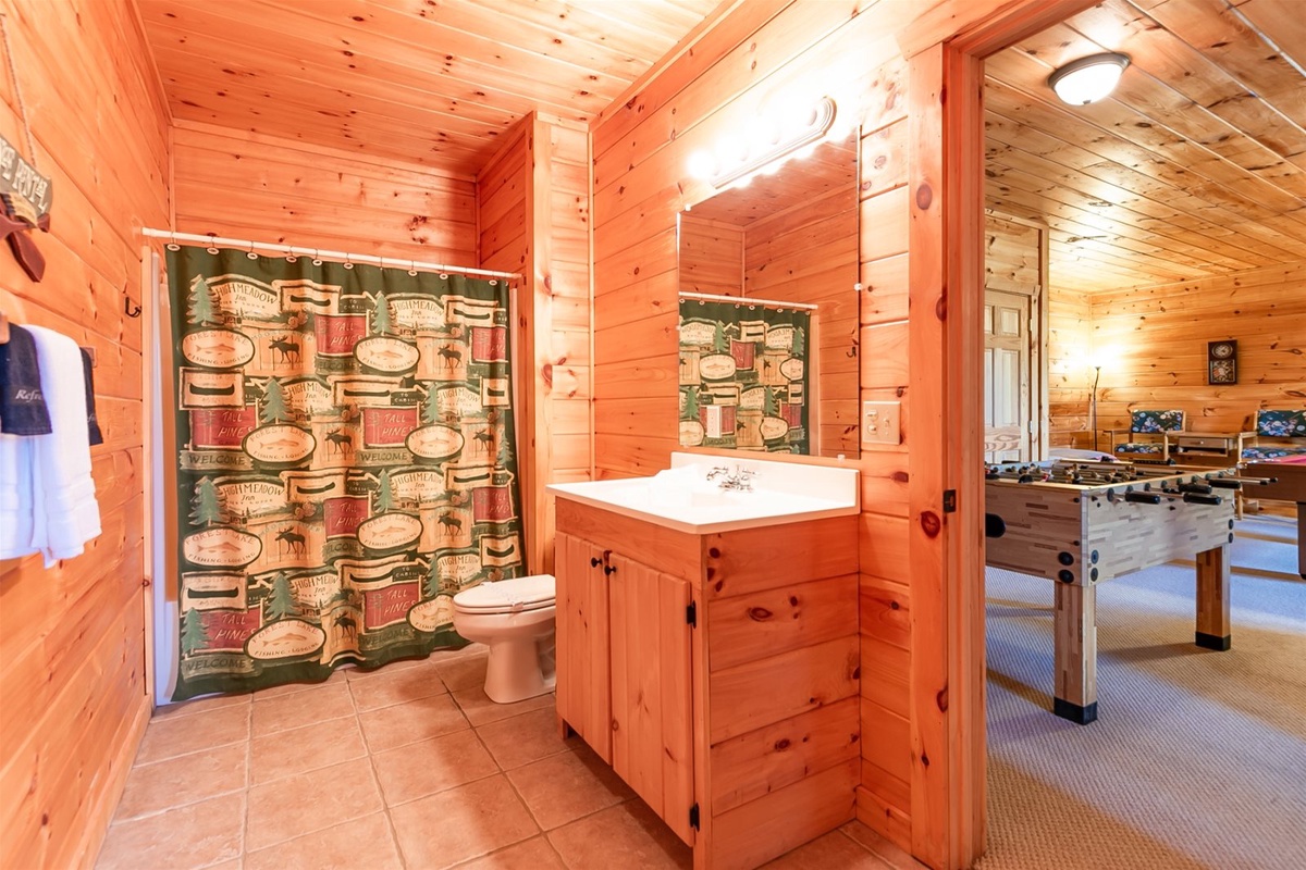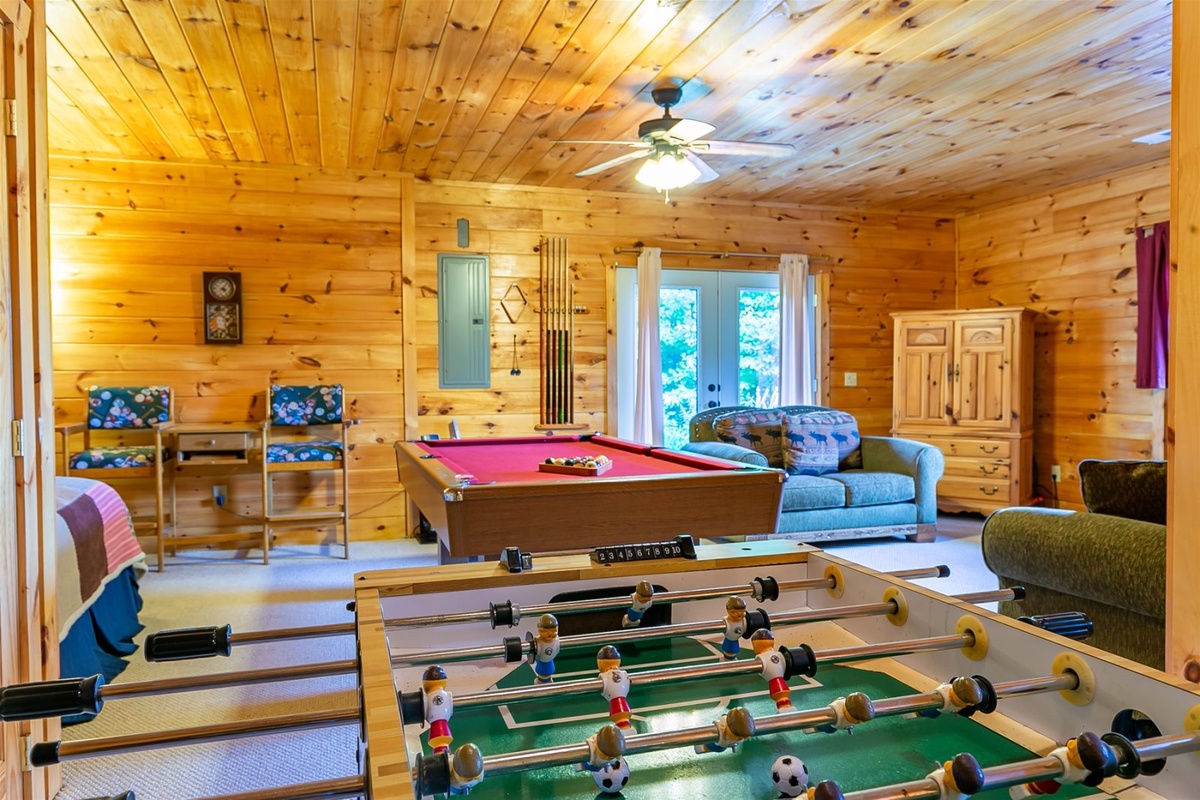 While that might be tempting, we DEFINITELY recommend that you take a trip downstairs, where there’s plenty more space for fun and relaxation during your getaway vacation. Feeling a little competitive? How about a friendly game of pool or foosball with friends? After a few games, why not take a dip in the hot tub with an ice-cold beverage to celebrate? It’s easy to do that any time you wish, since the hot tub is accessed easily from the lower level and has enough room for 6 people.