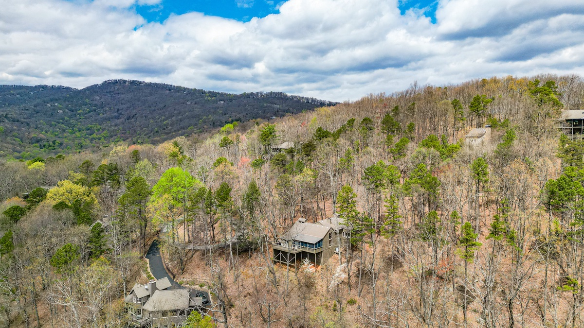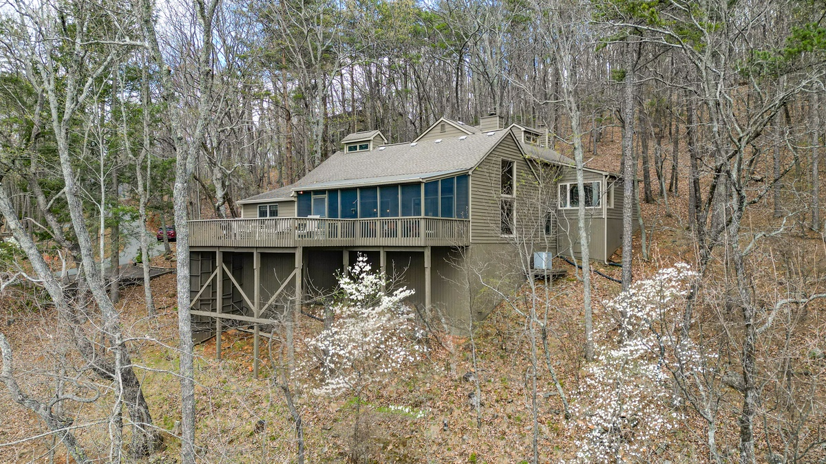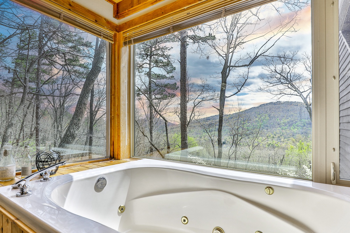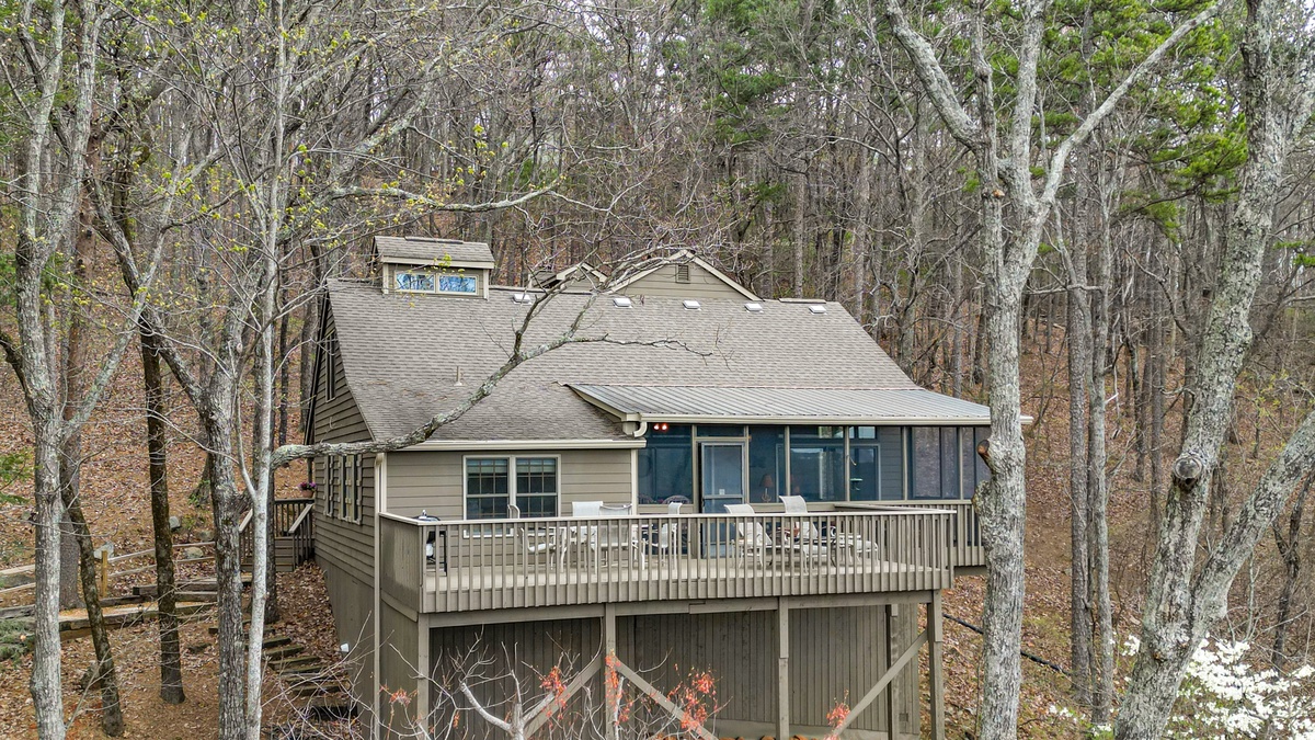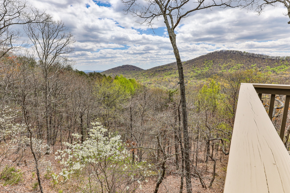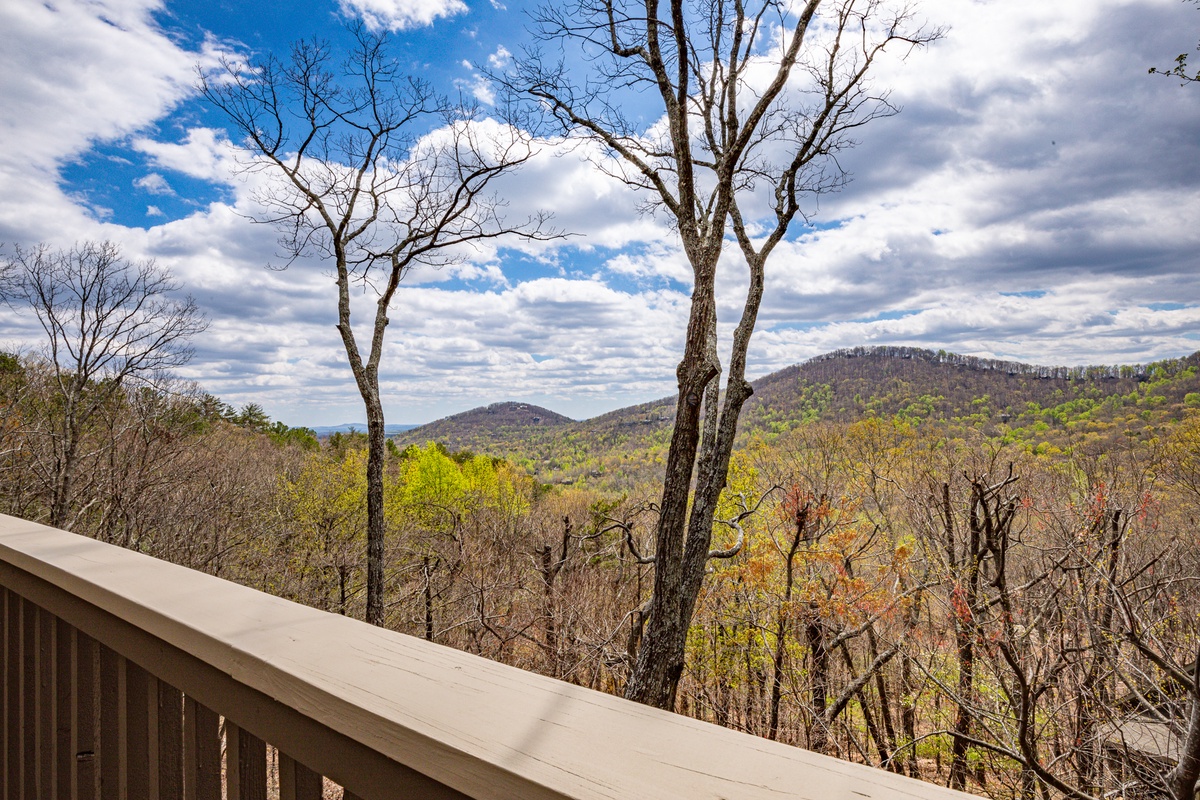The open-plan living area features large windows with big sky mountain and wooded views. Comfortable seating, a cozy wood stove, and a large flat-screen TV make this space perfect for entertaining. The outdoor deck offers relaxation chairs, a dining table, and a large gas grill with gorgeous mountain views. The screened porch with an outdoor fire table and twinkle lights is a fun and inviting gathering area.