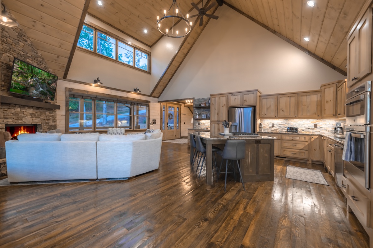 Be prepared to catch your breath as you enter an awe-inspiring 180 degree mountain view from every corner of this spectacular custom built luxury cabin. Vaulted ceilings throughout on the main and upstairs levels, give an open and free feeling of true mountain living.