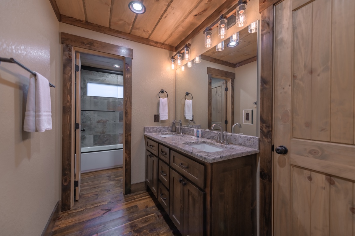 - Shared Full Bathroom with Double Vanities and Tub/ Shower Combo