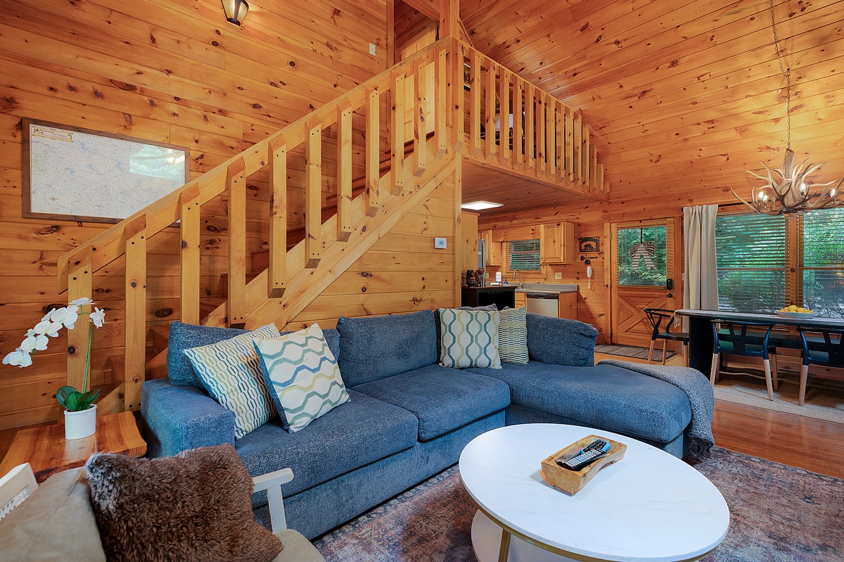 Just a short drive to Downtown Blue Ridge and just steps away from Fightingtown Creek Nature Park, this cabin keeps you close to hiking, dining, shopping, and lake fun, but it still feels a world away. Highlands Hideaway is full of heart, and that’s what makes it feel like home.