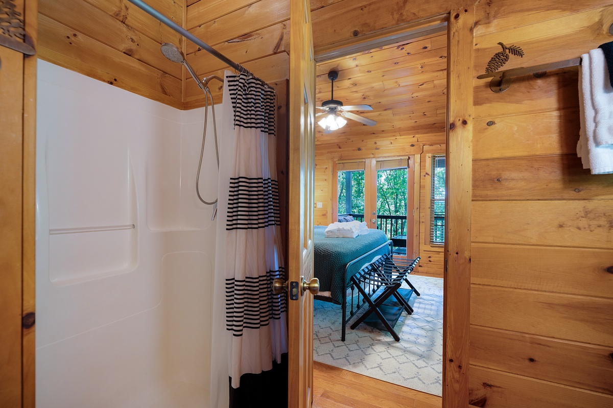 - Private bathroom with shower only and single vanity