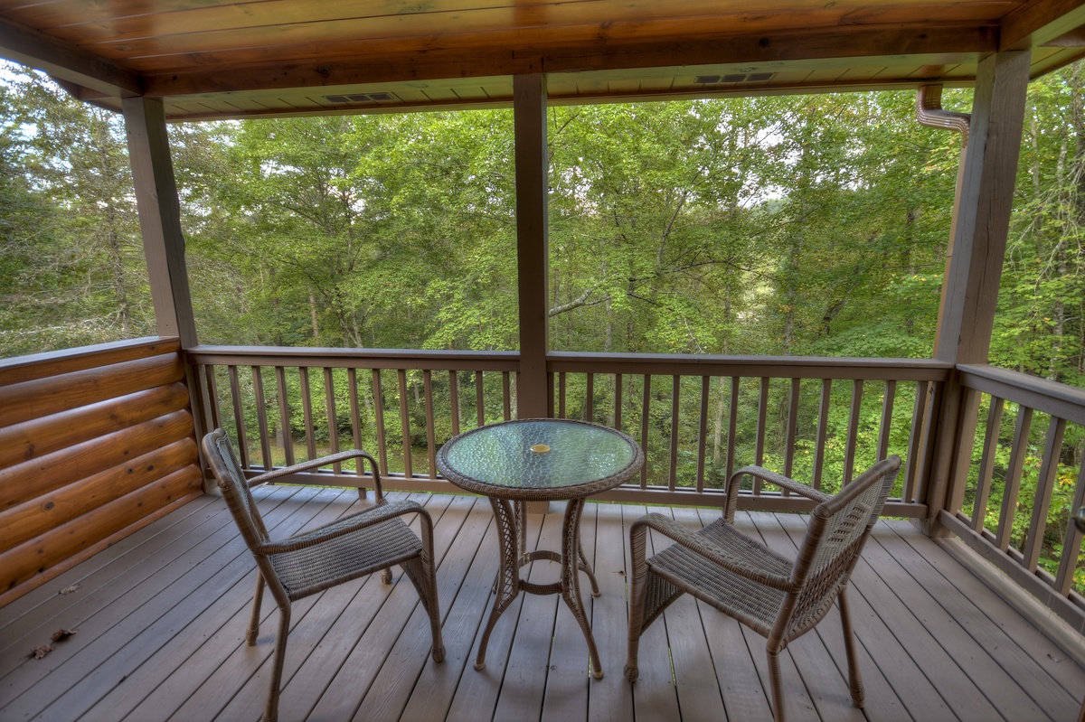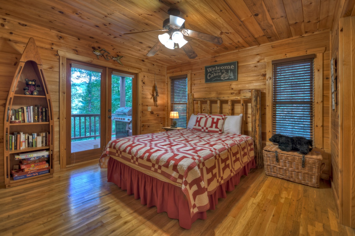 Ascend to the upper level where the king suite awaits, complete with its own private bathroom and balcony. Your personal balcony is more than just a balcony; it's a private oasis. Picture yourself there with a loved one as you savor that first sip of coffee, basking in the morning sunlight, surrounded by the serene beauty of the forest, greeted with a serenade of birdsong melodies and the gentle rustle of leaves dancing on the breeze—it's yours to enjoy, morning, noon, and night.