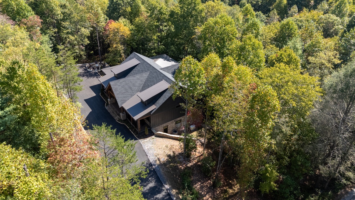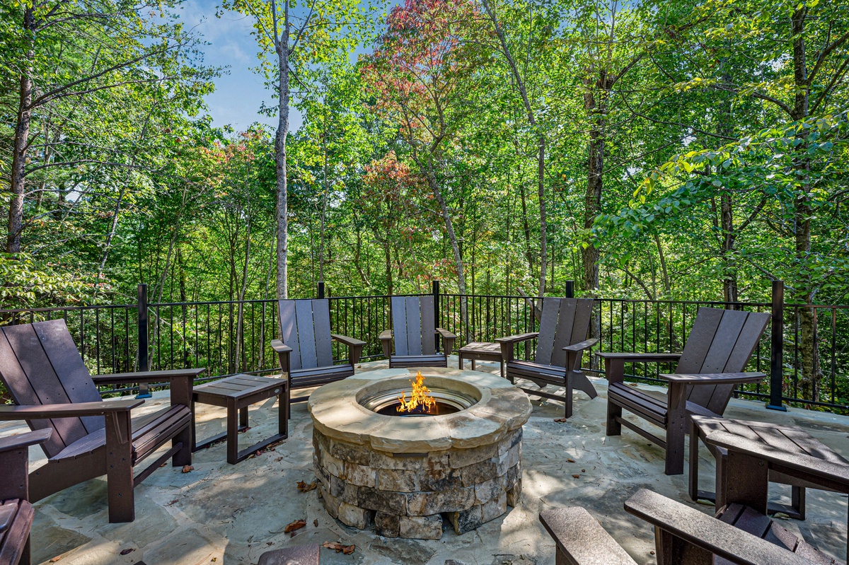 You have arrived, this luxurious property offers a private oasis with all the modern furnishings fit for a King. The second you pull into the drive you are greeted with the sounds of nature and a wooded forest setting, the perfect backdrop for any relaxing getaway.The entryway porch features cozy rocking chairs and a short stroll leads you to a stone-laid firepit area adorned with Adirondack chairs. It's the perfect spot for an evening filled with the aroma of mountain pies roasting over the fire, surrounded by the warm glow of loved ones' faces and the twinkling stars above.