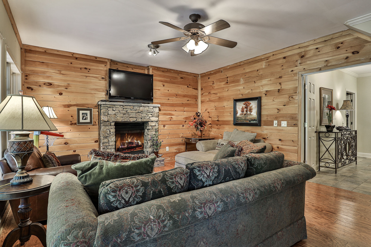 Lakeside Cloud 9 is a very spacious five-bedroom, three-bath, three-level mountain home, beautifully furnished with knotty pine paneling throughout, managed by Mountain Home Rentals of Georgia. This is your perfect getaway to enjoy the great outdoors. Find sanctuary in the charm of this home, whether sitting in the family room, relaxing in the bath, or sipping wine by the fireplace. You'll feel truly at home and at peace during your quiet retreat to Big Canoe.