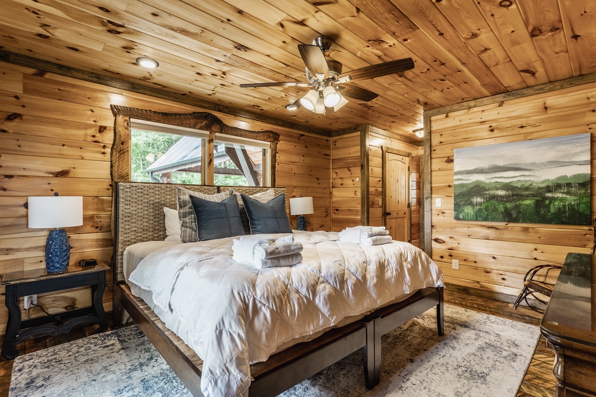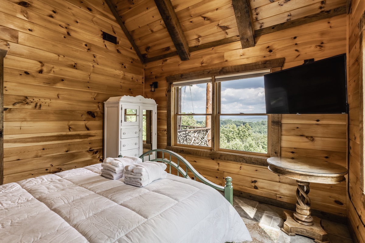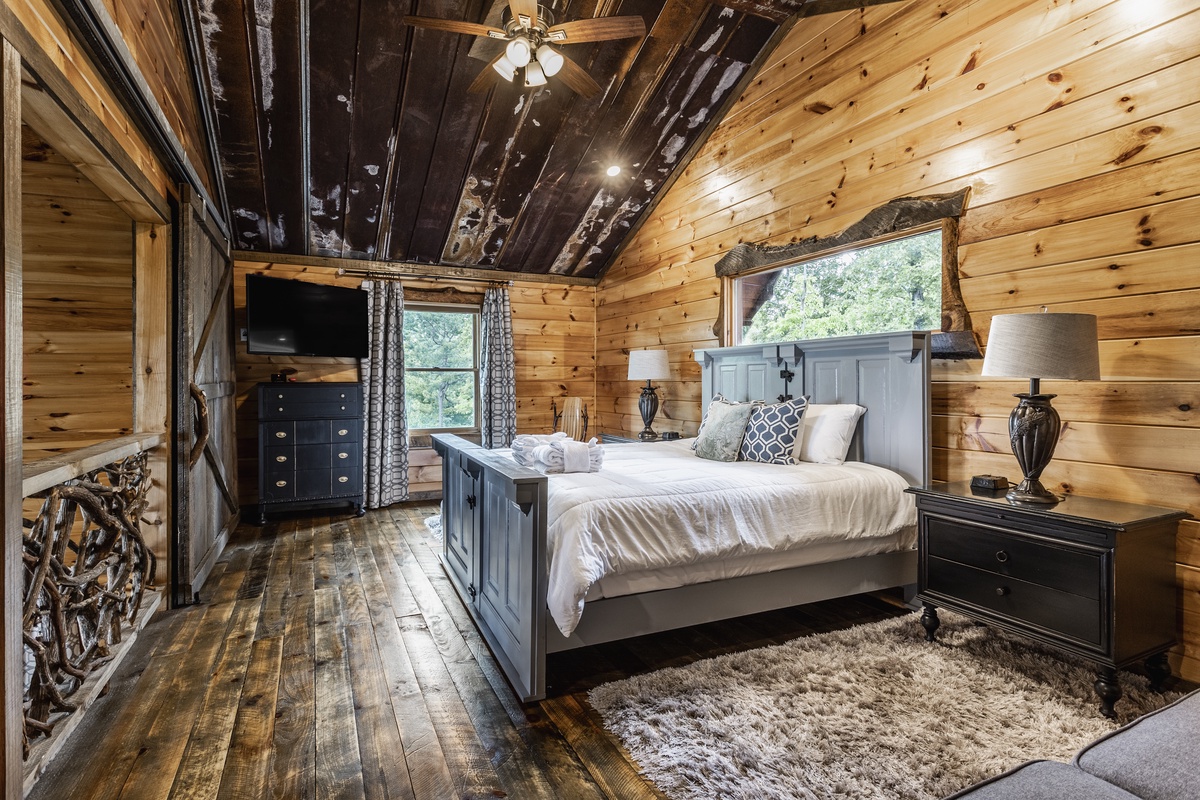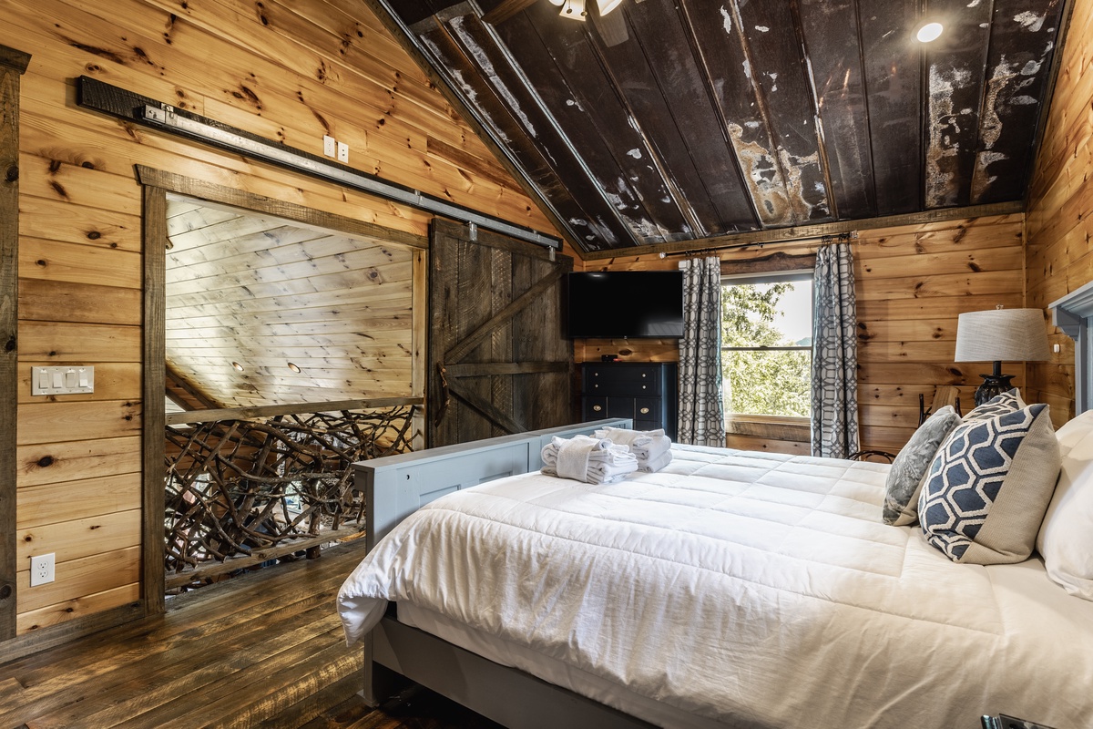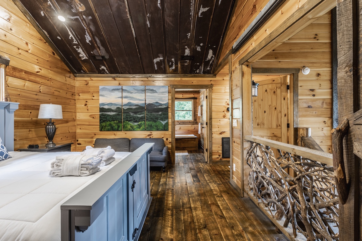 Luxurious Suite with sliding barn door overlooking the mountains and entry level