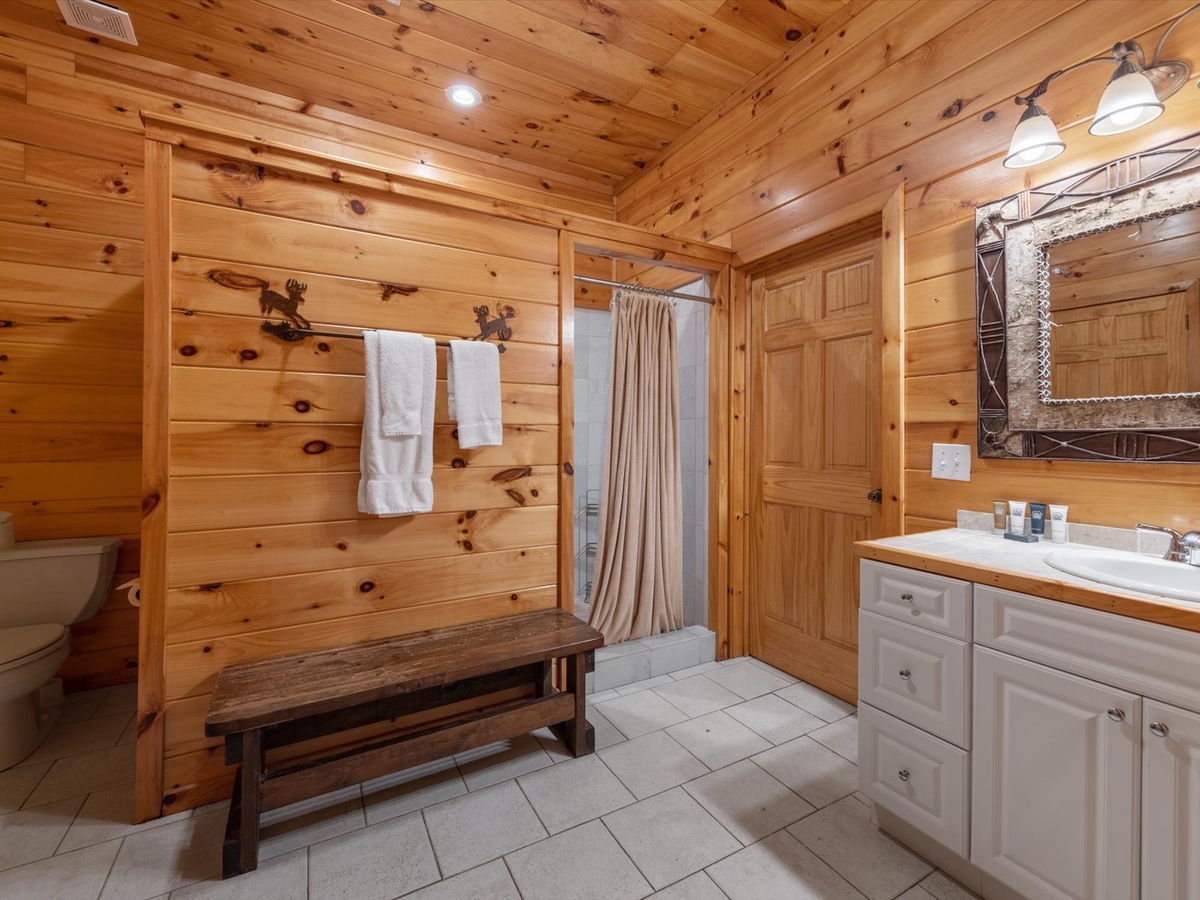 - King bedroom #1 with shared jack/jill bathroom (with stand-up shower stall) with another king bedroom #2