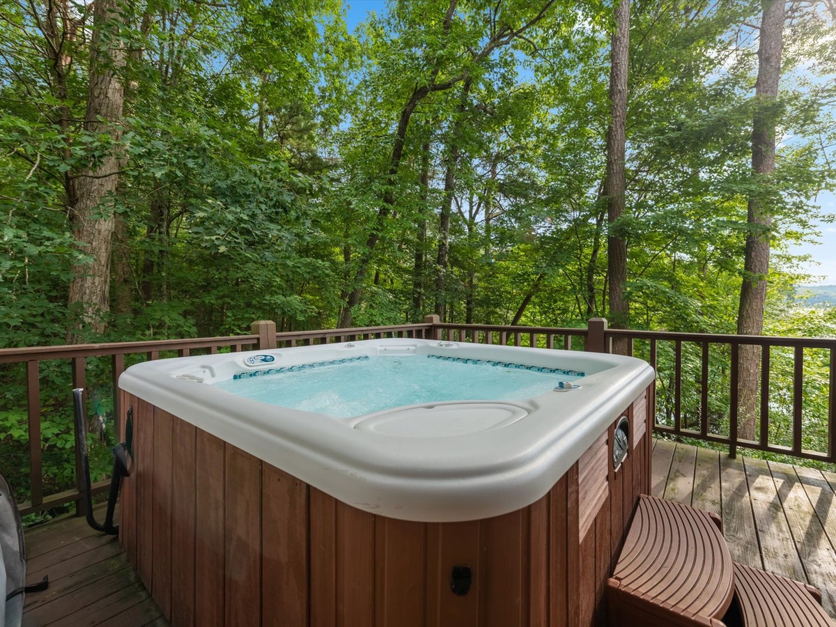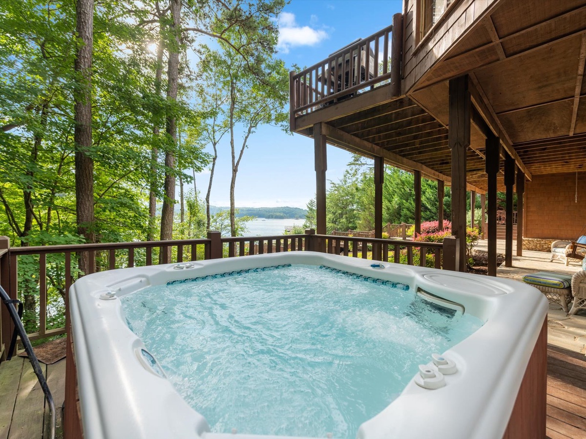 Let the cares of yesterday fade away as you surrender to the gentle swaying of the hammock or porch swing, with its rhythmic creaking blending with the soothing cadence of the lake, you can't help but be drawn to the sparkling waters of Lake Blue Ridge. The possibilities seem endless – from leisurely swims to exhilarating pontoon boat rides, from peaceful kayaking to adventurous fishing. Or perhaps you're unwinding in the hot tub, surrounded by the crisp scent of pine trees. Their fragrant needles swaying gently, creating a soothing melody that harmonizes with the songs of cardinals and whippoorwills. Surrendering to the moment, the tension of past days dissipates with each passing minute, leaving you with a profound sense of peace in its soothing caress.