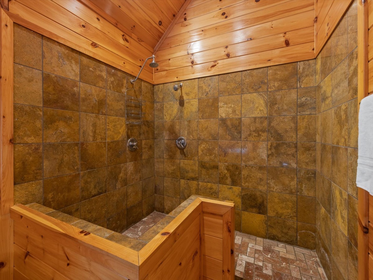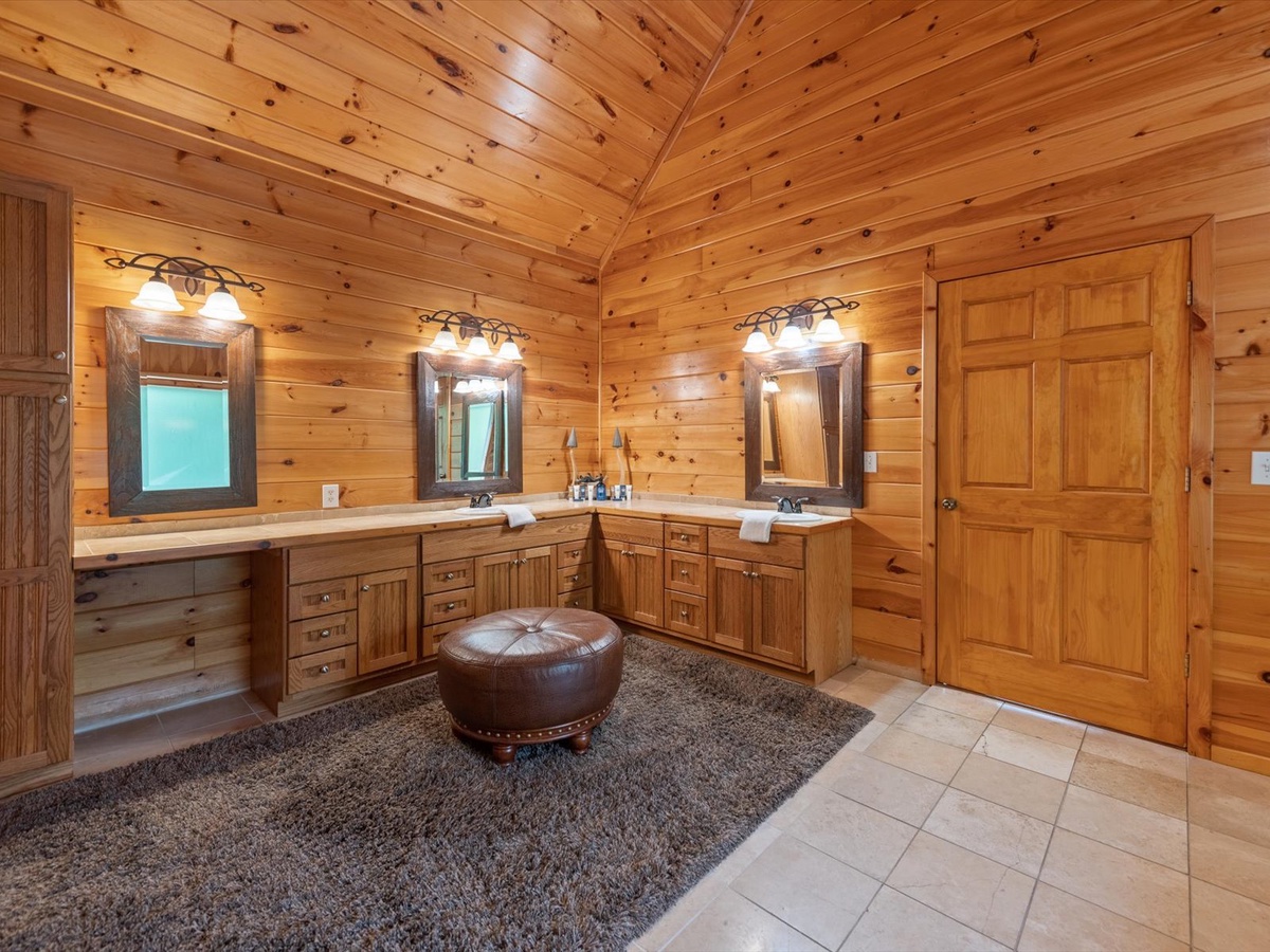 - Master bedroom with king size bed and large private bathroom that includes double vanity with soaker tub and large stone shower.