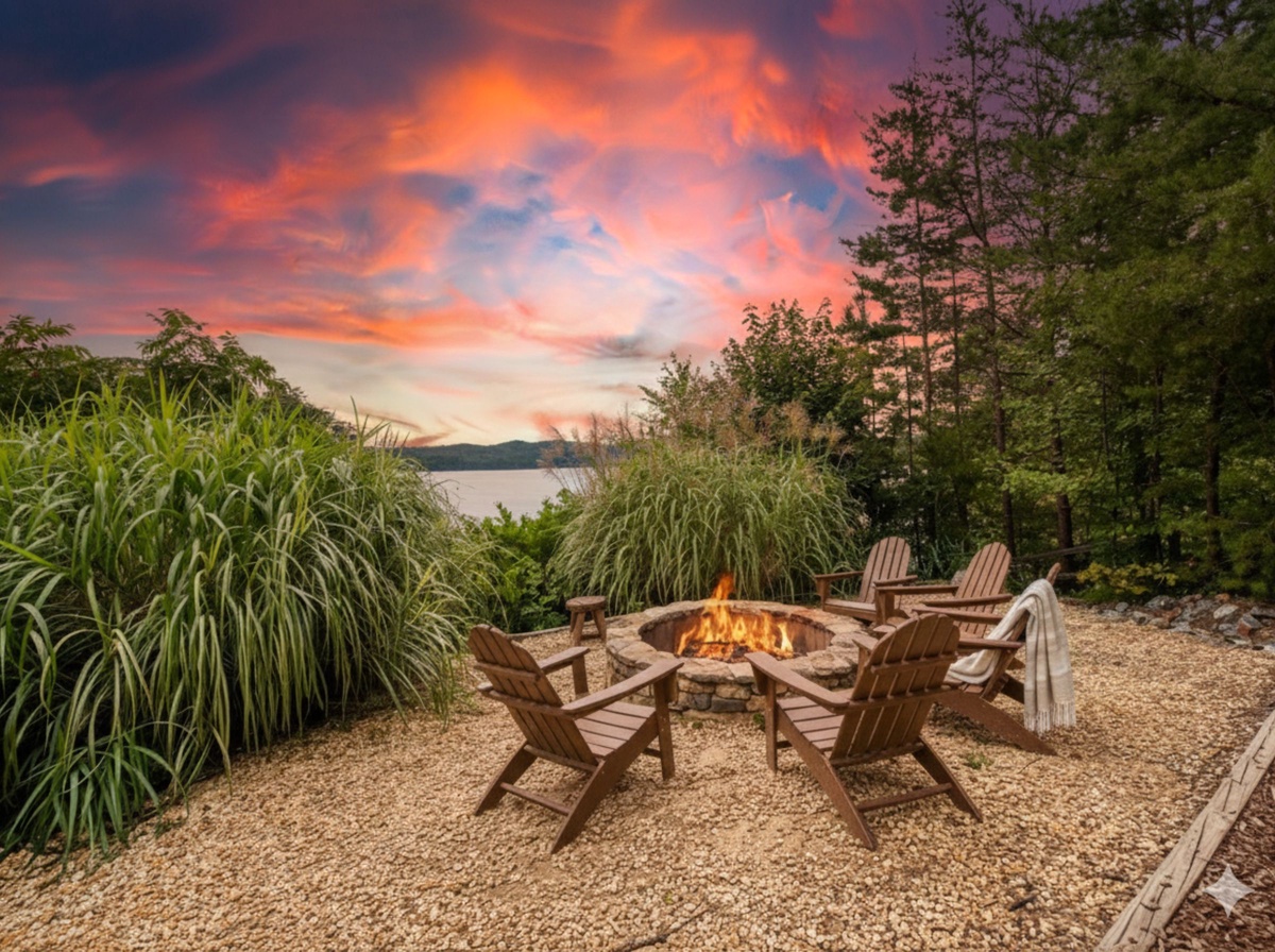 And as the day melts into dusk, the sky ablaze with hues of orange and pink, you gather with loved ones around the lakeside fire pit. The crackling flames cast dancing shadows against the trees, while the haunting calls of geese echo across the water. Underneath a blanket of stars, there's a serenity that washes over you, grounding you in the moment, allowing you to immerse yourself in the tranquil beauty of the night sky, finding solace and renewal in its embrace.