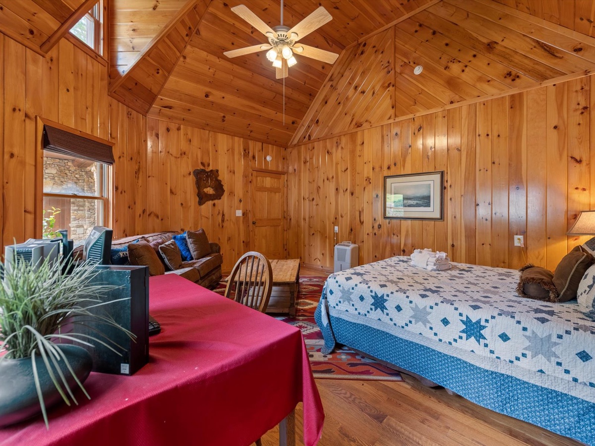 For those who can't quite leave work behind, a dedicated bedroom with a work station provides a quiet space to catch up while still enjoying the serene surroundings. Ascend to the upper realms where a magical haven awaits, designed specifically for our young dreamers to embark on adventures akin to Peter Pan's, ensuring that sweet dreams are guaranteed for our cherished little guests. Descend to the lower level, where a charming card table awaits, creating the perfect stage for lively competitions and evenings filled with laughter, where champions are crowned amidst joyous camaraderie.