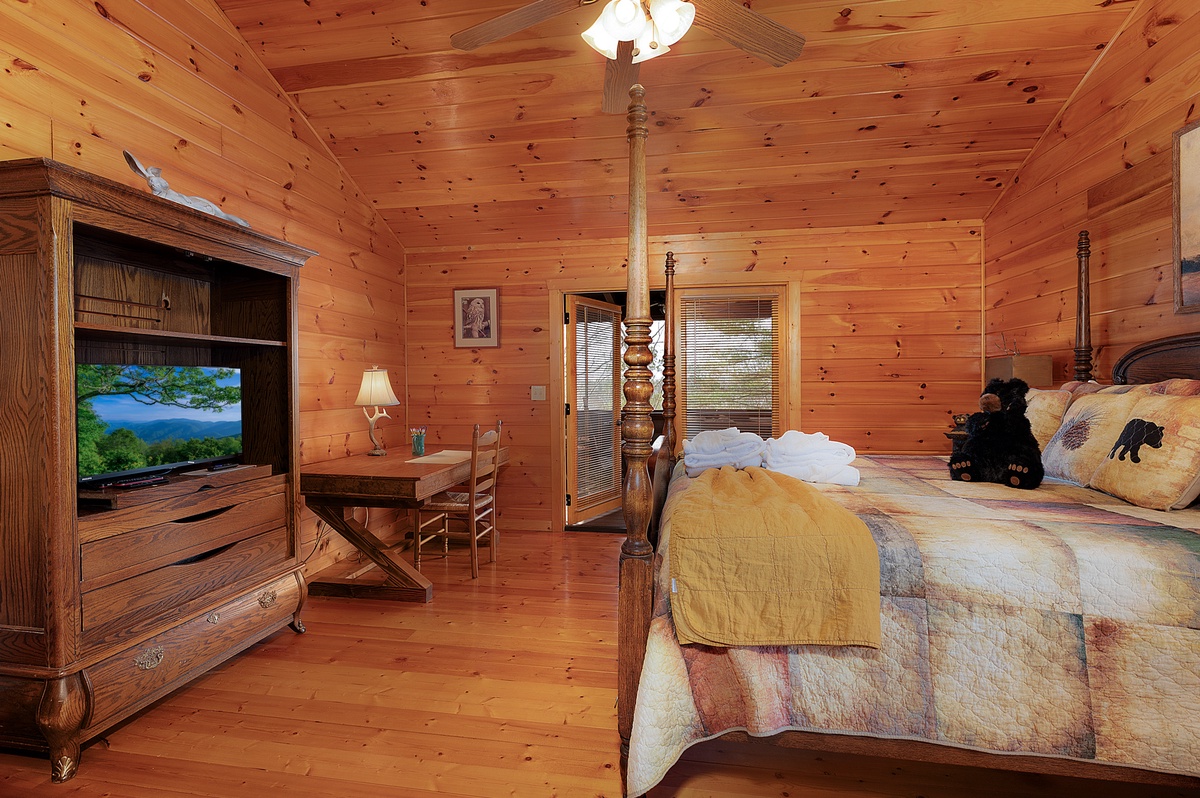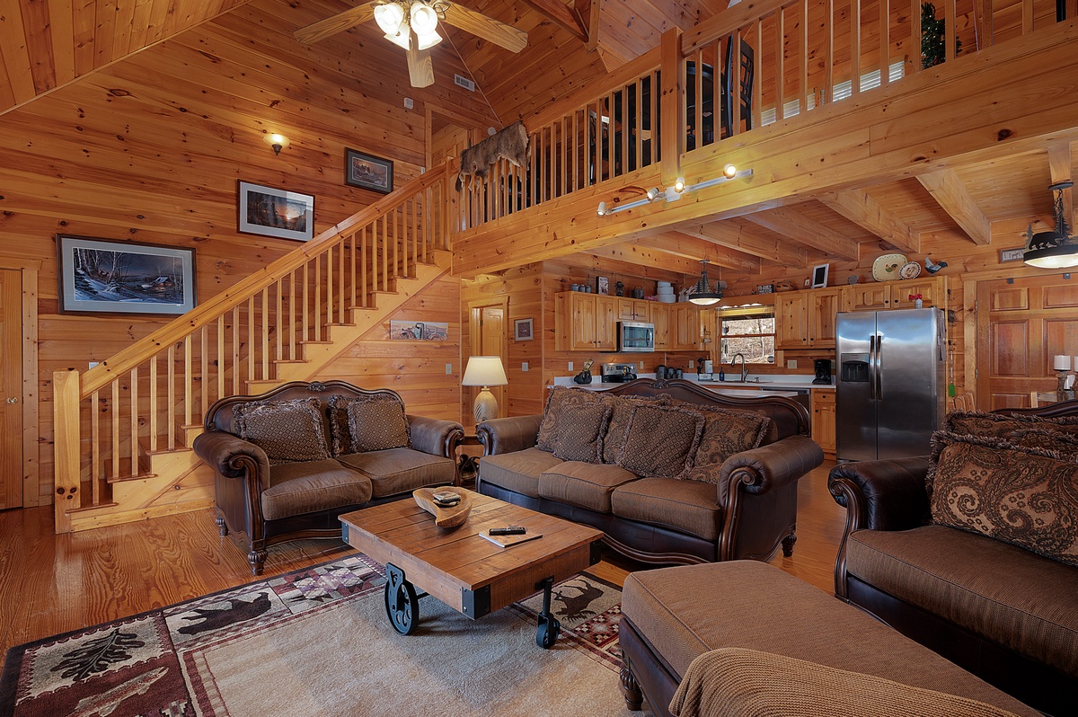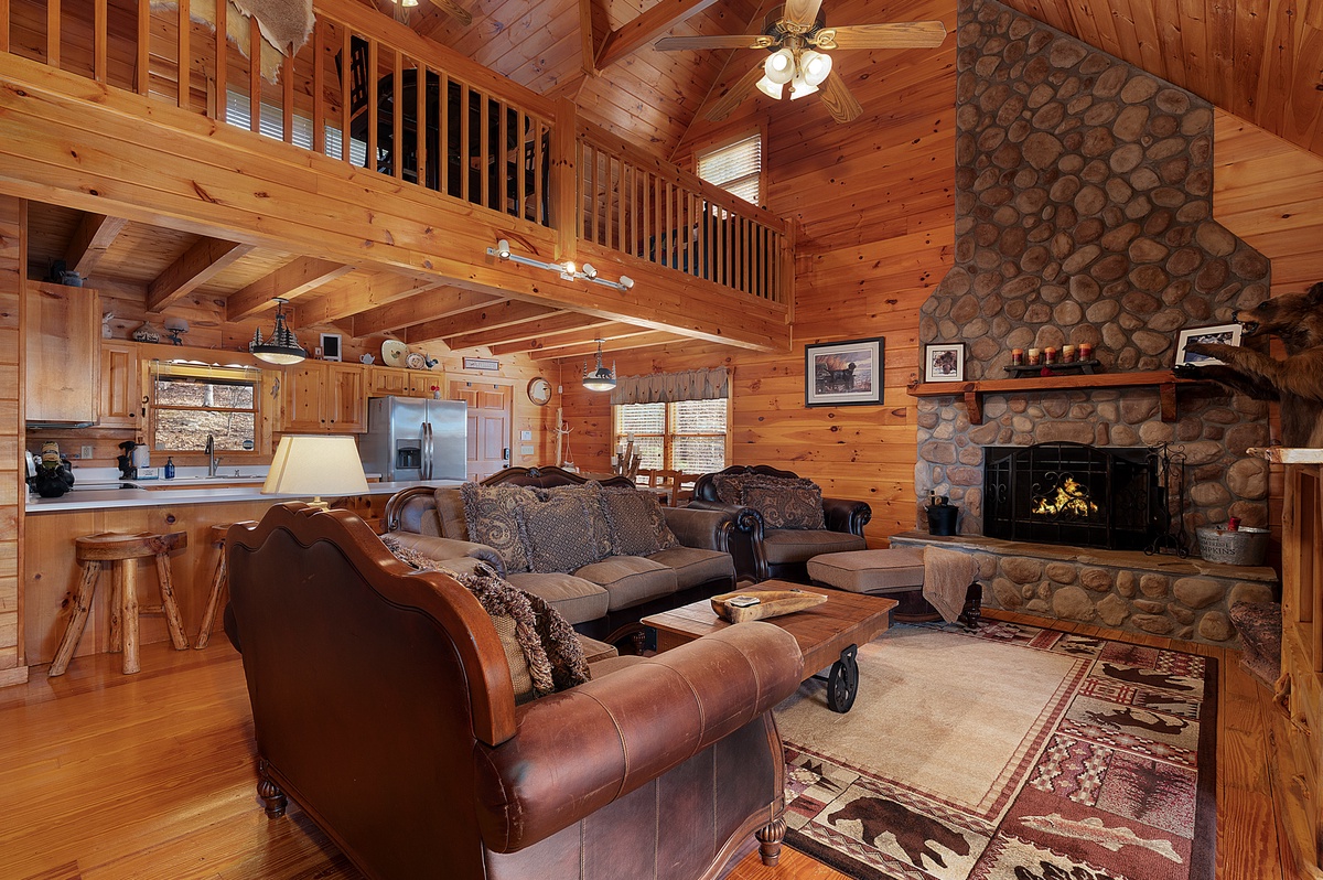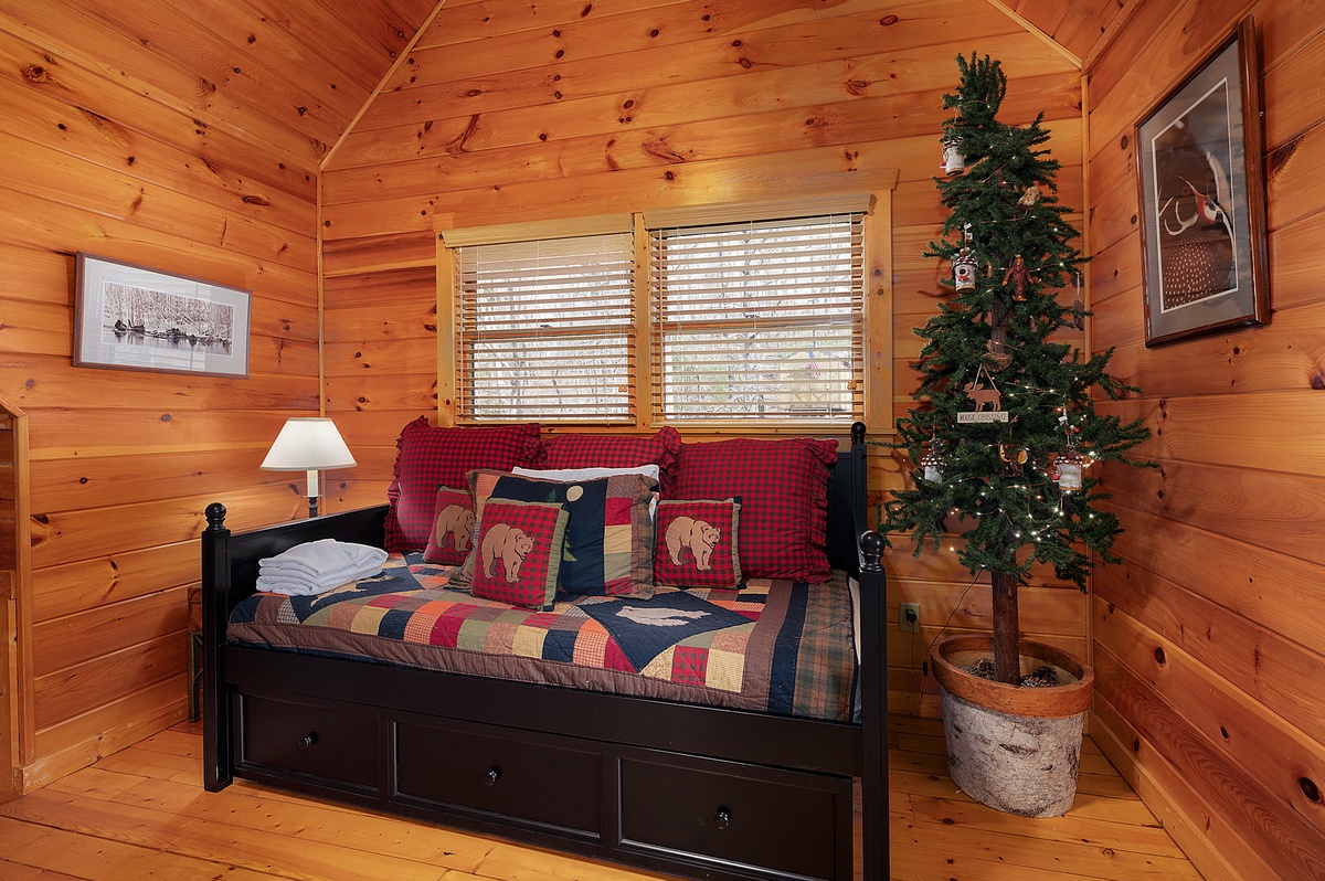 This property offers three levels providing plenty of space to relax and unwind in the company of friends and family or a moment of peace and quiet away from it all. The entry level provides two comfortable queen bedrooms, while the upper level boasts a luxurious king suite with a four poster bed, private balcony and workstation. Wander up to the loft for a cozy atmosphere perfect for reading your favorite book or playing a card game or two. The loft offers two daybeds, a card table, and a reading nook.