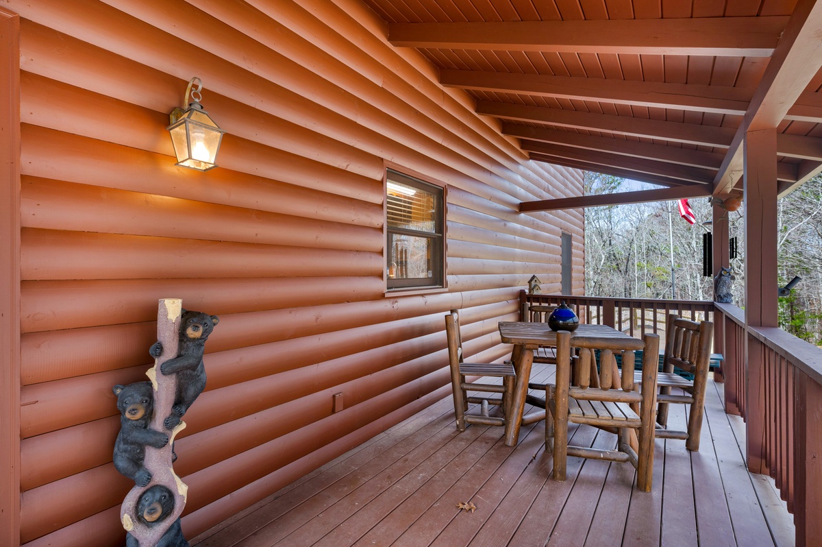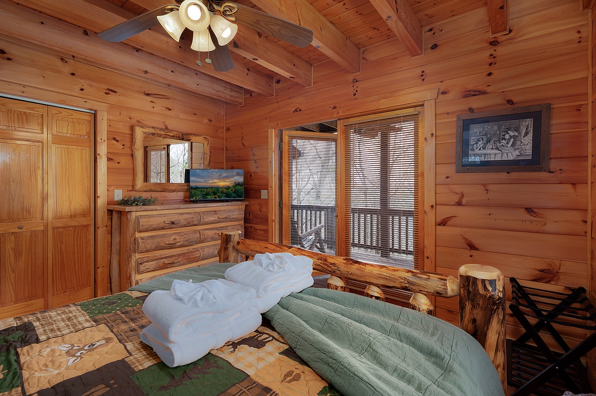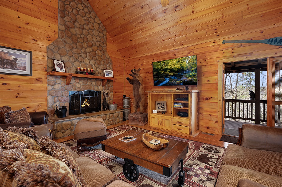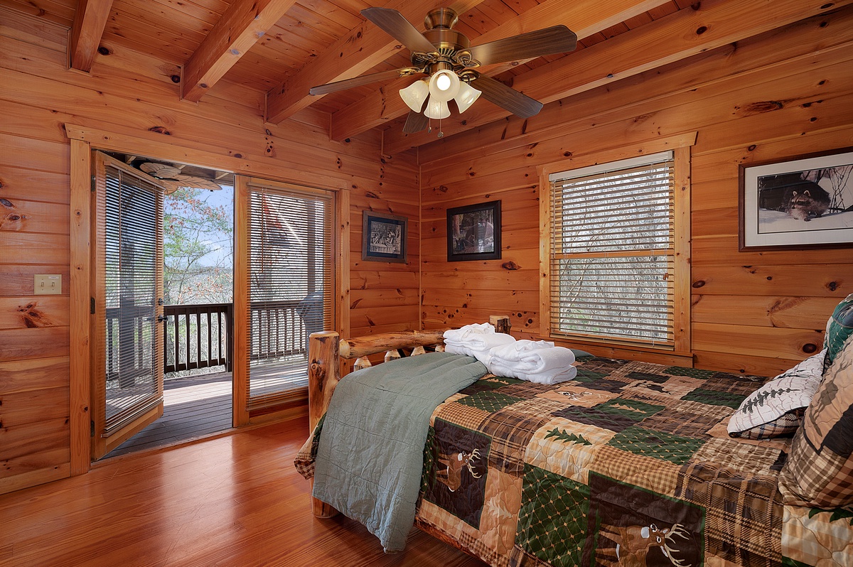 This property offers three levels providing plenty of space to relax and unwind in the company of friends and family or a moment of peace and quiet away from it all. The entry level provides two comfortable queen bedrooms, while the upper level boasts a luxurious king suite with a four poster bed, private balcony and workstation. Wander up to the loft for a cozy atmosphere perfect for reading your favorite book or playing a card game or two. The loft offers two daybeds, a card table, and a reading nook.
