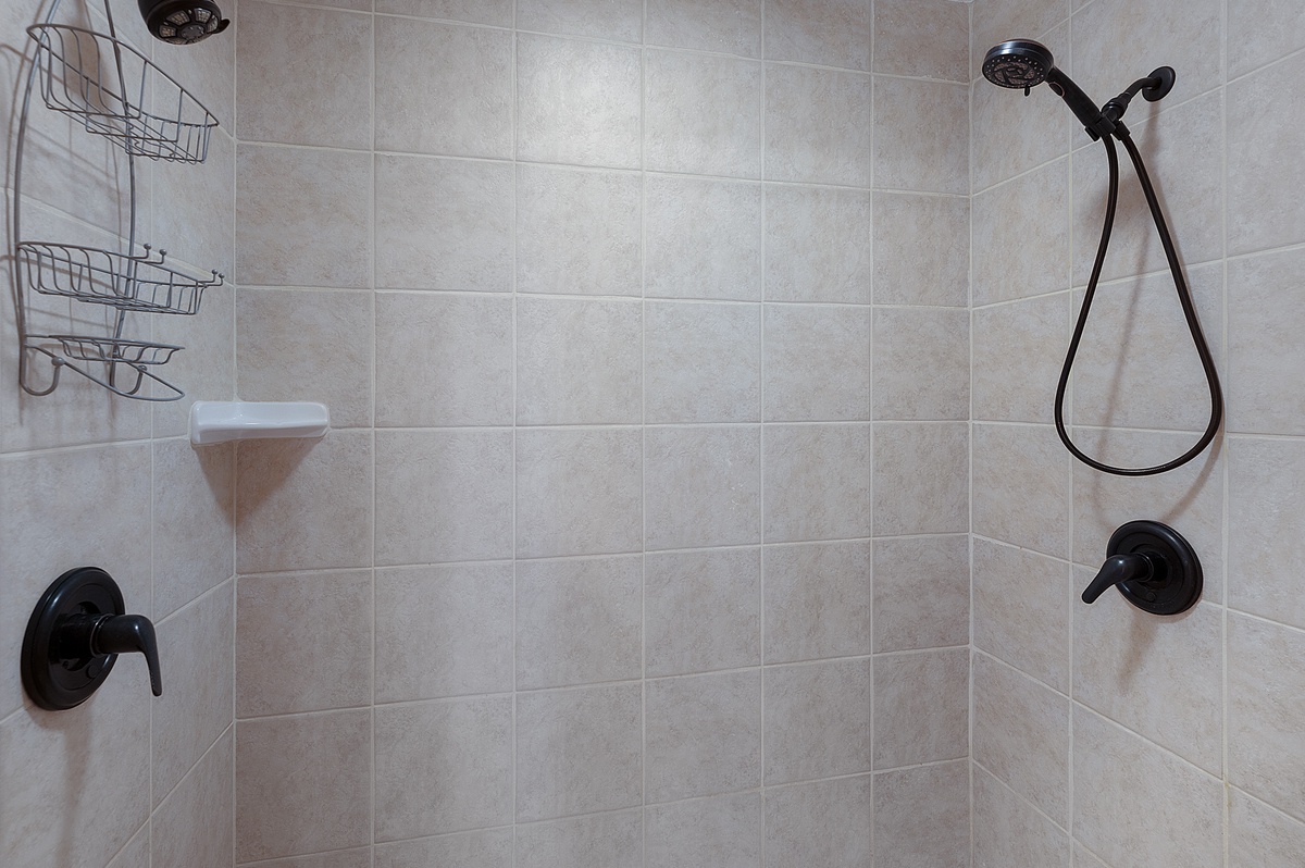 - Double Vanity and Tile Shower with Dual Heads