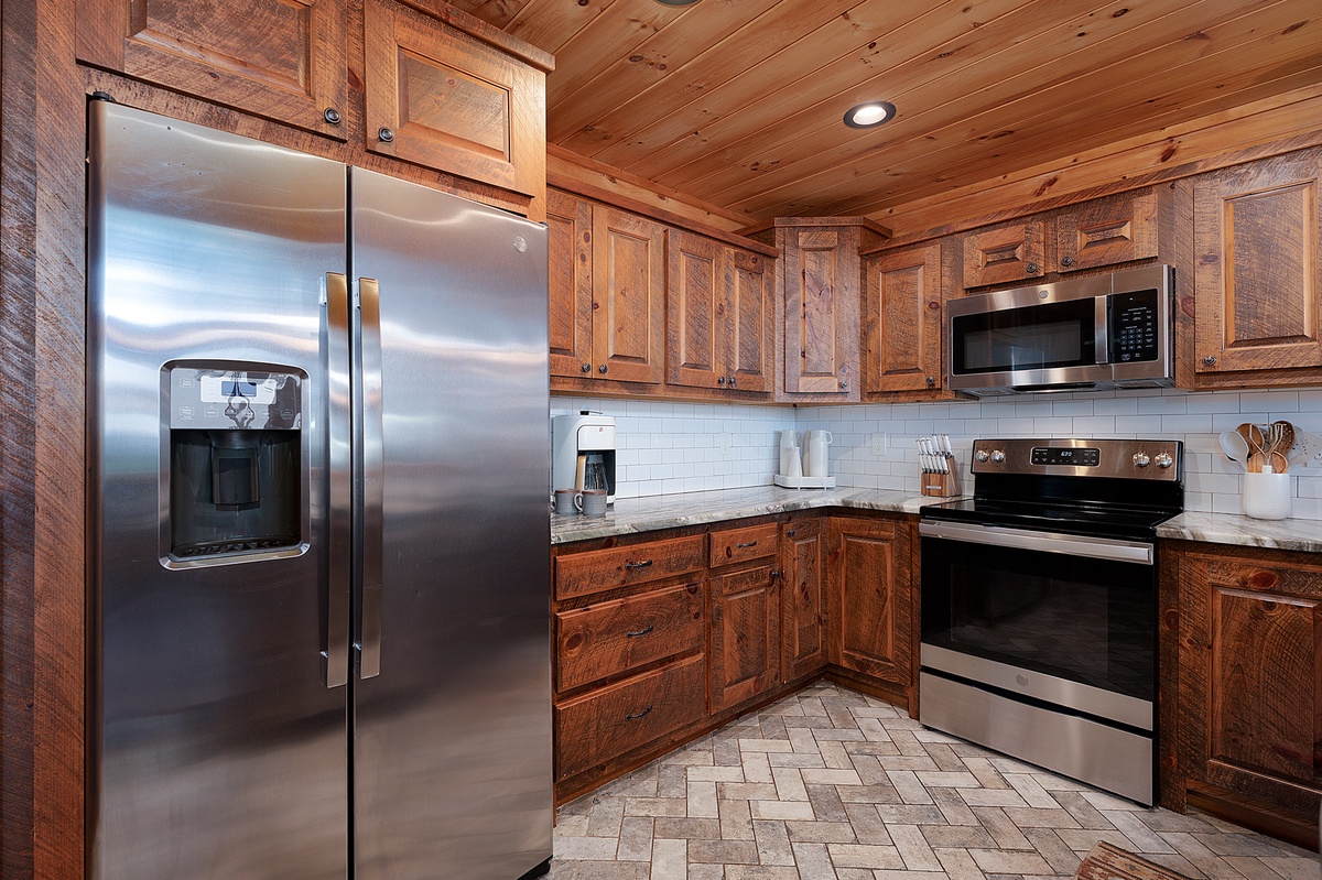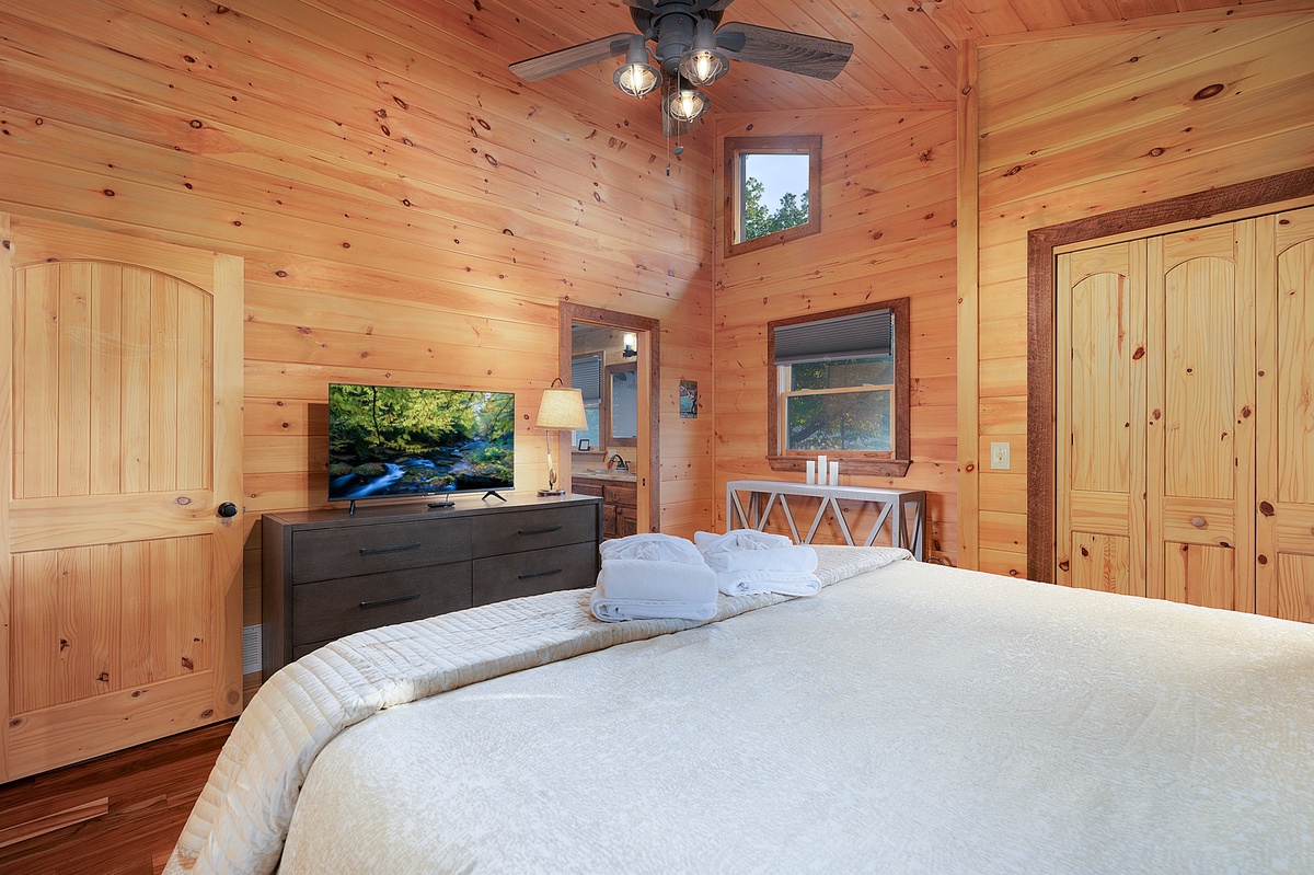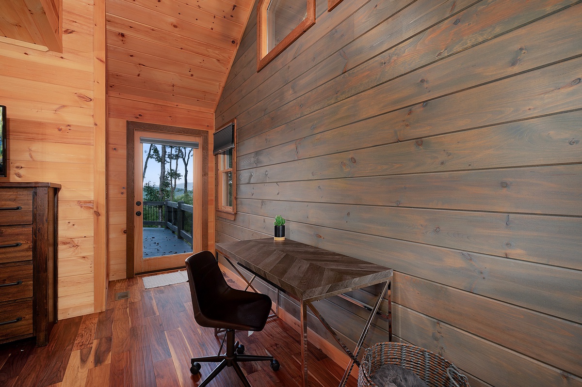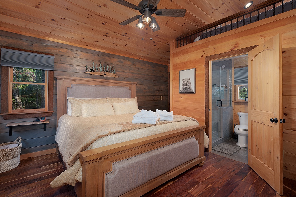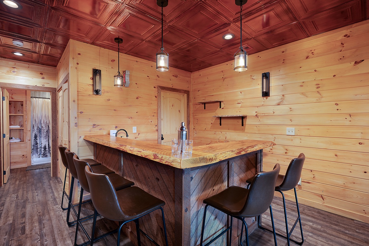 Retreat to the primary king suite on the entry level, where deck access, a soaking tub, and a walk-in shower create your own spa-like sanctuary. Upstairs, two additional king suites shares a Jack-and-Jill bath, offer cozy retreats, while the loft adds an extra workspace for those who need it. Downstairs, the fun begins in the game room, outfitted with a pool table, arcade game, poker table, and a wet bar for evenings that stretch into the night. The twin bunkroom, complete with custom built-ins and trundles, is a kids’ dream hideout.