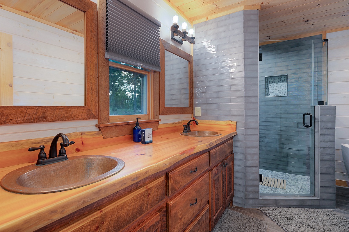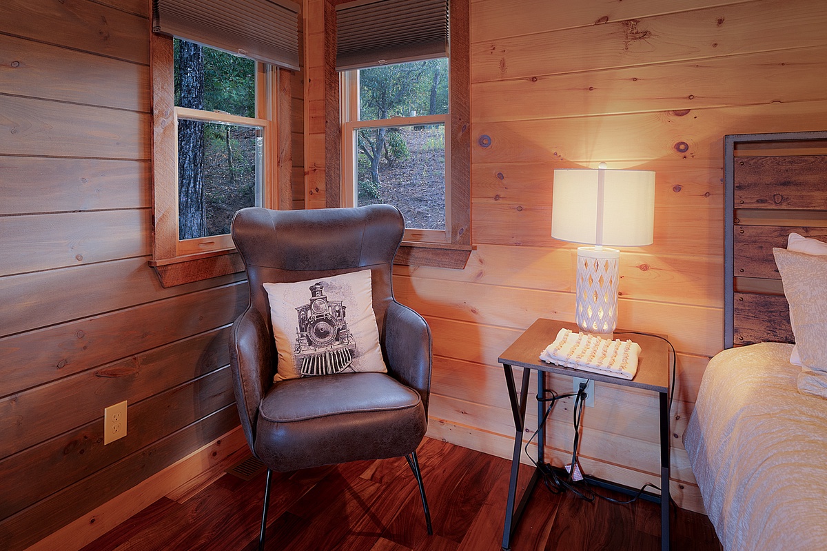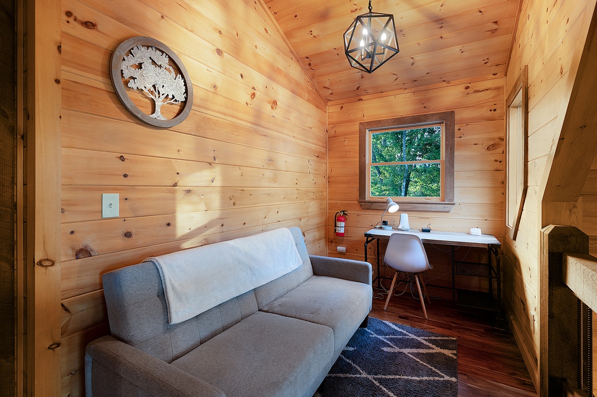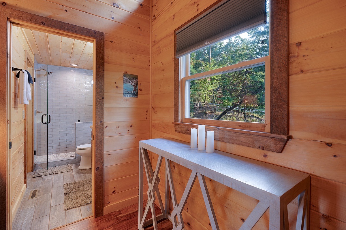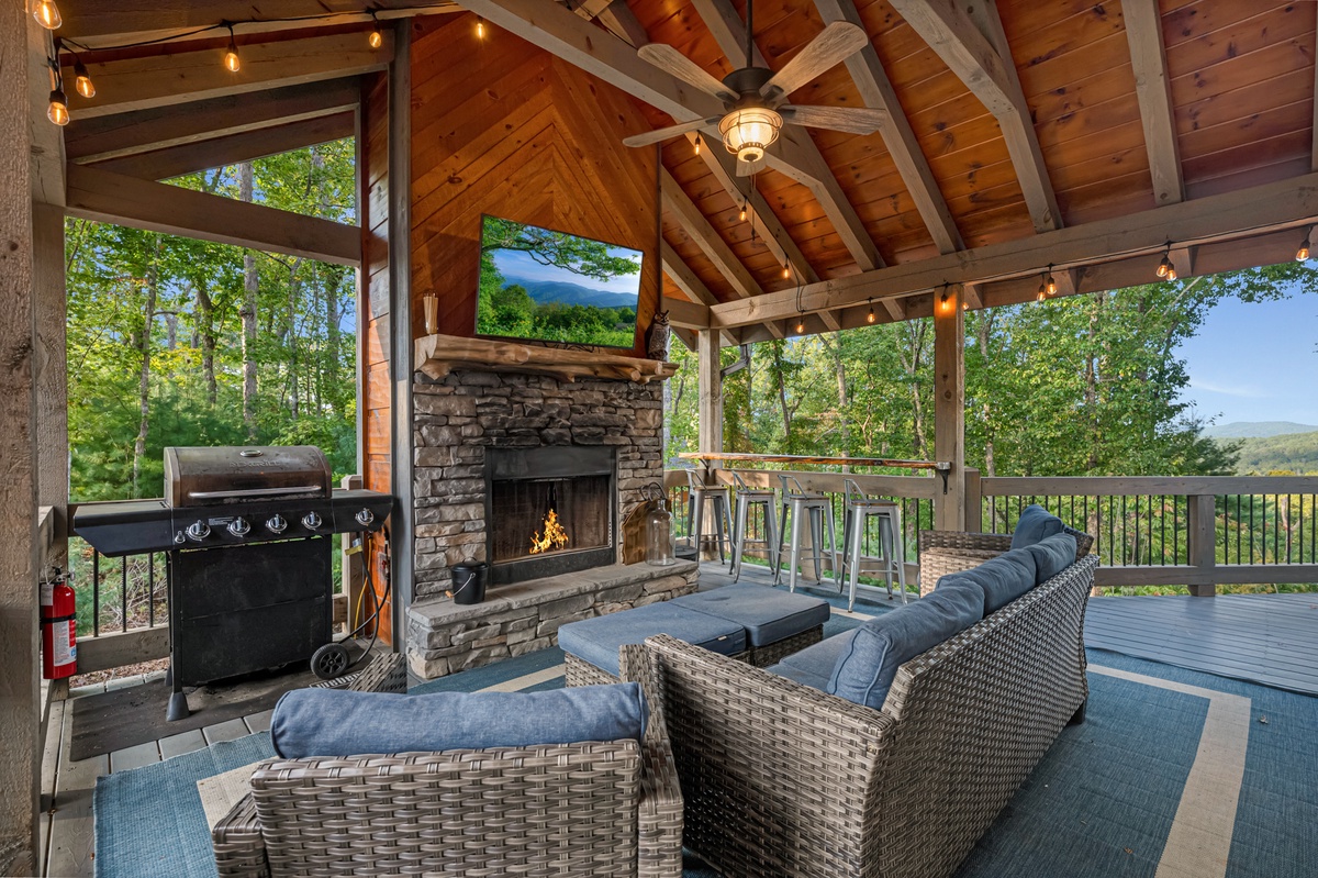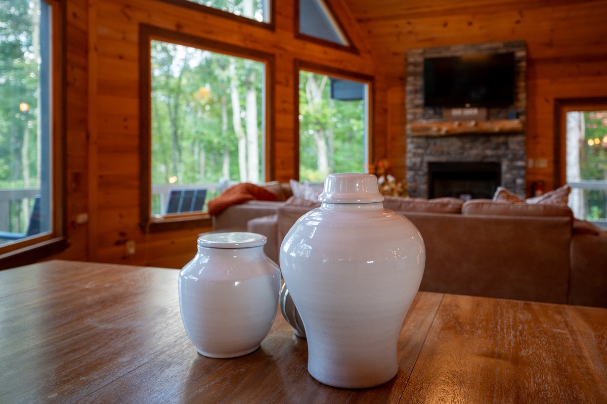 Morning Glory shines outdoors with spaces designed to soak in the scenery. Sip coffee by the outdoor fireplace on the covered deck, unwind in the hot tub with a view, or swing lazily in a hammock. Evenings are best spent gathered around the firepit under the stars, sharing stories and s’mores.