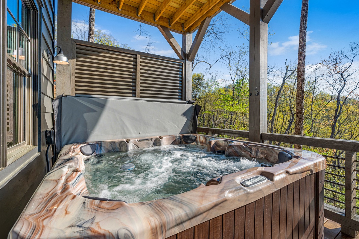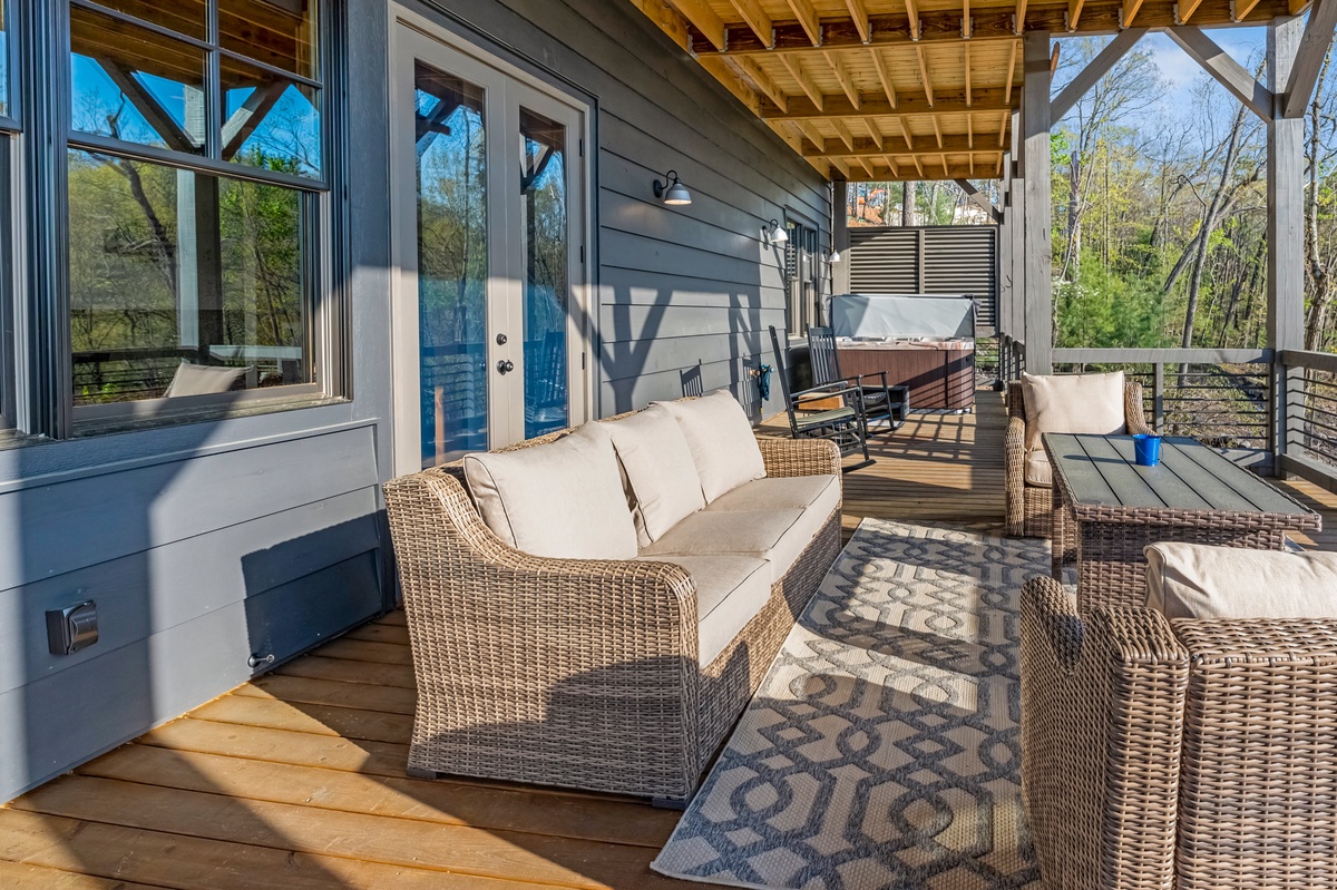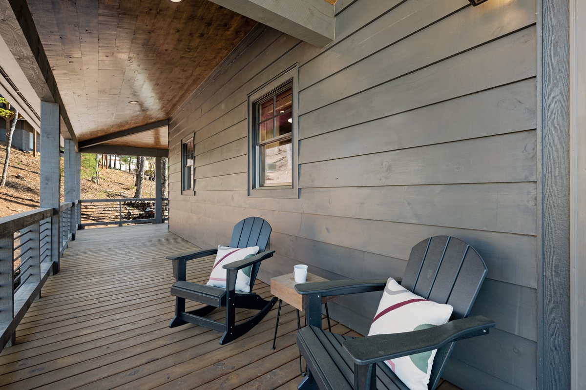 The entry level deck with its wood burning fireplace, comfortable seating and dining table for 6-8 is perfect for outdoor hosting and relaxing. The lower-level deck with hot tub and additional seating is just icing on the cake after a long day of sight-seeing and adventure.