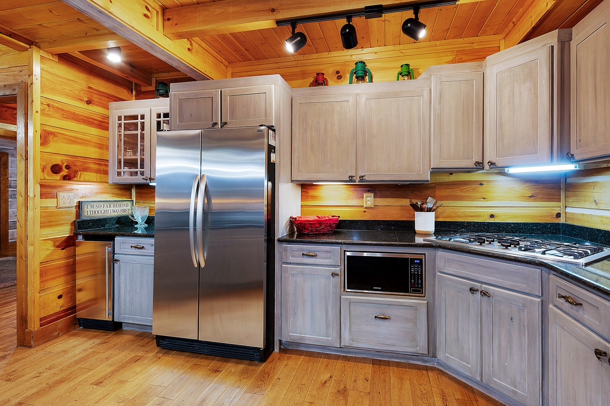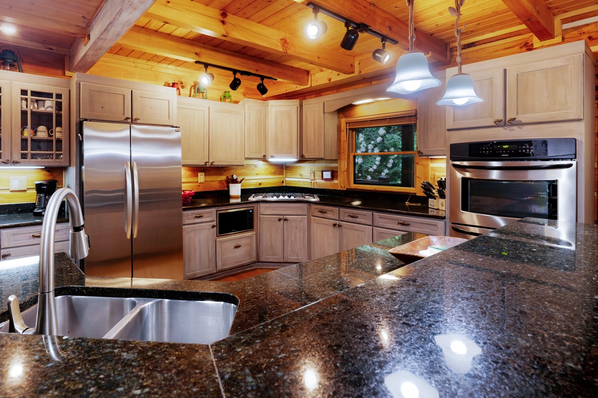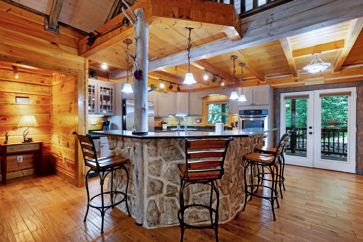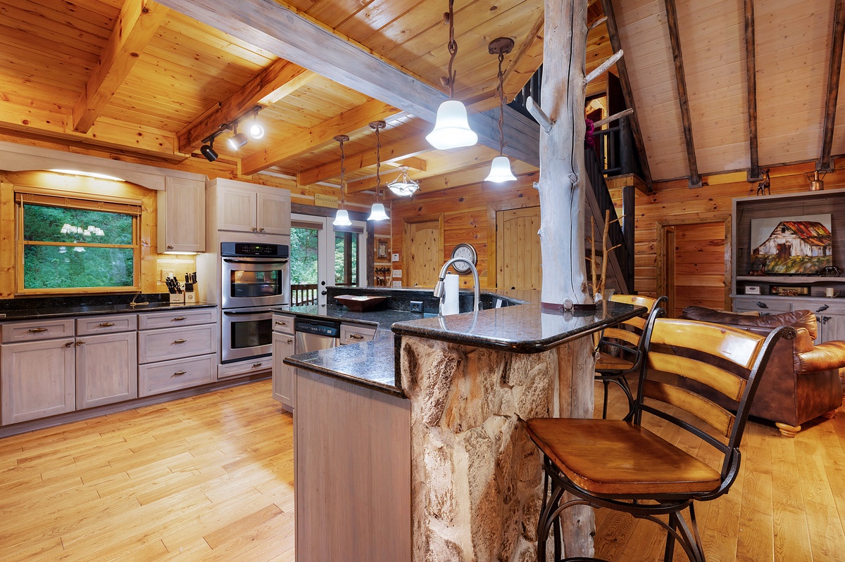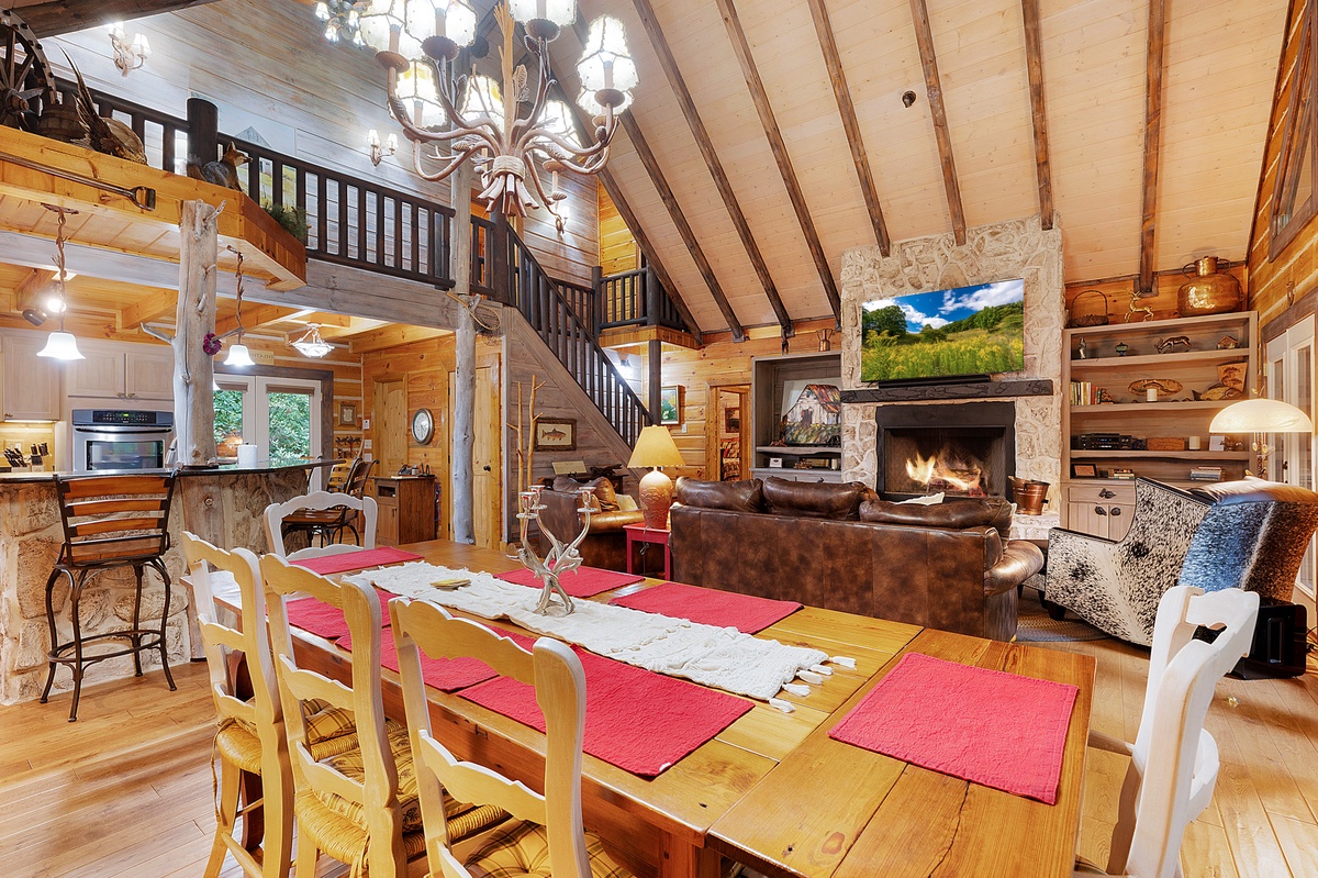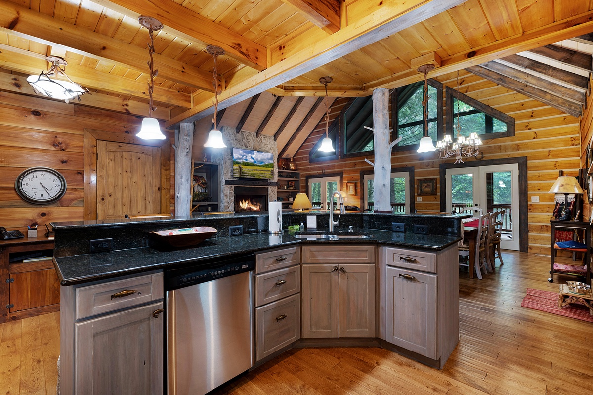 Welcome to your dreamy getaway, a haven where cherished memories come to life and relaxation finds its truest meaning. Mountaintown Creek Lodge offers more than just a place to stay; it's a canvas for crafting unforgettable moments. Step into a world of deep satisfaction, where the worries of everyday life melt away. Upon entering, you'll be greeted by an open floor plan that invites you to unwind and connect. The heart of the home, a kitchen adorned with a charming island, stands ready with all the amenities needed to conjure up those tantalizing mountain meals that warm the soul.