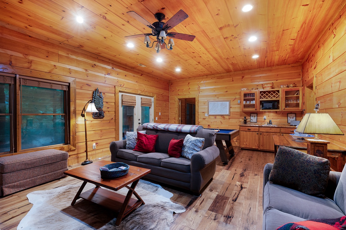 Dog-Friendly Cabin:  This cabin welcomes your furry family members with open arms! Up to 2 dogs can enjoy the vacation alongside you, making for unforgettable memories. Our pet fee helps us maintain the comfort and cleanliness of our cabins for everyone to enjoy, and we are excited to welcome!