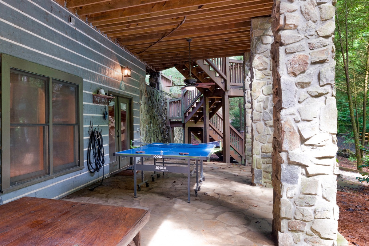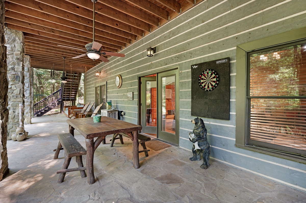 The patio, with its scenic views, invites you to bask in the beauty of the surroundings. With generous seating and yet another inviting picnic table, it's the perfect place to immerse yourself in the sights and sounds of the creek, a gentle reminder that nature's rhythm is always in harmony.