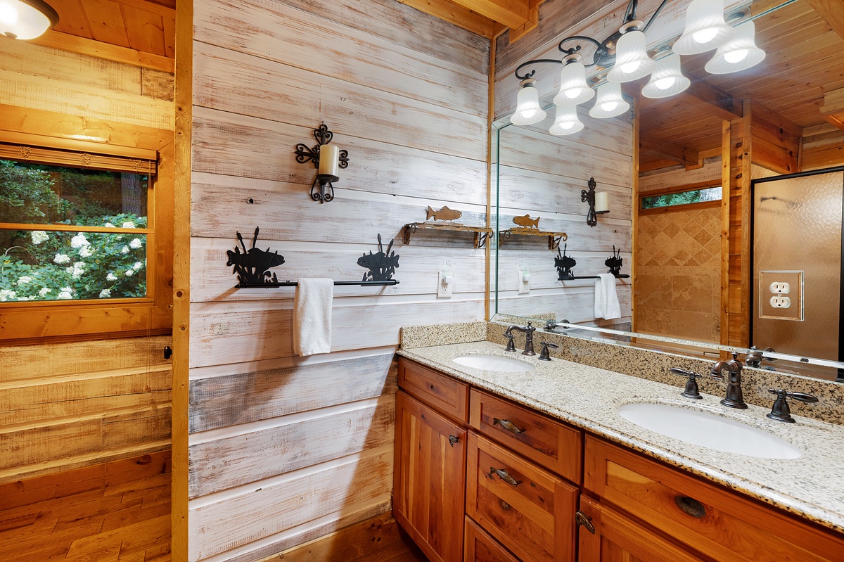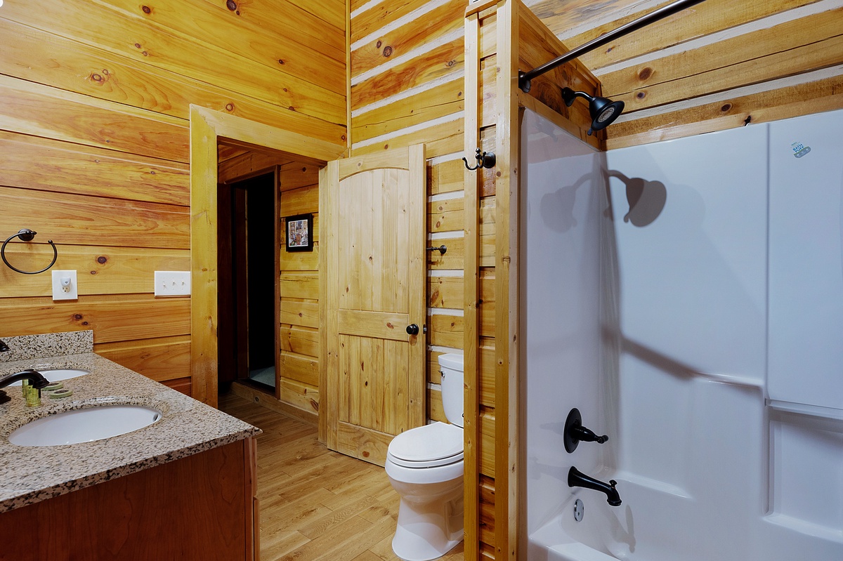 - Double vanity, shower and tub combo