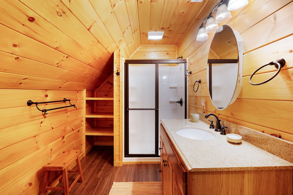 - Single vanity and shower