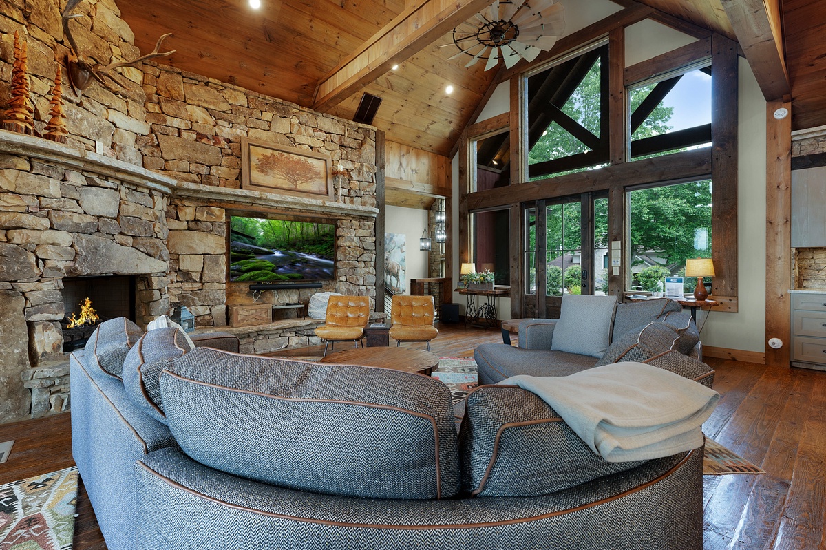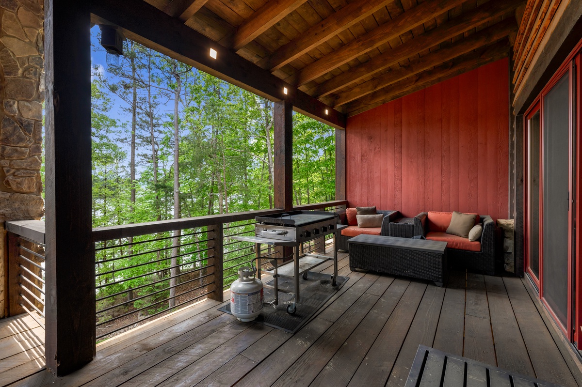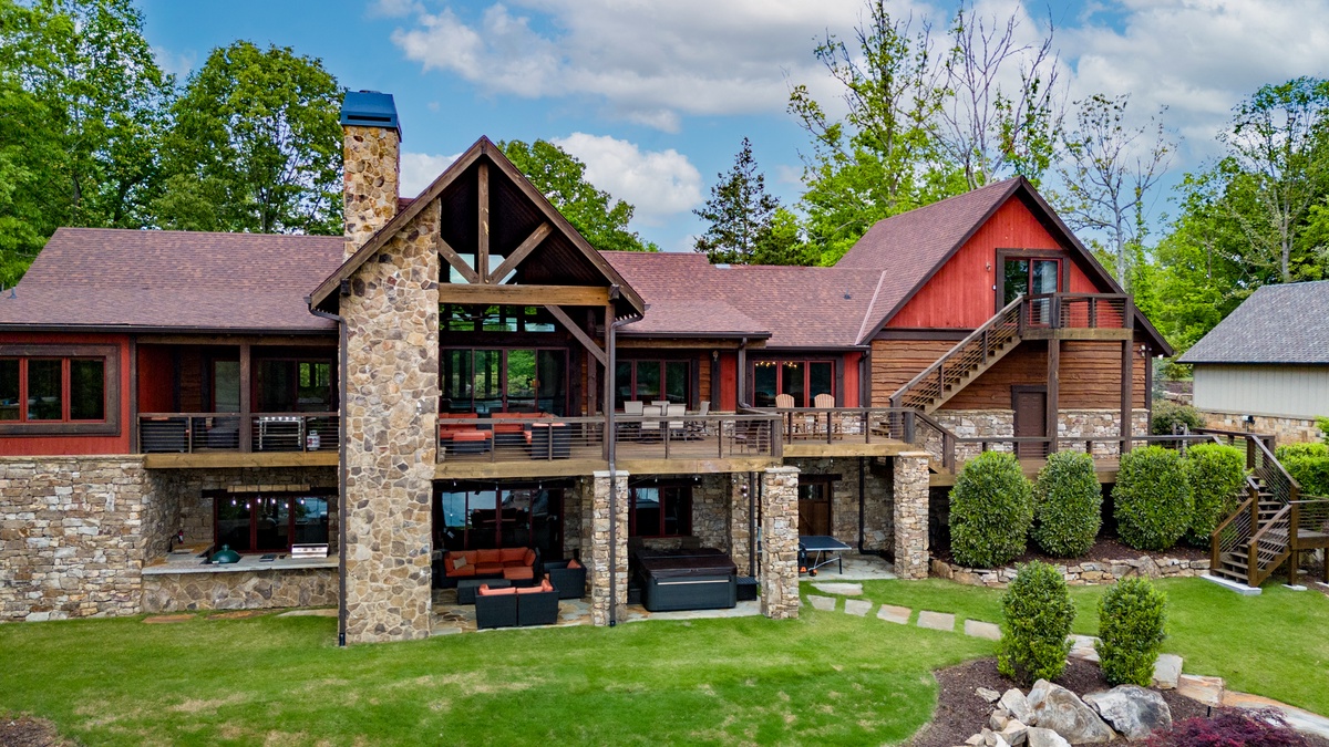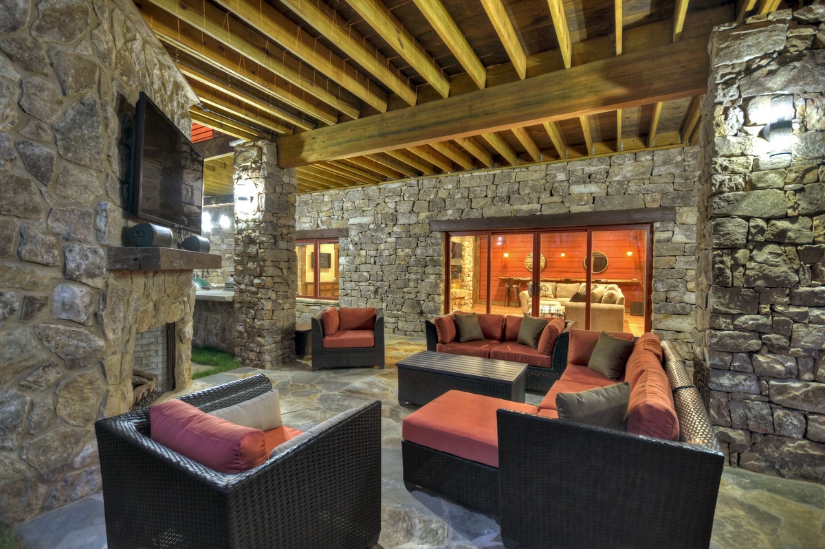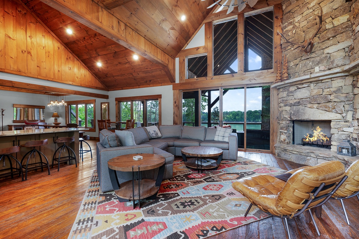 - Entry Level Deck with Large Seating Area, Panoramic View of Lake Nottely, Wood Burning Fireplace, Cast Iron Grill and 70” Flat Panel TV