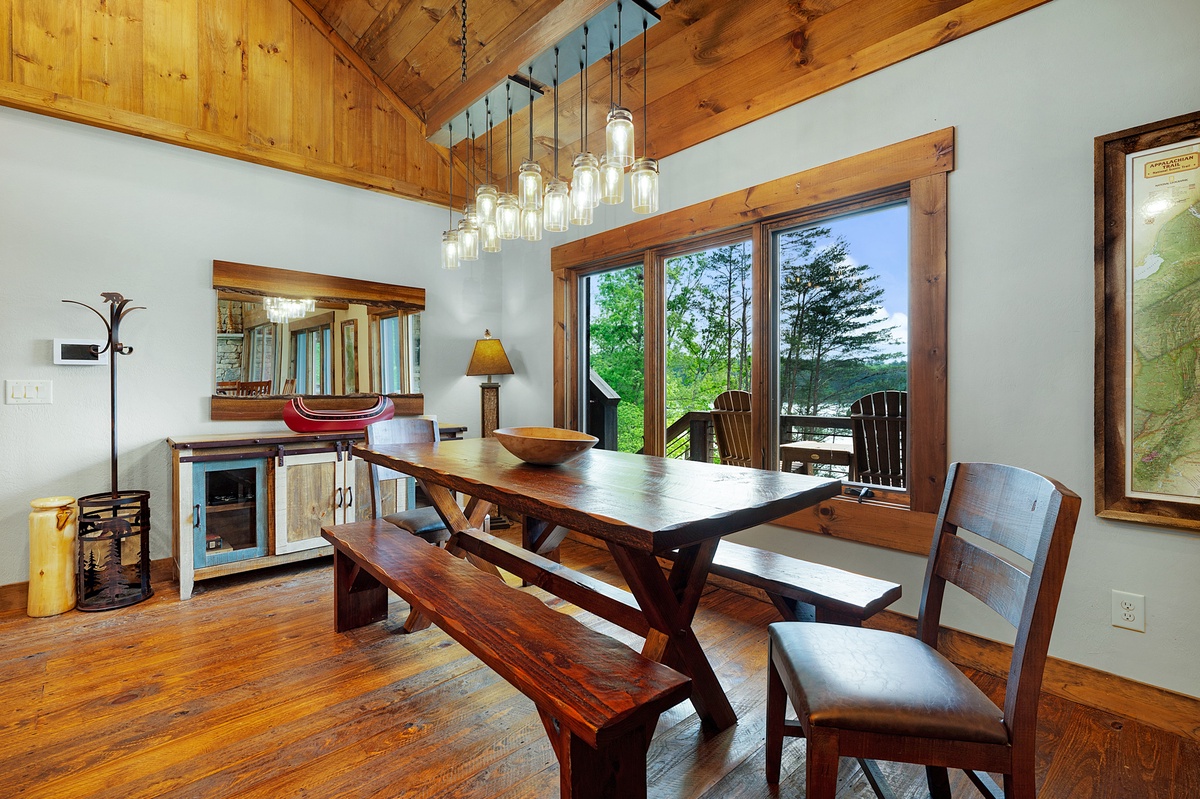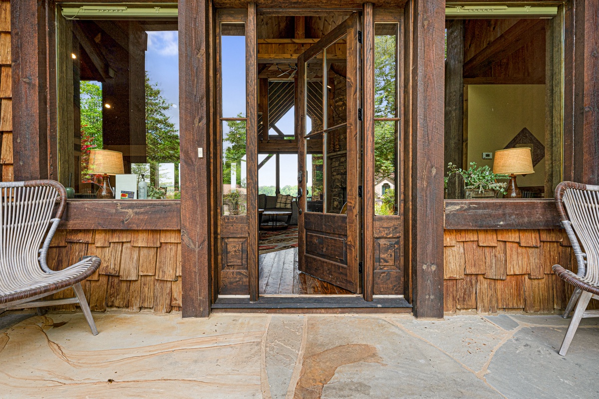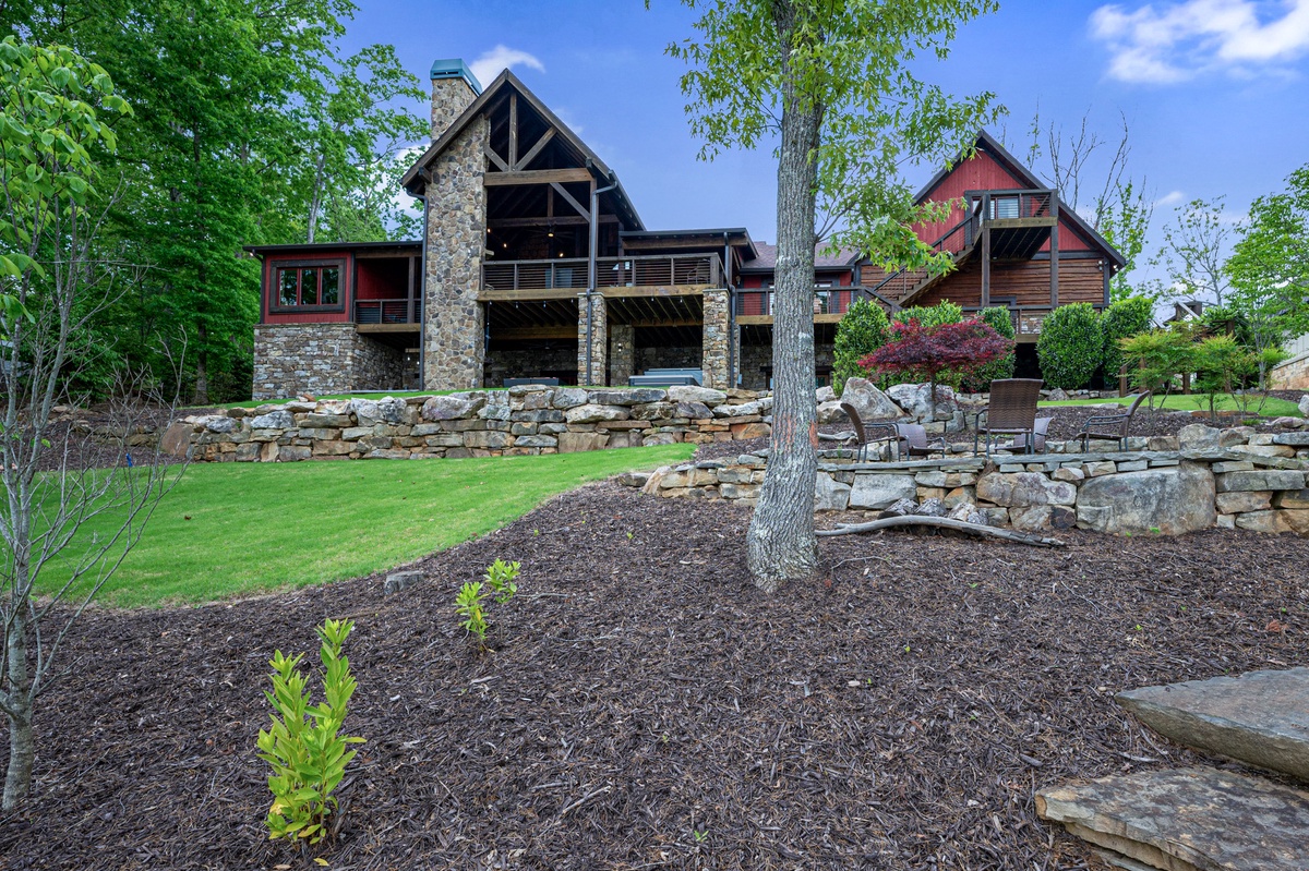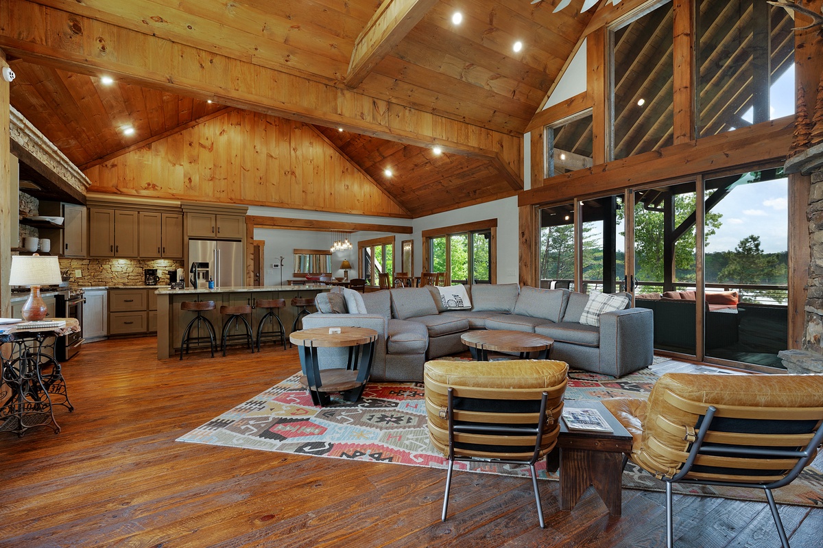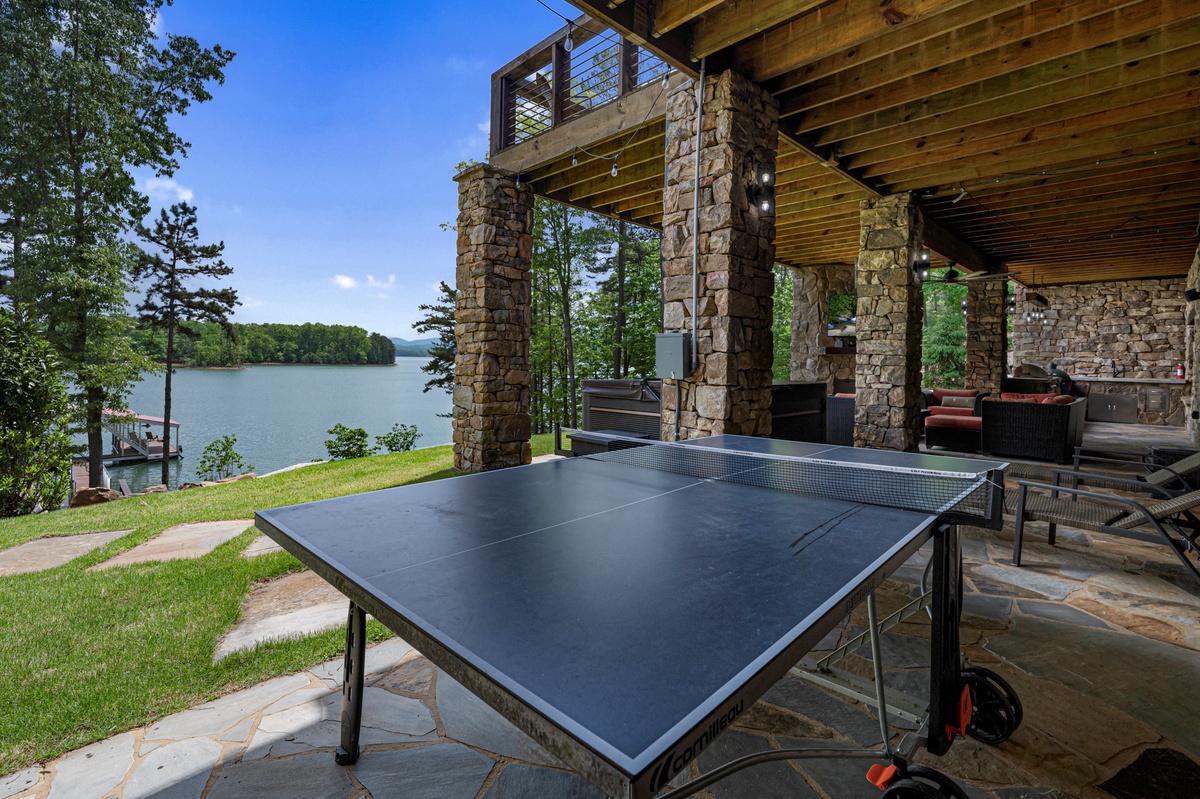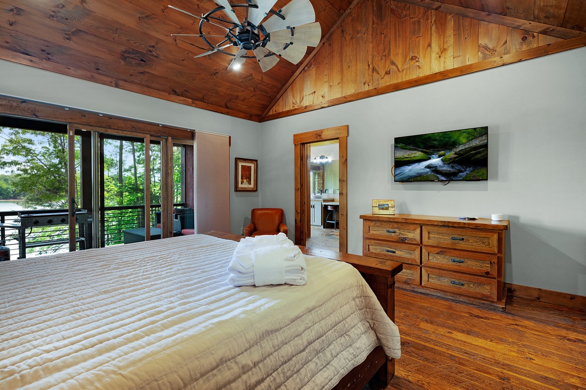 - Entry Level Deck with Large Seating Area, Panoramic View of Lake Nottely, Wood Burning Fireplace, Cast Iron Grill and 70” Flat Panel TV